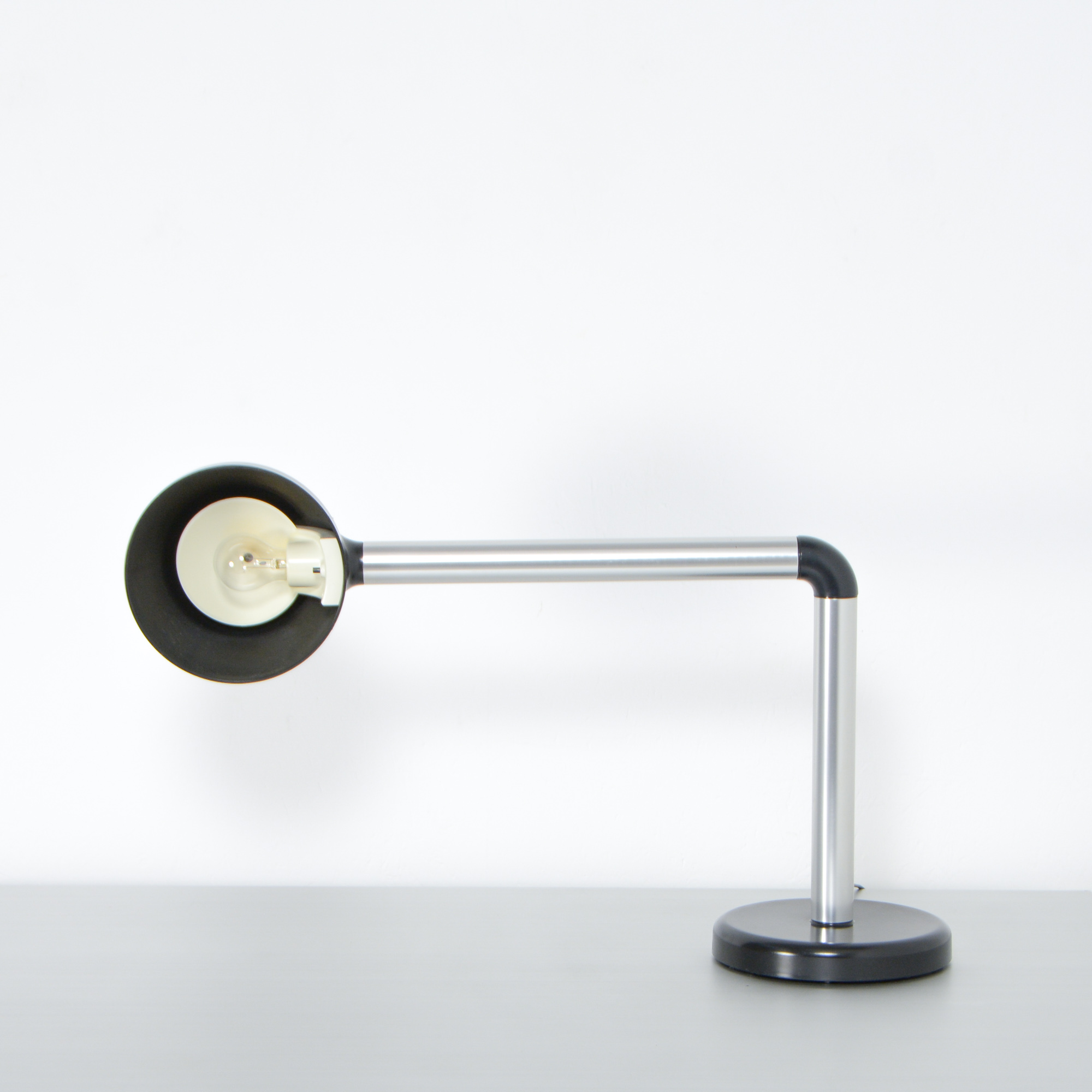 This desk lamp was designed by Robert Haussmann for Swiss Lamps International in 1965.
