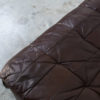 It is a very comfortable sofa. The soft leather patchwork cushions are filled with down.