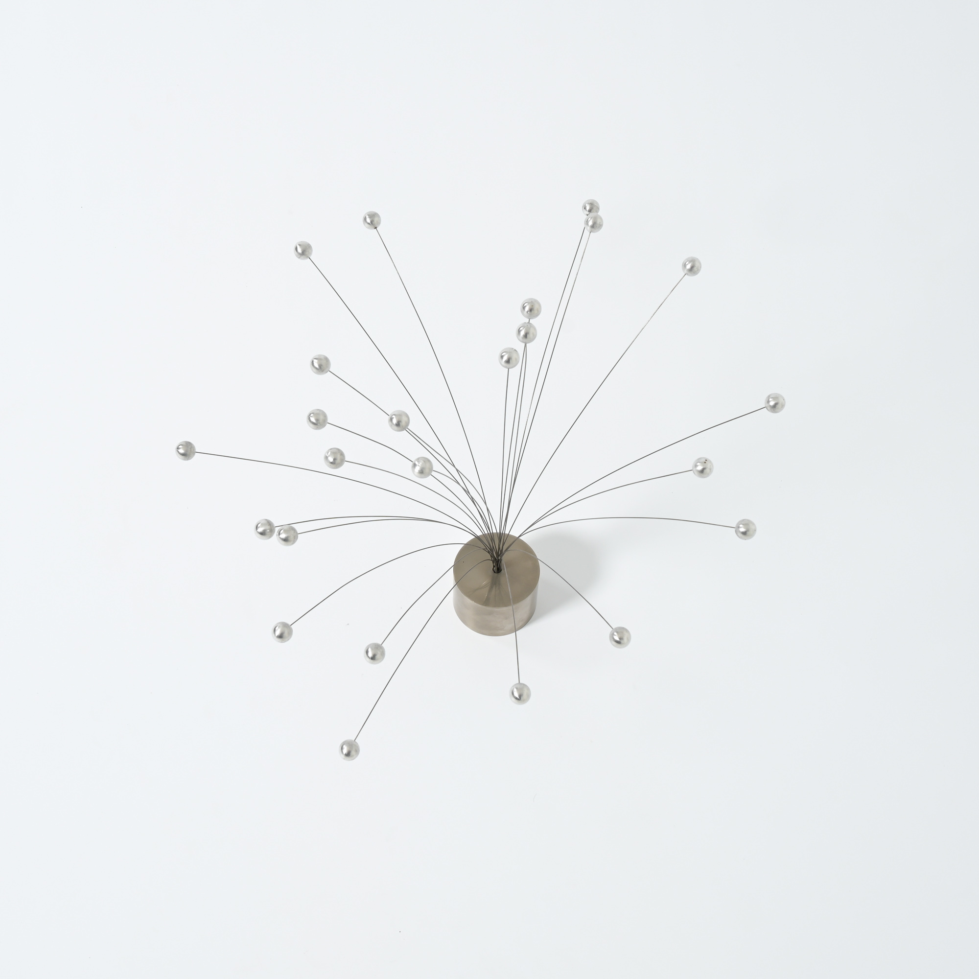 This dynamic mobile sculpture can be dated to the 1960s. It was inspired by the sculptures of Harry Bertoia.