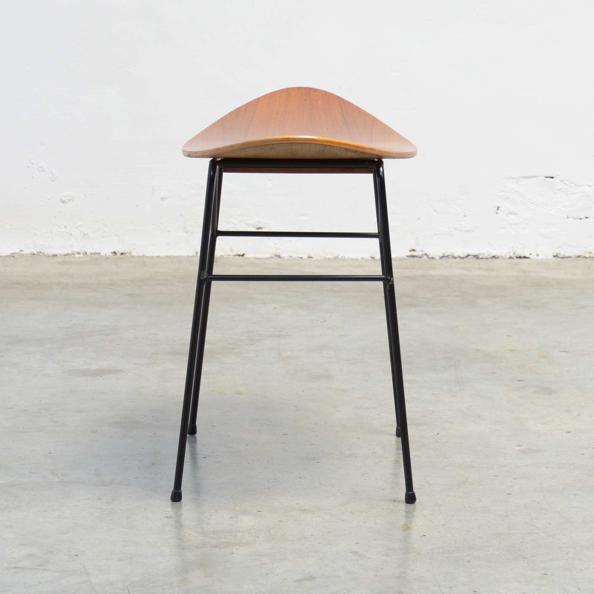 The black lacquered iron base holds the molded teak plywood seat.