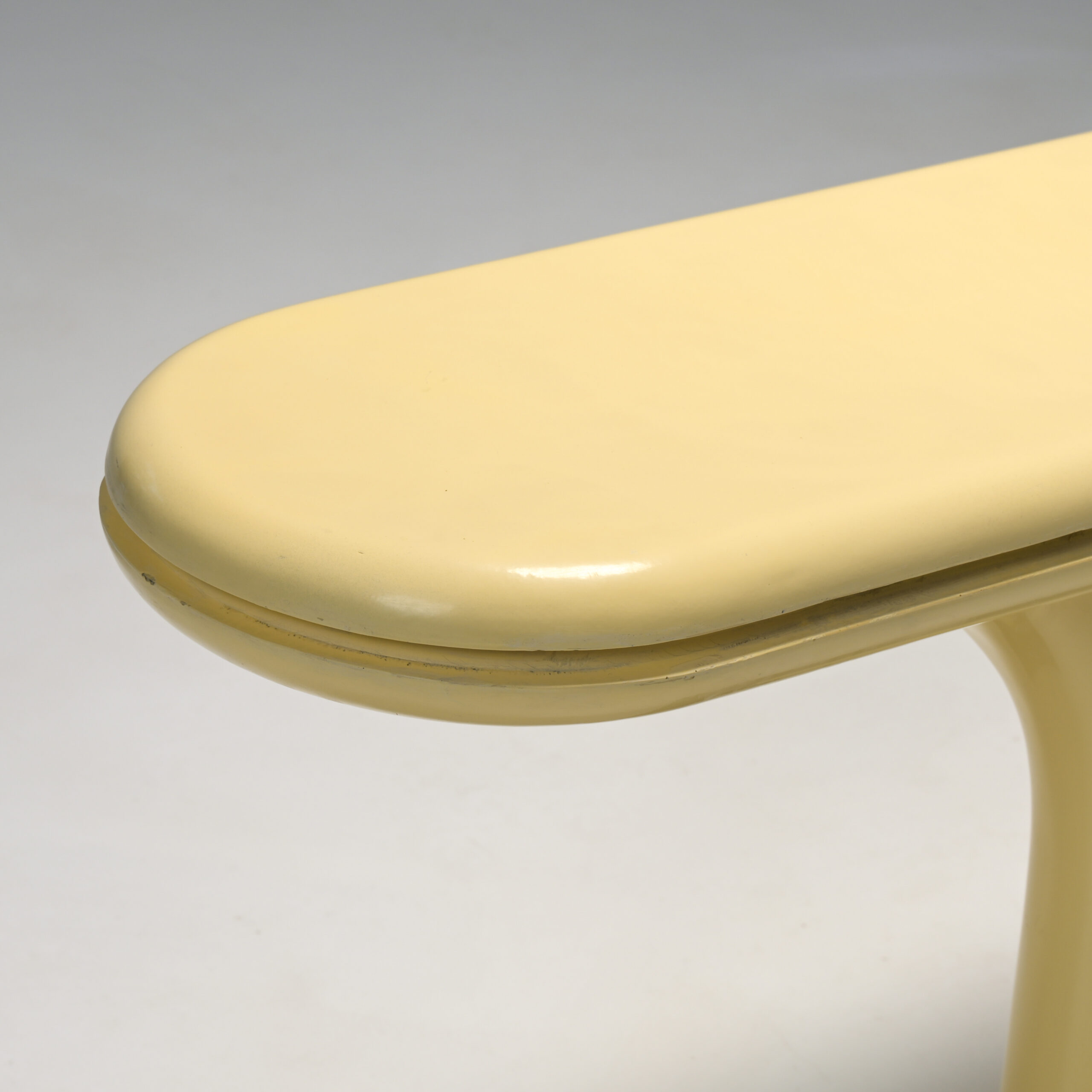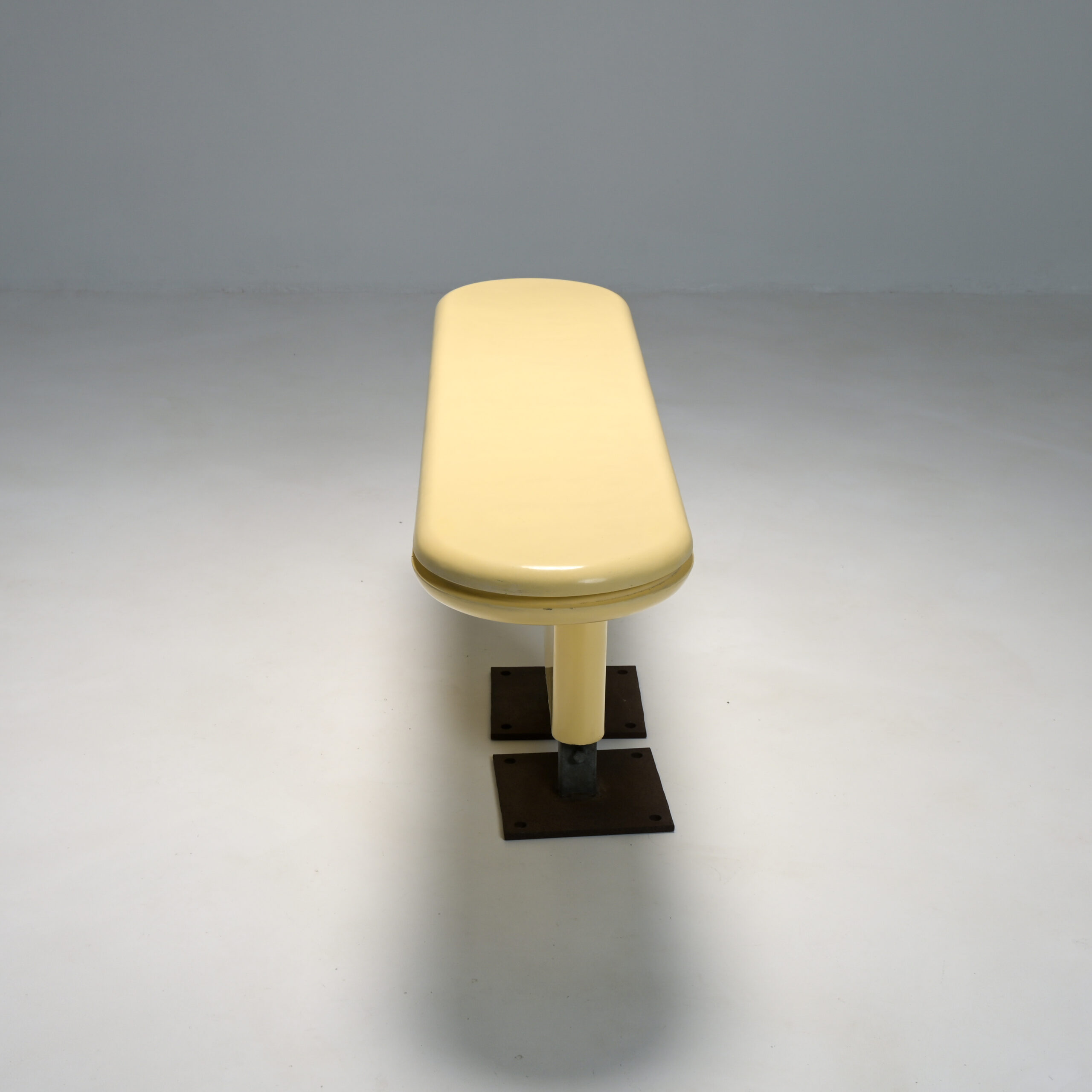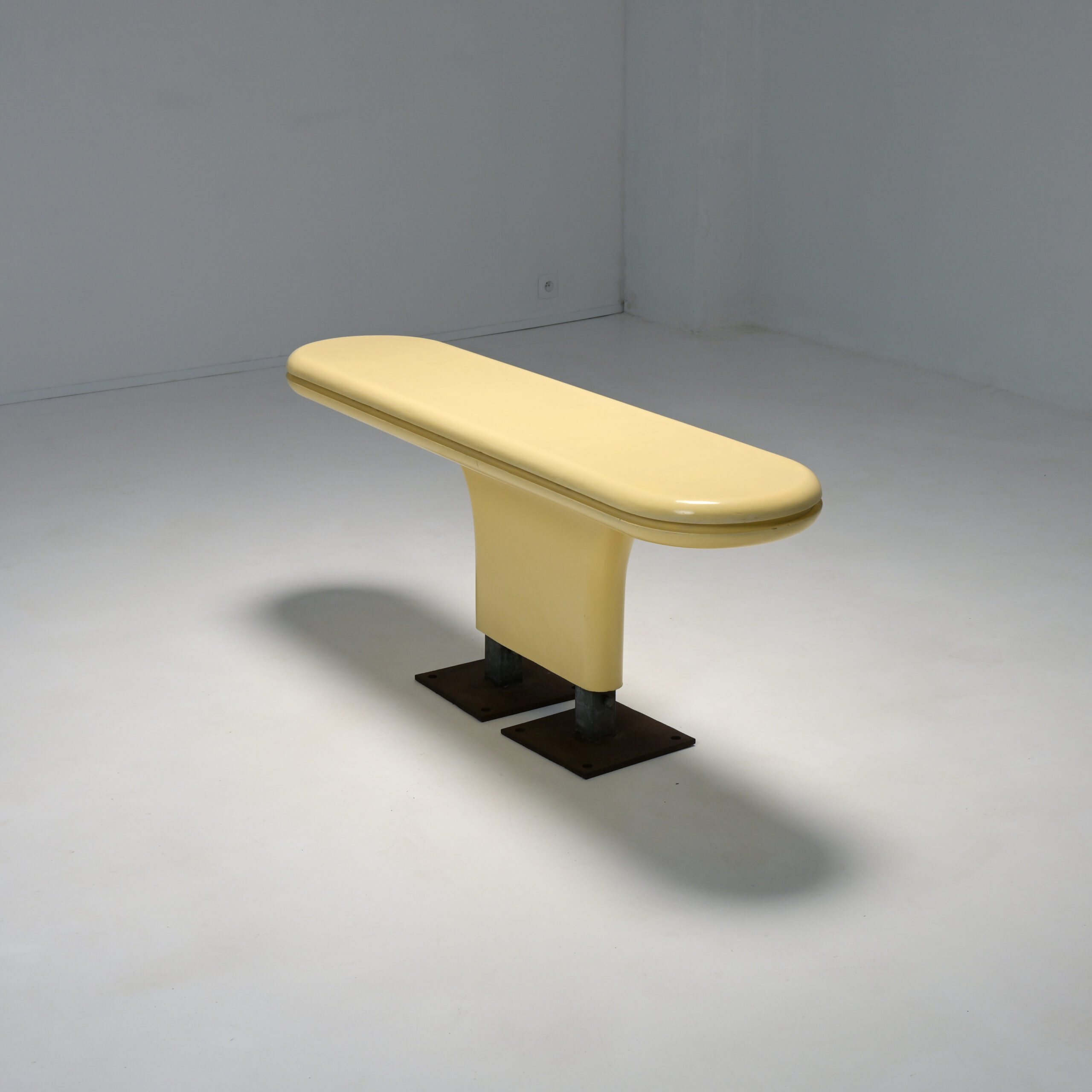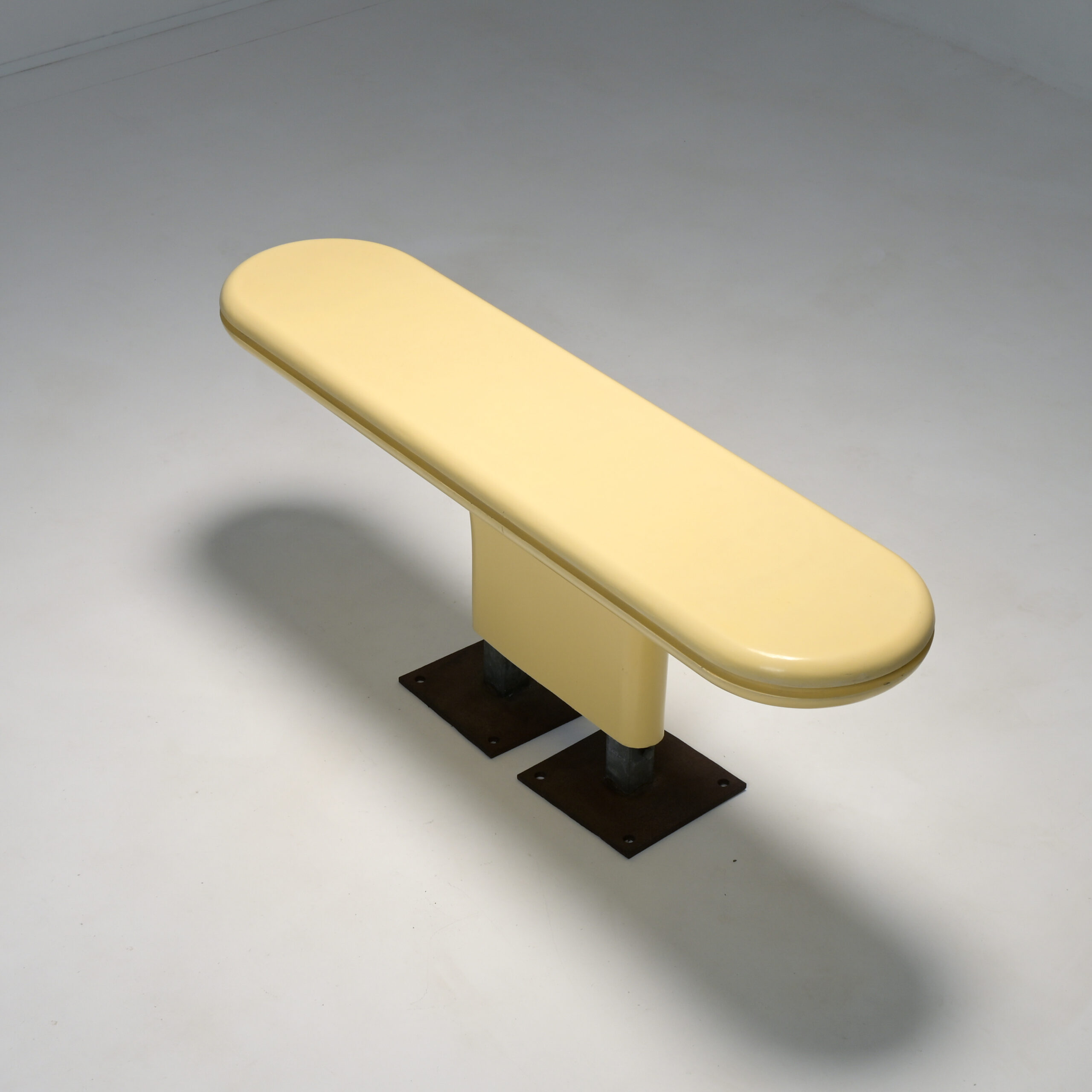 The seating area consists of a rounded oval shape made of fiberglass, this shape flows beautifully to the more solid base made of metal.
