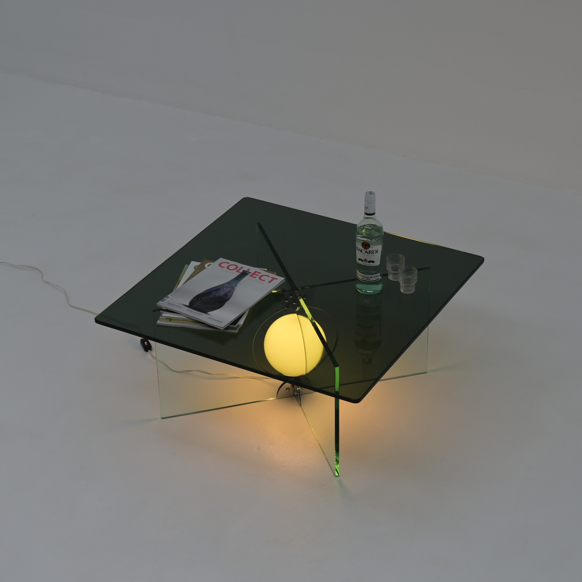 The inside of the cross-shaped table structure was a lamp fitted, with a very refined detailing in connection.