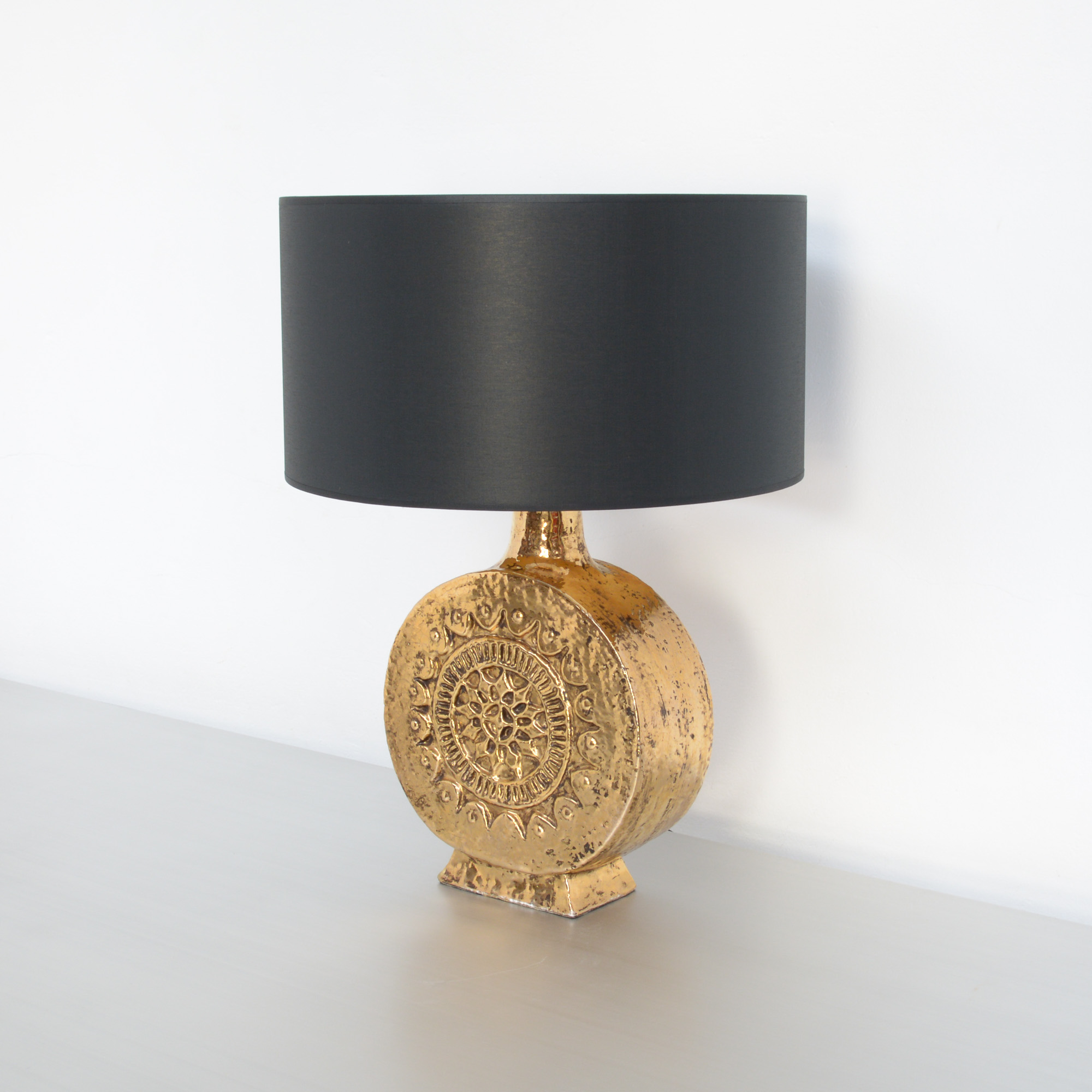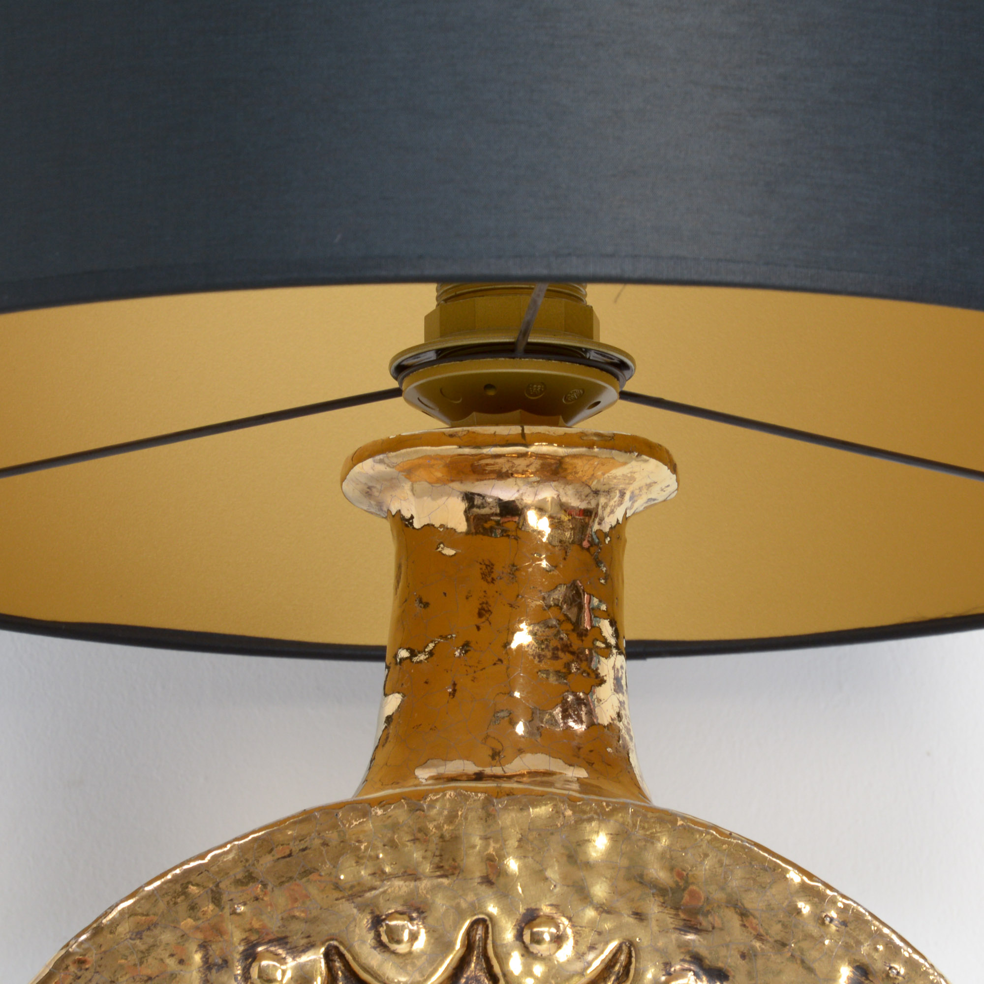 This gold glazed ceramic table lamp may have been designed by Aldo Londi for Bitossi. It can be dated in the 1960s.