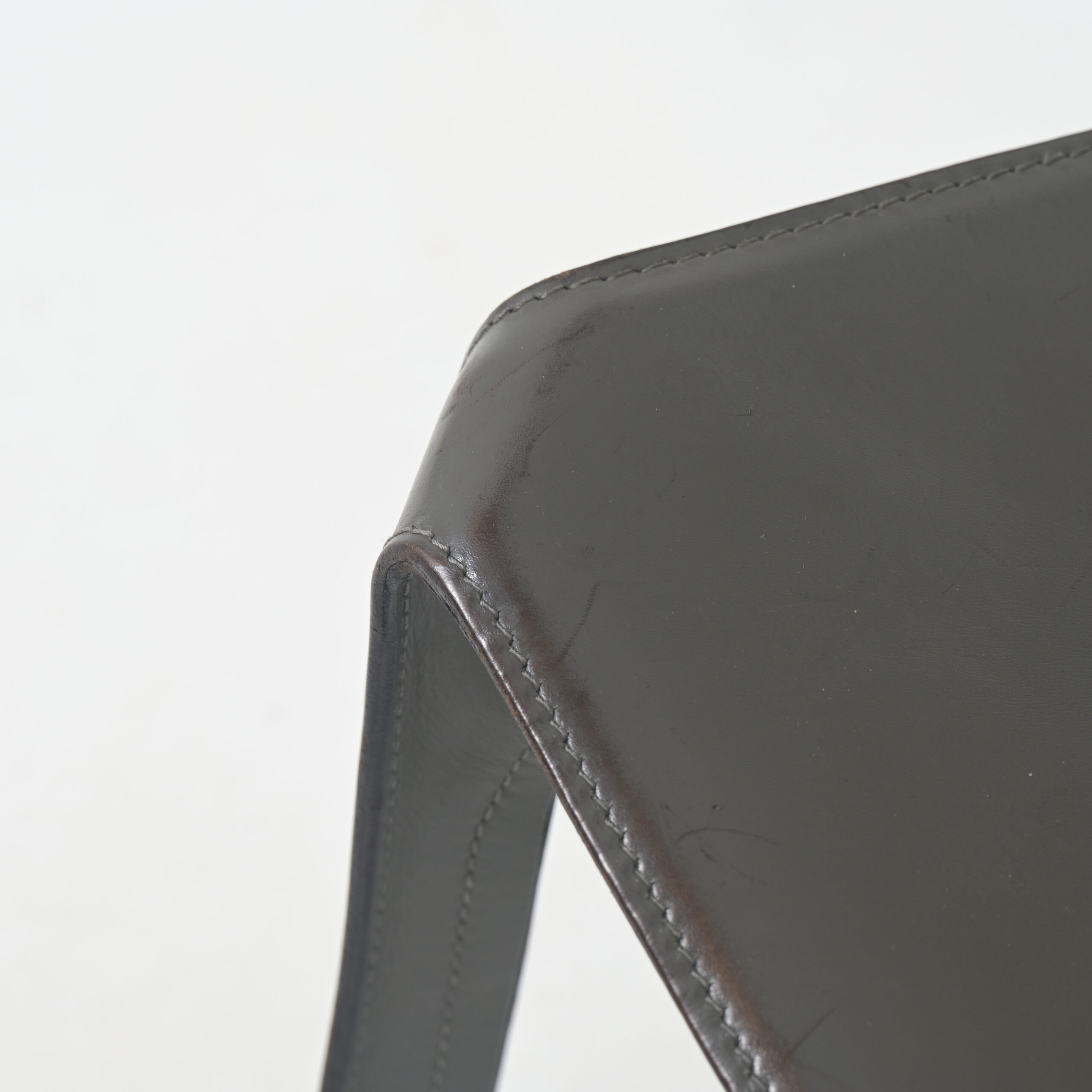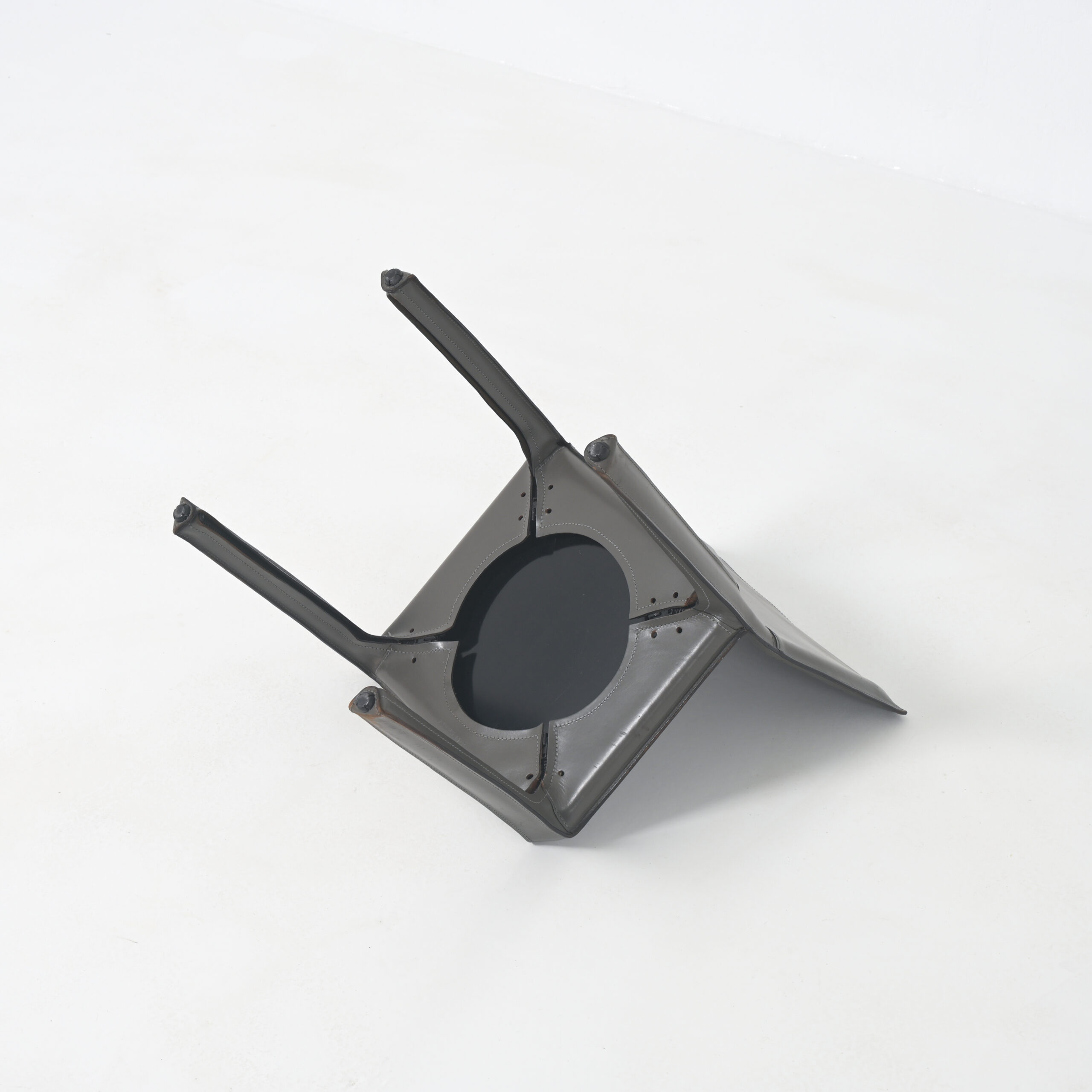 It is a genius design, conceived as an extension and prosthesis for the body. This minimal chair in strong saddle leather is made for eternity.