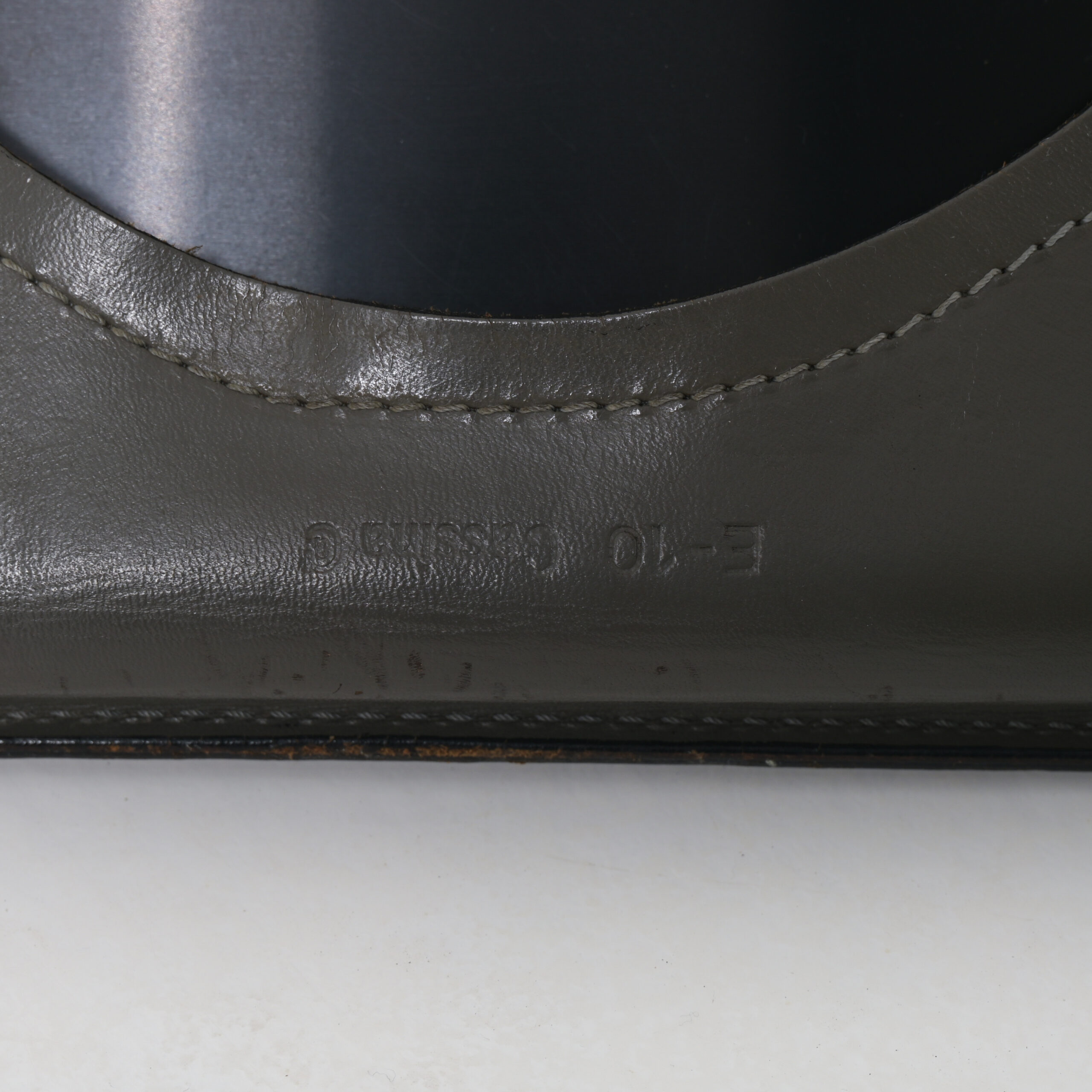 The chair has a skeleton in tubular steel and the stretched, stitched leather is fastened to the frame with four zips.