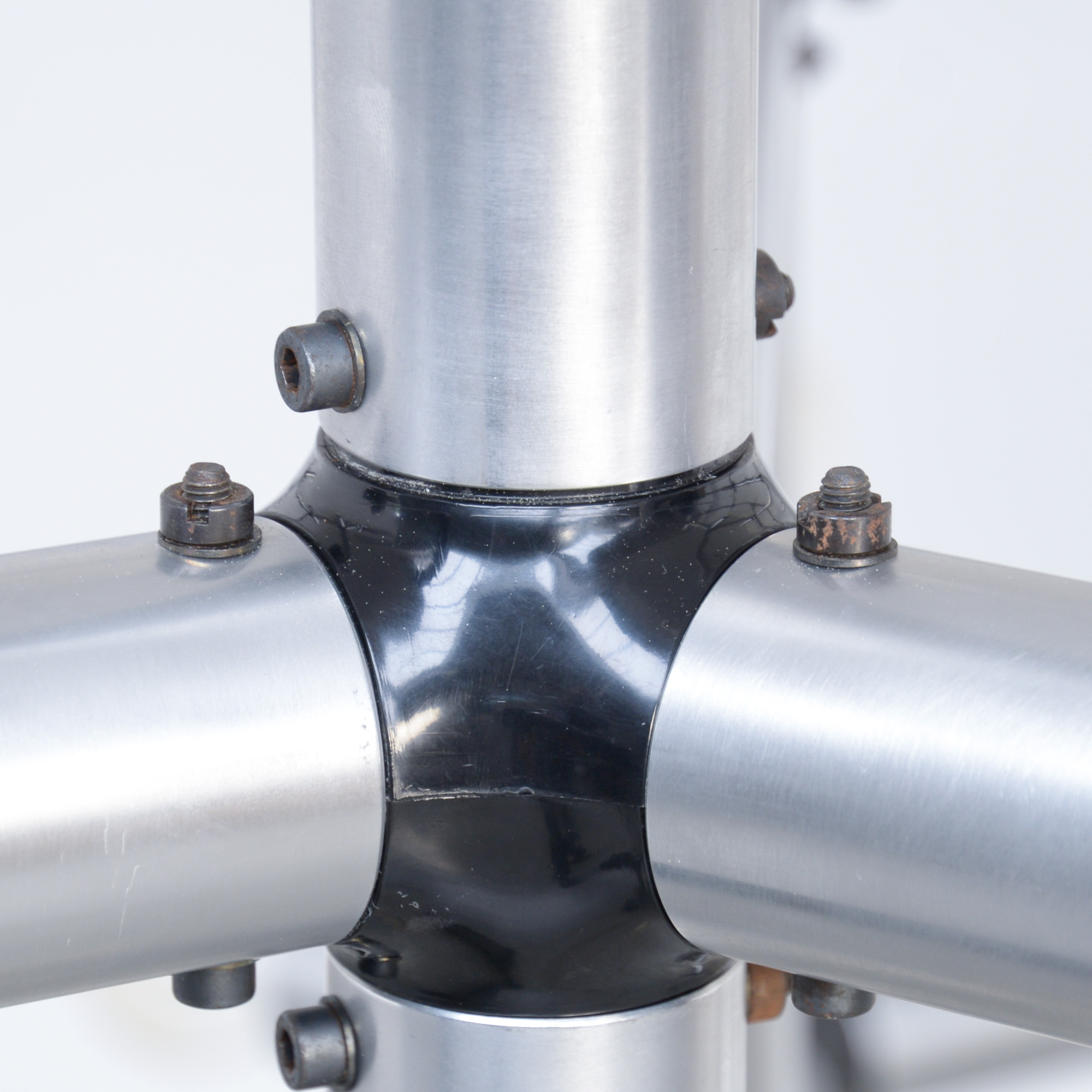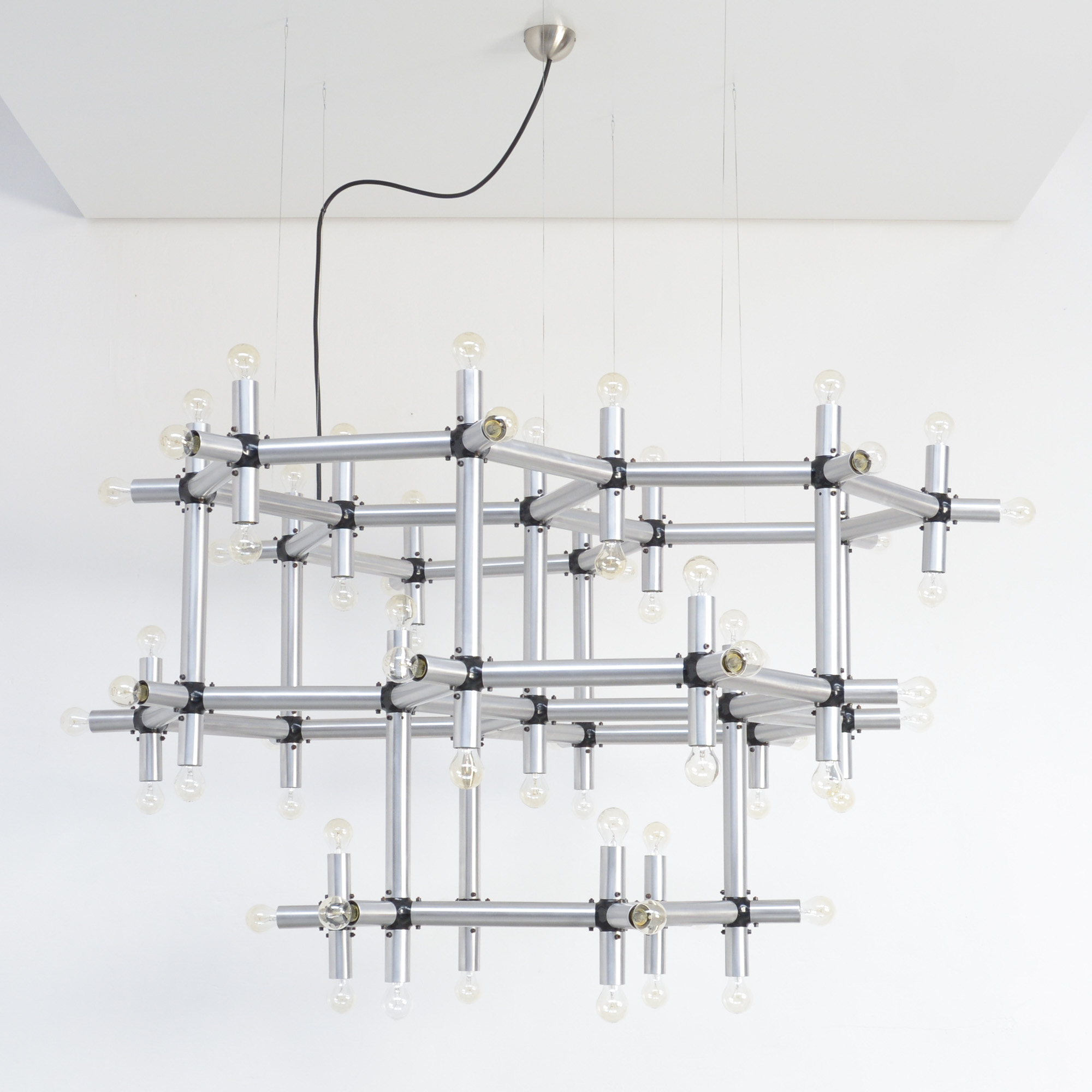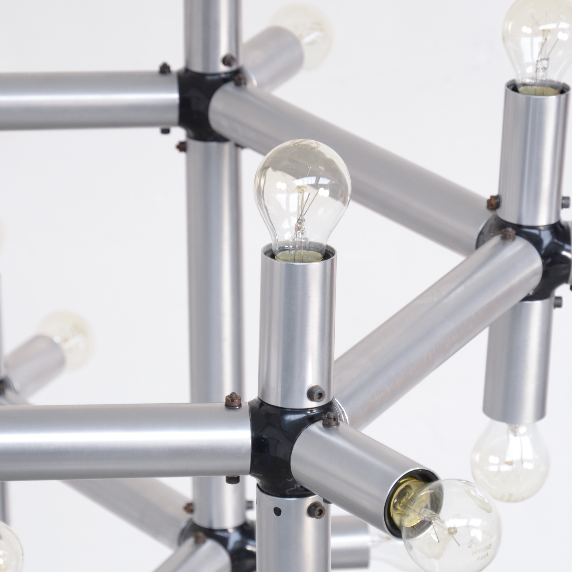 This sculptural light structure is made of anodized aluminum tubes connected with black plastic nodes. It is an impressive piece with 7 hexagons.
