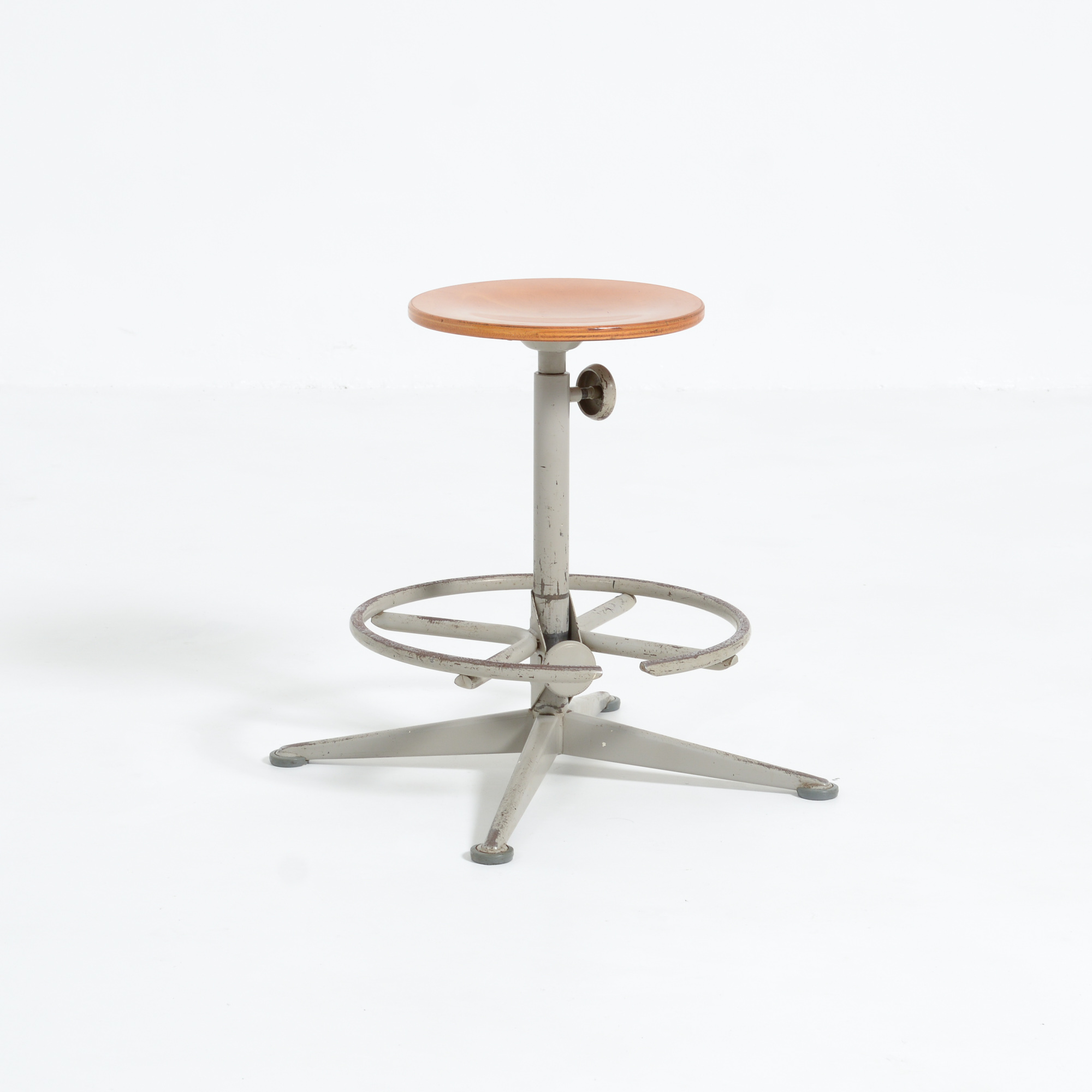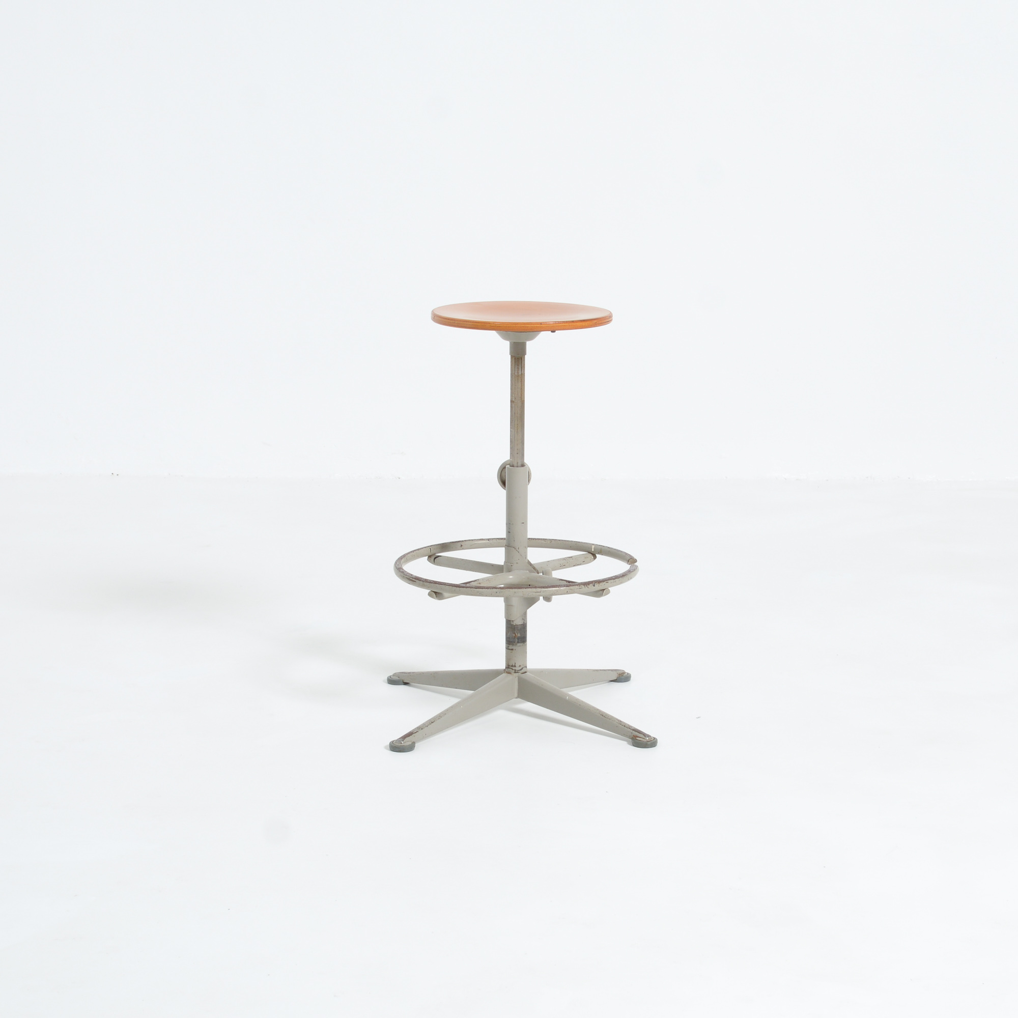 This stool designed by Friso Kramer for Ahrend de Cirkel dates form the 60s. This authentic stool is rotatable and adjustable in height.