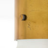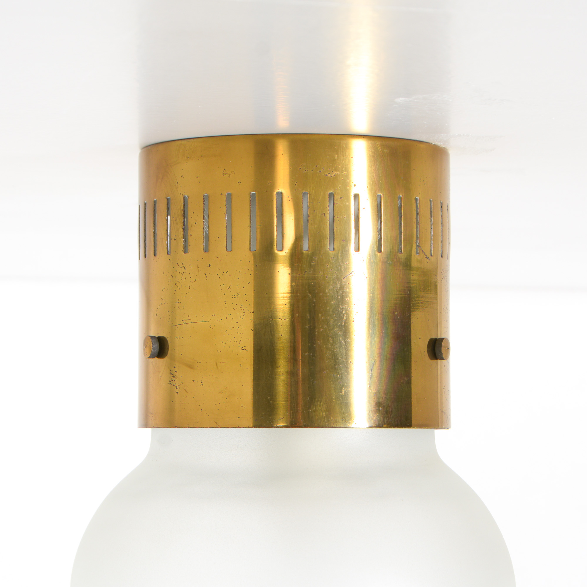 It is made of brass and etched glass.