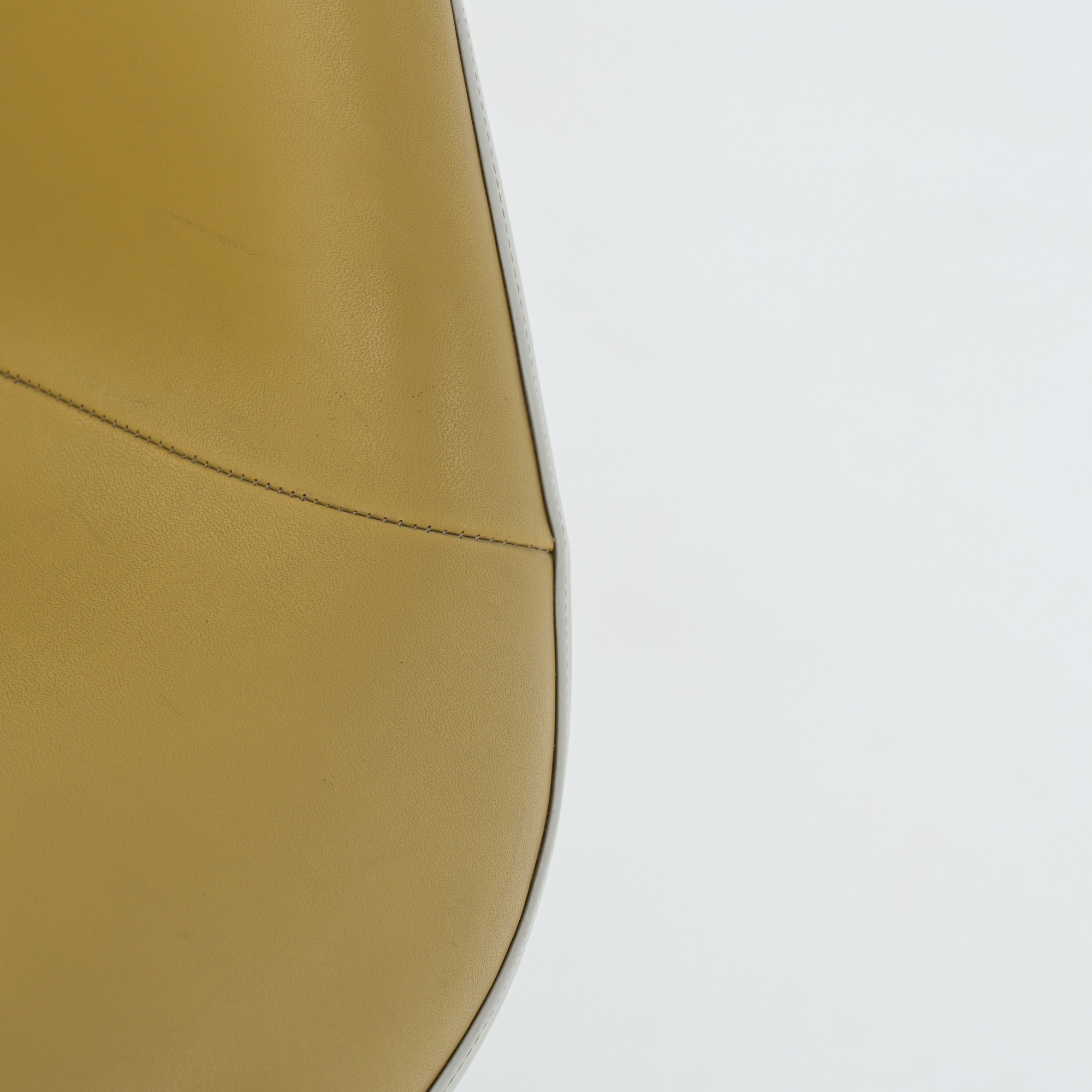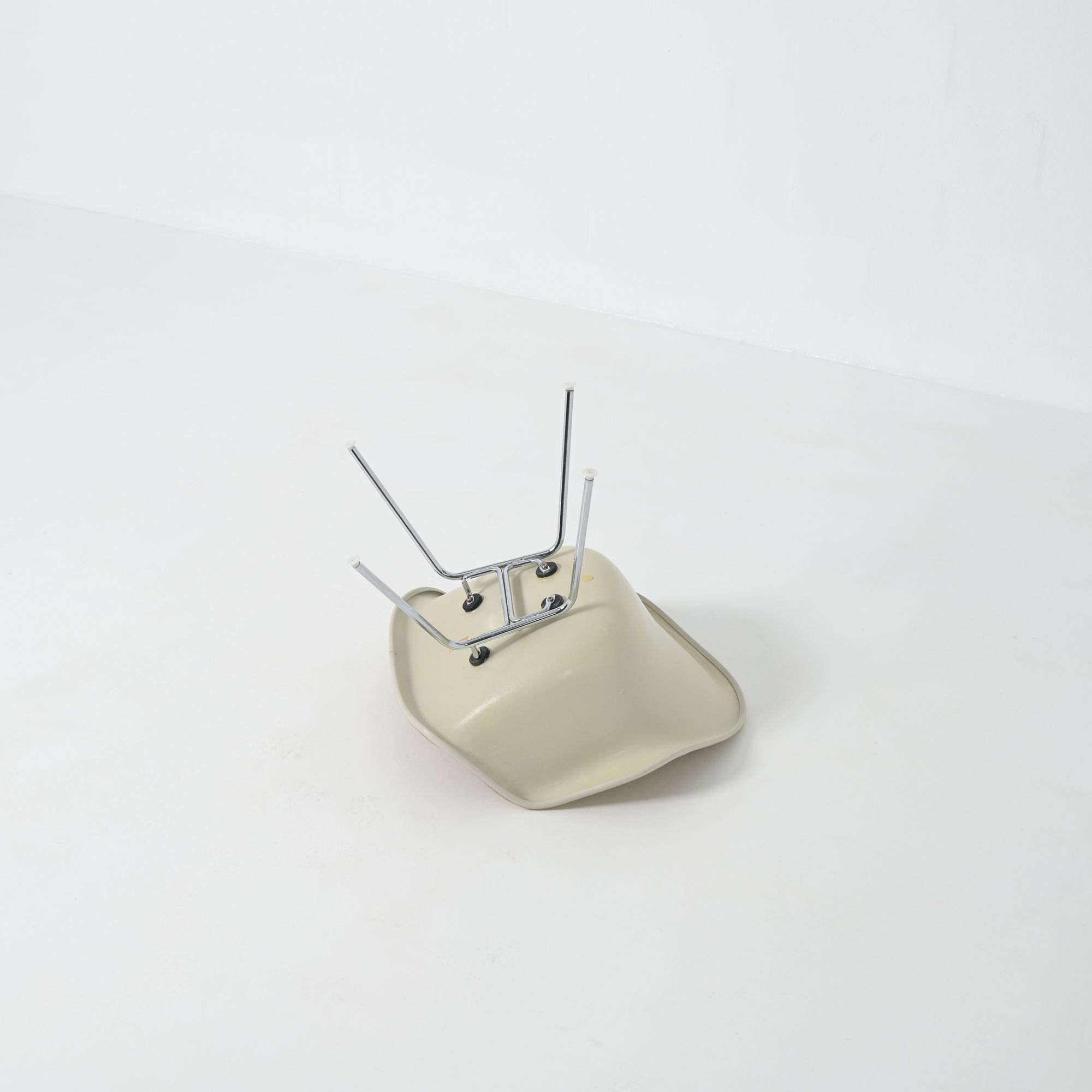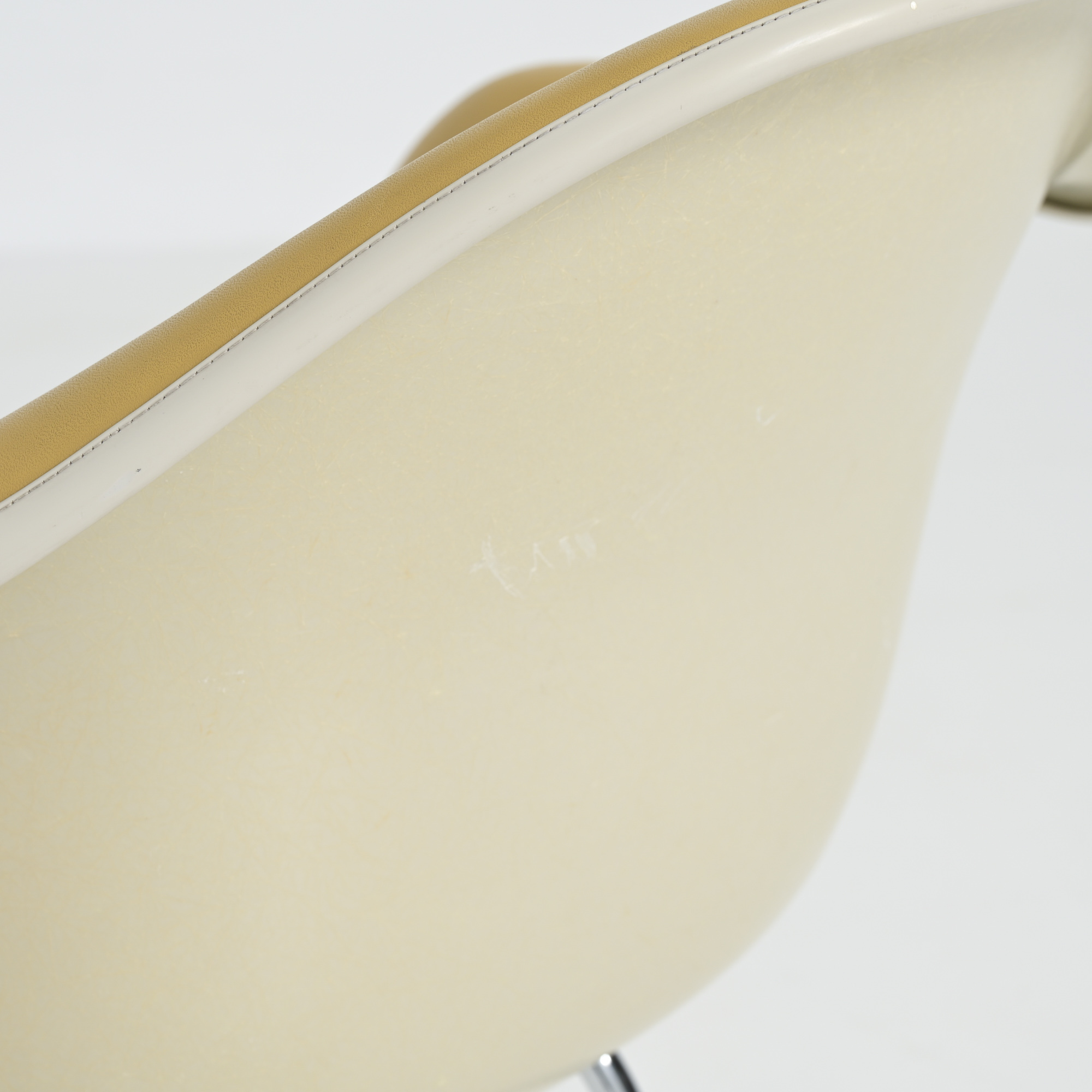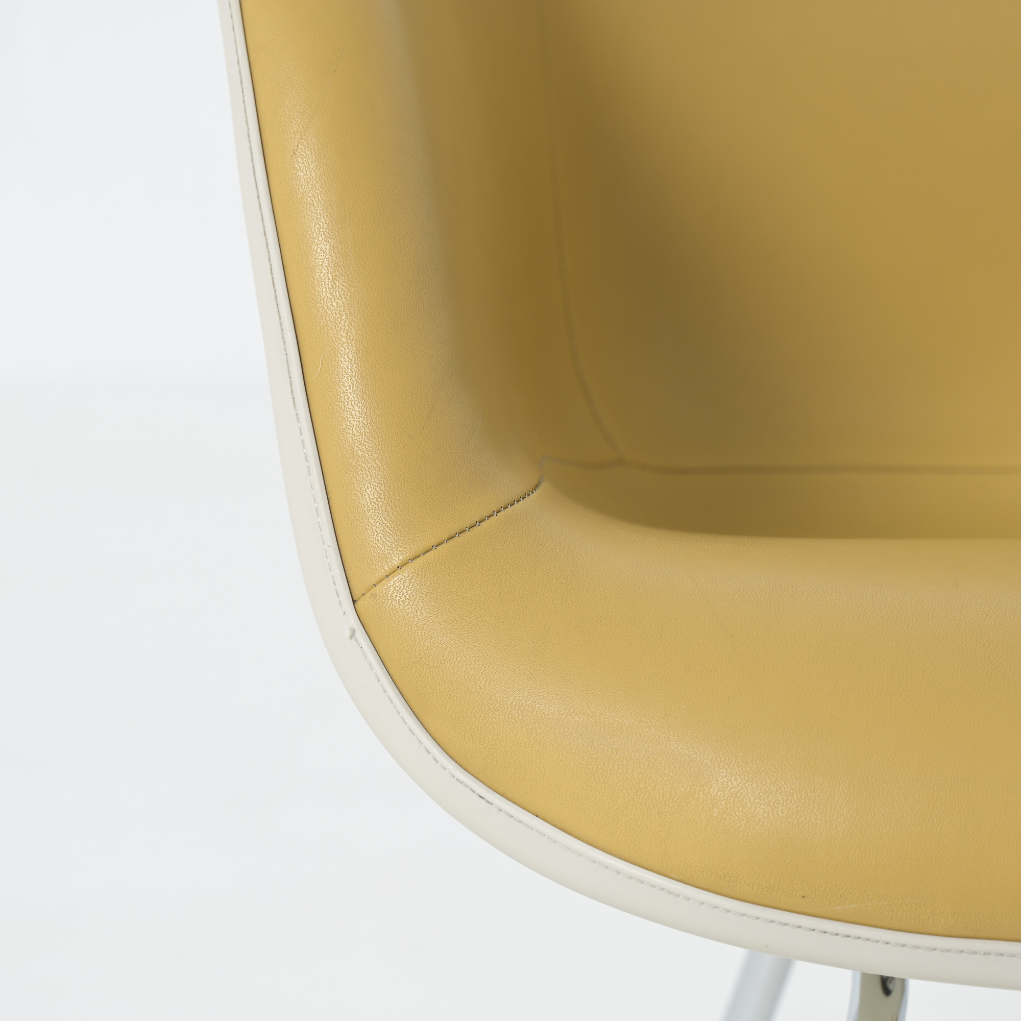 This LAH (low Armchair H base) armchair has a leatherette seat and a fiberglass shell. This chair is the lounge version of the DAH or DAX.