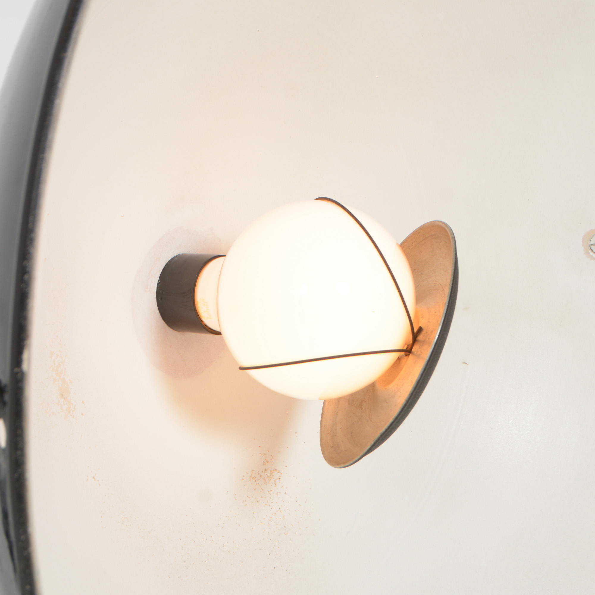 It is rewired and cleaned, so ready for use. It needs one normal E27 bulb. There is special cap to cover the lamp bulb.