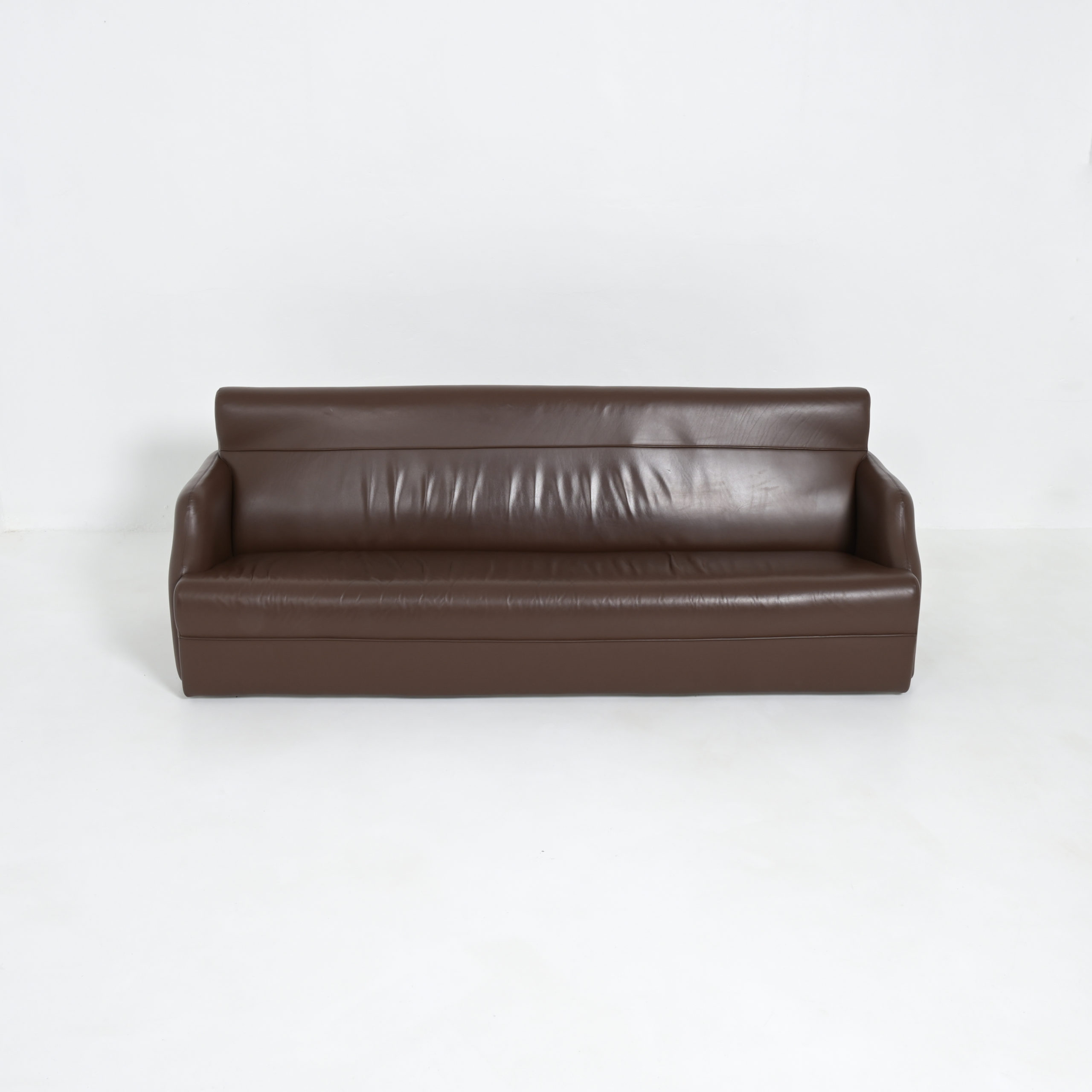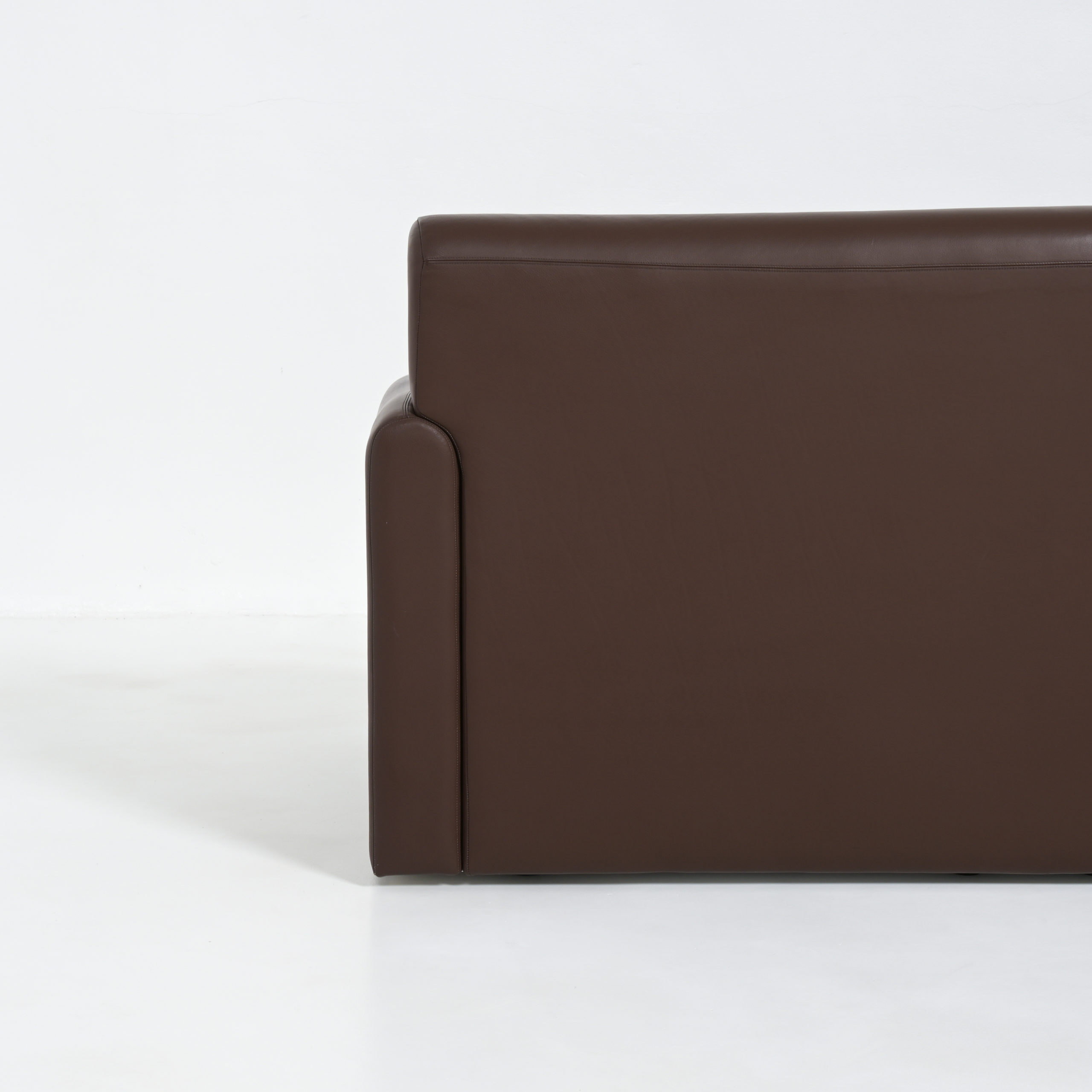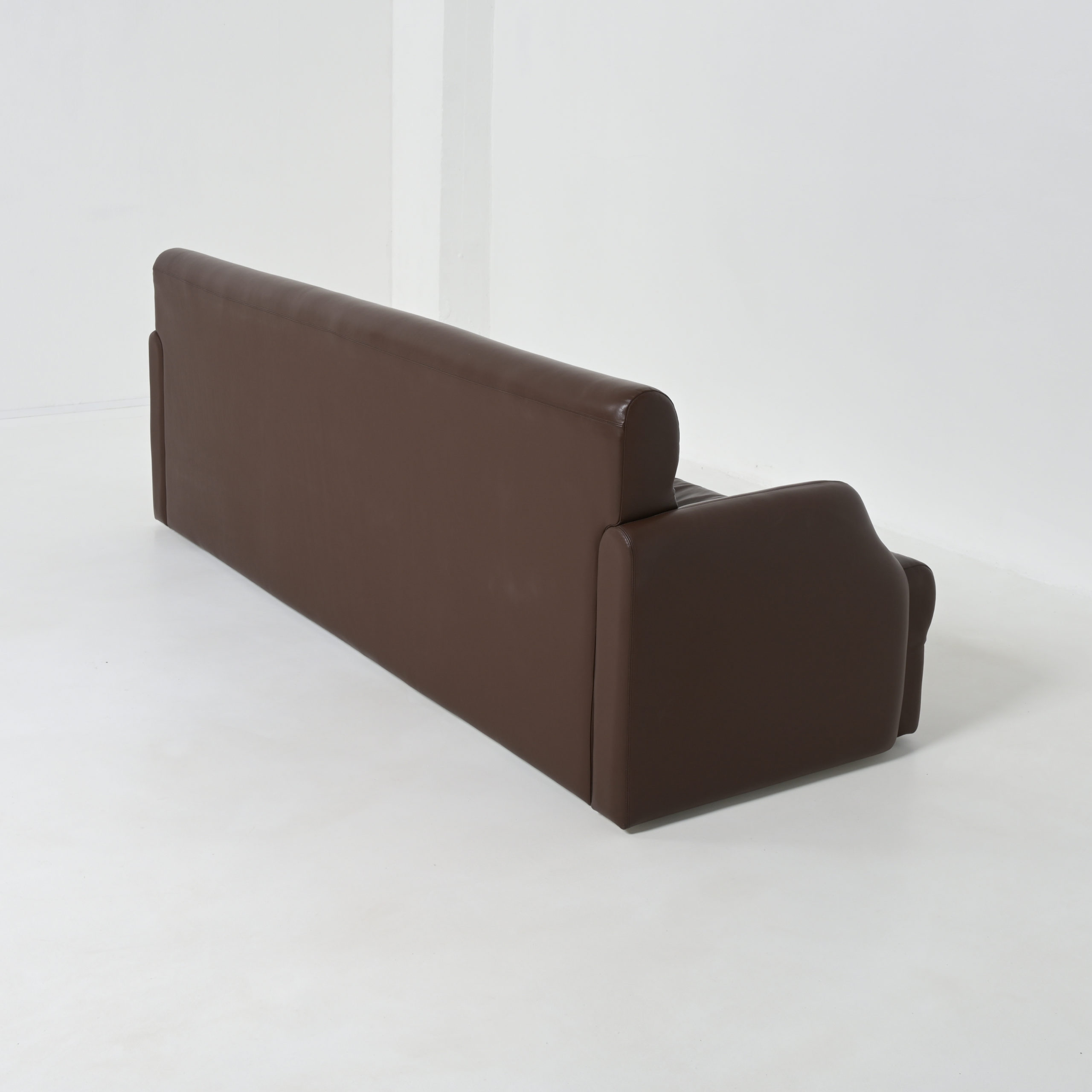 This high quality extra long sofa is made of dark brown taupe leather.