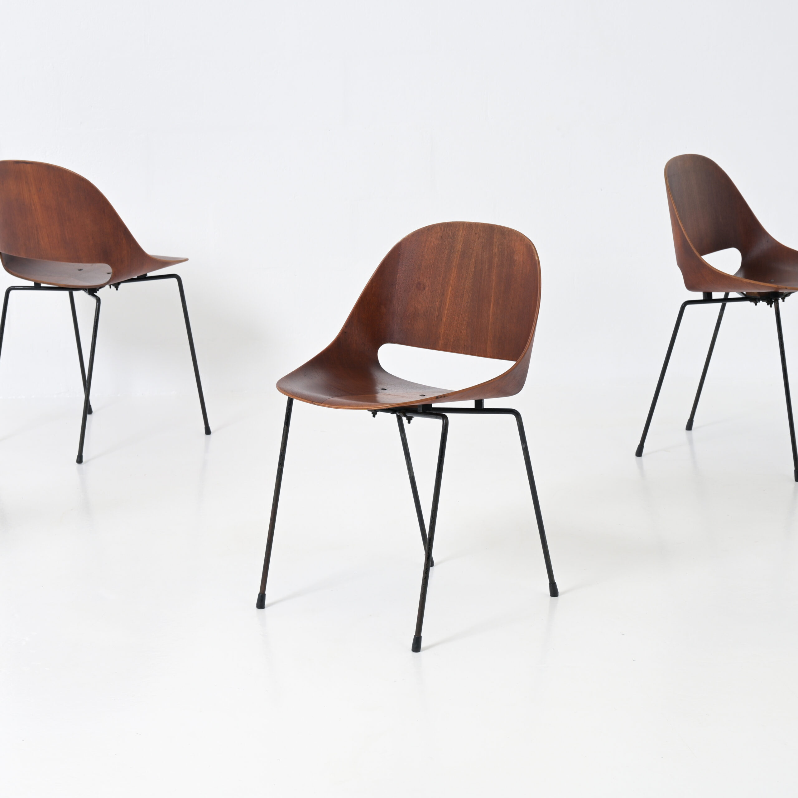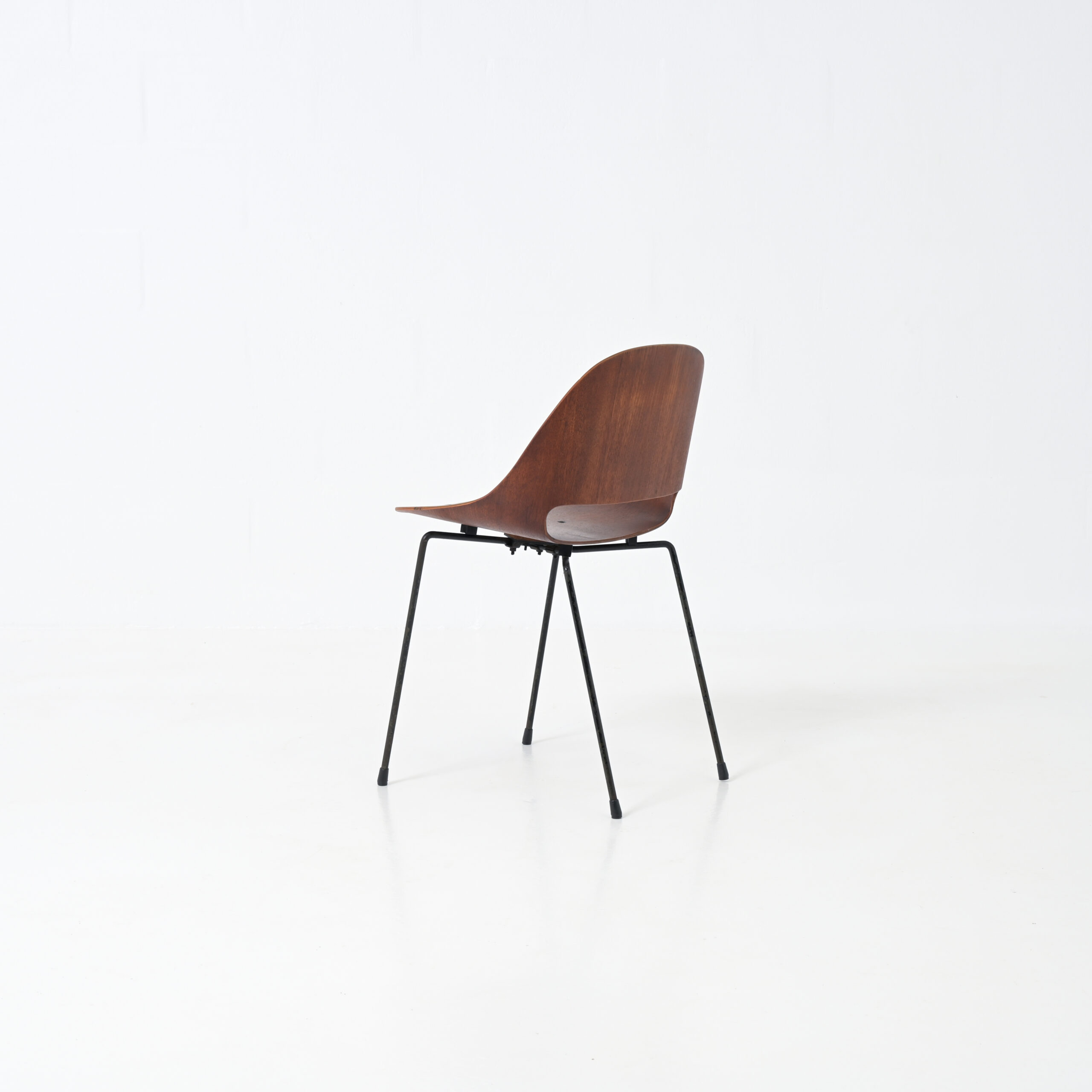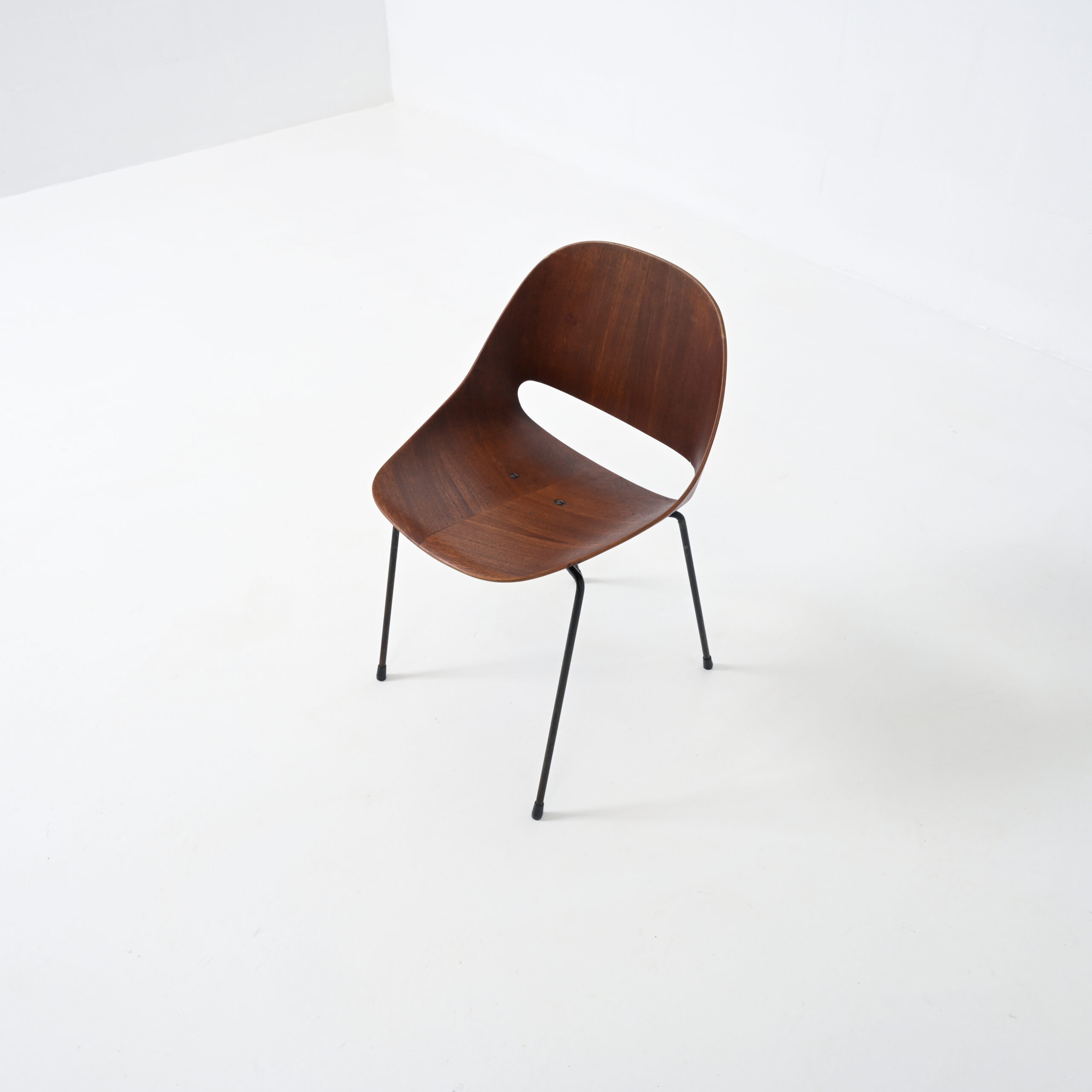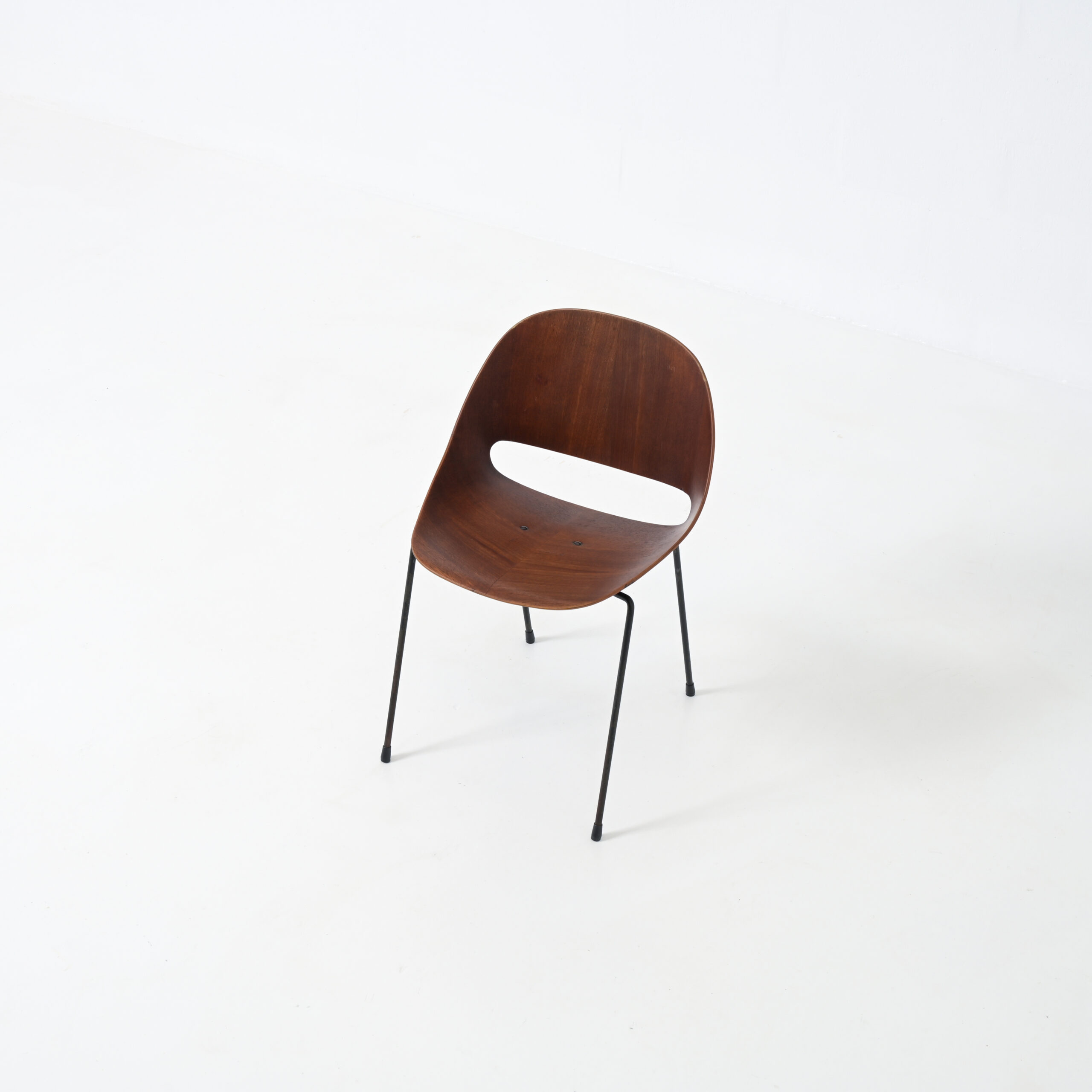 This is the most famous design of Stynen, which he realized together with his assistant Paul de Meyer. The chair was brought onto the market on the occasion of Expo 58 by the Antwerp company Straatman, Loral en Cie. An elegant chair with steel legs and a seat made of pleated plywood.