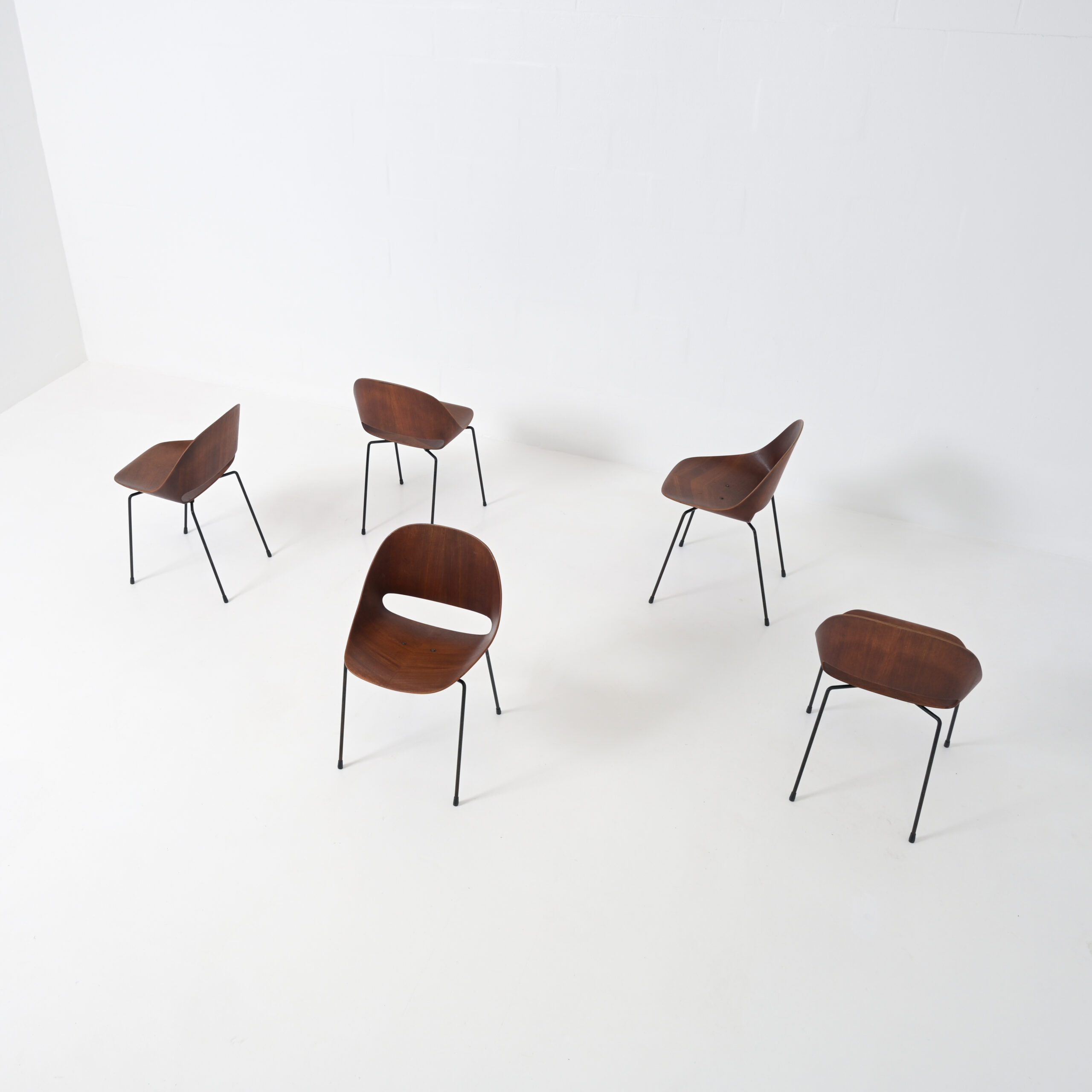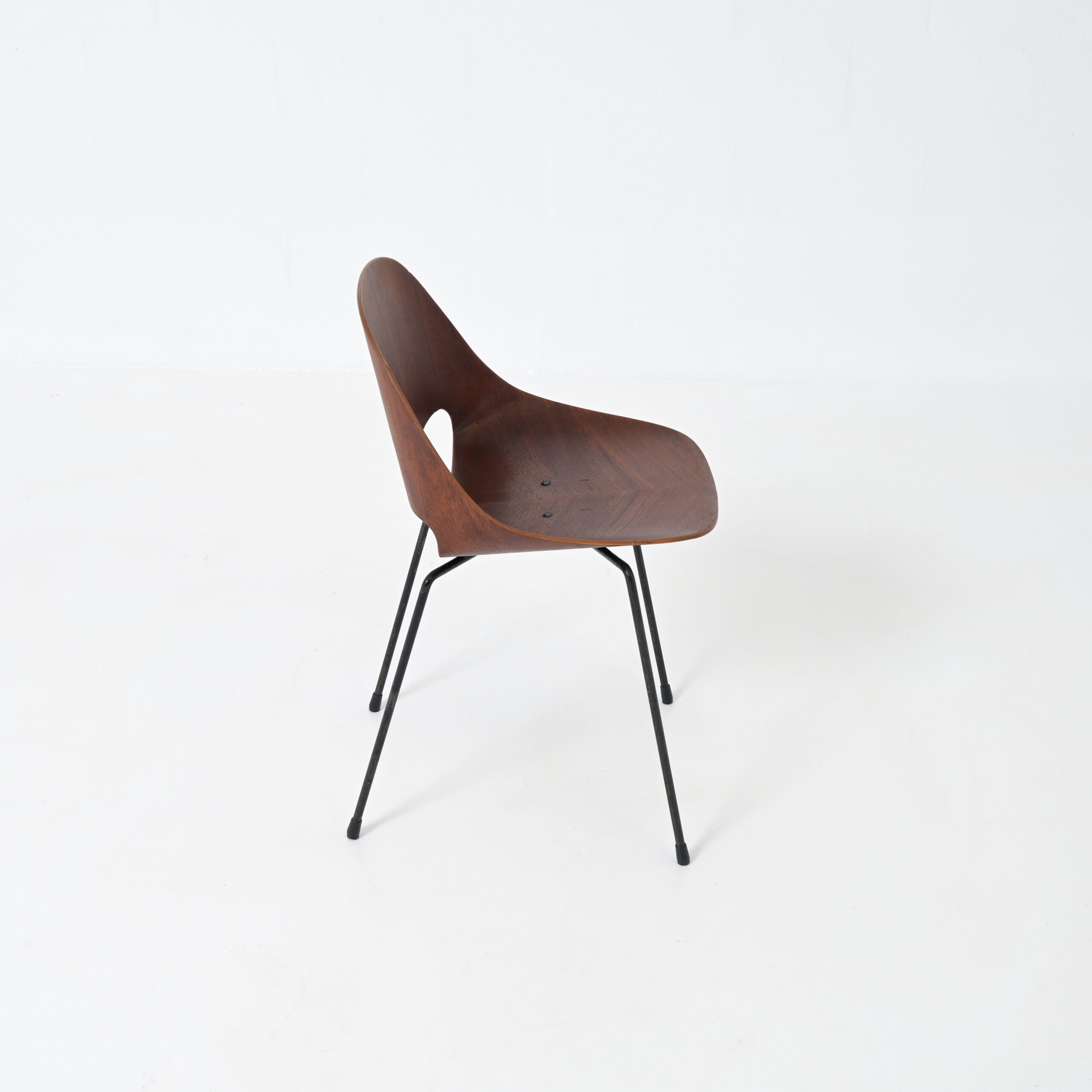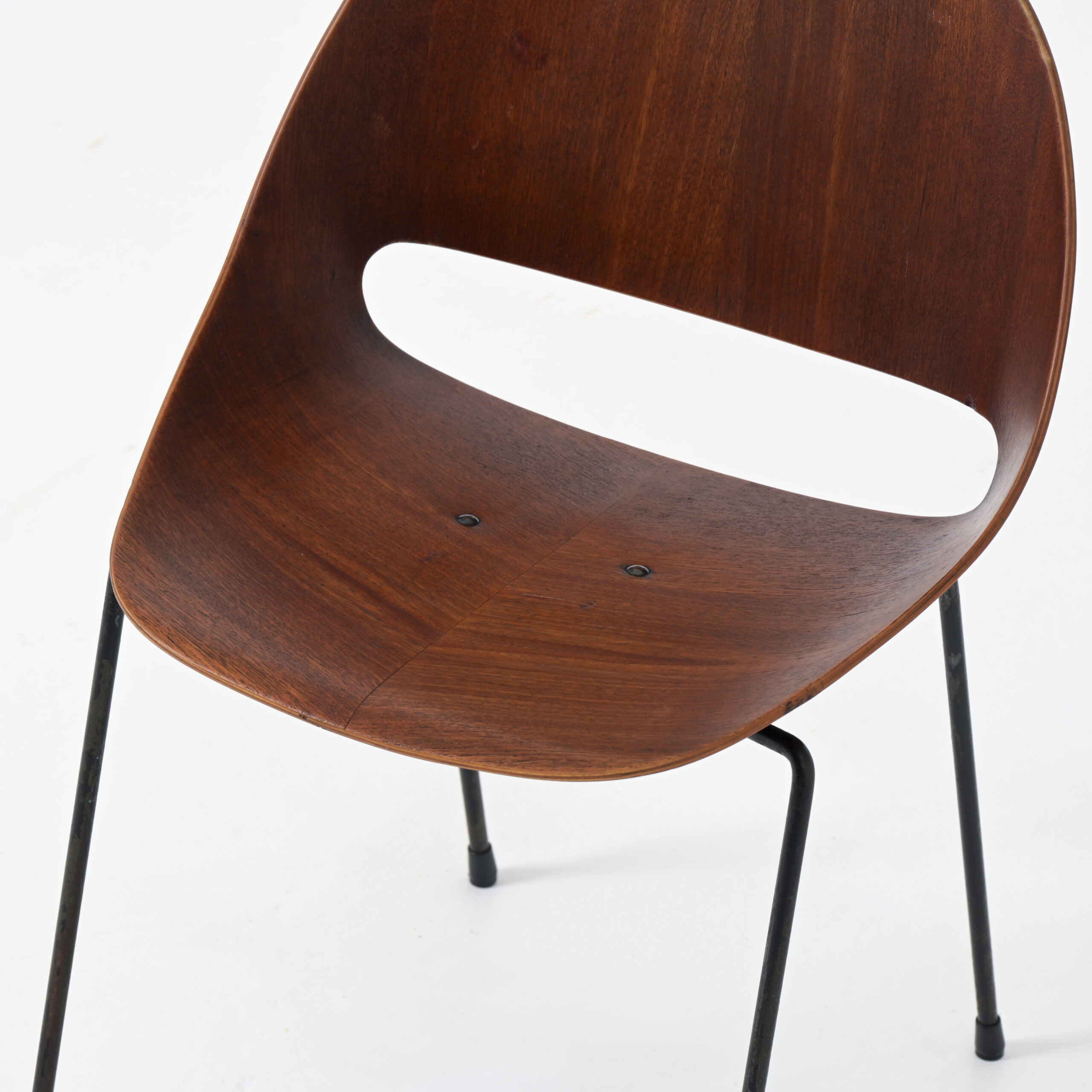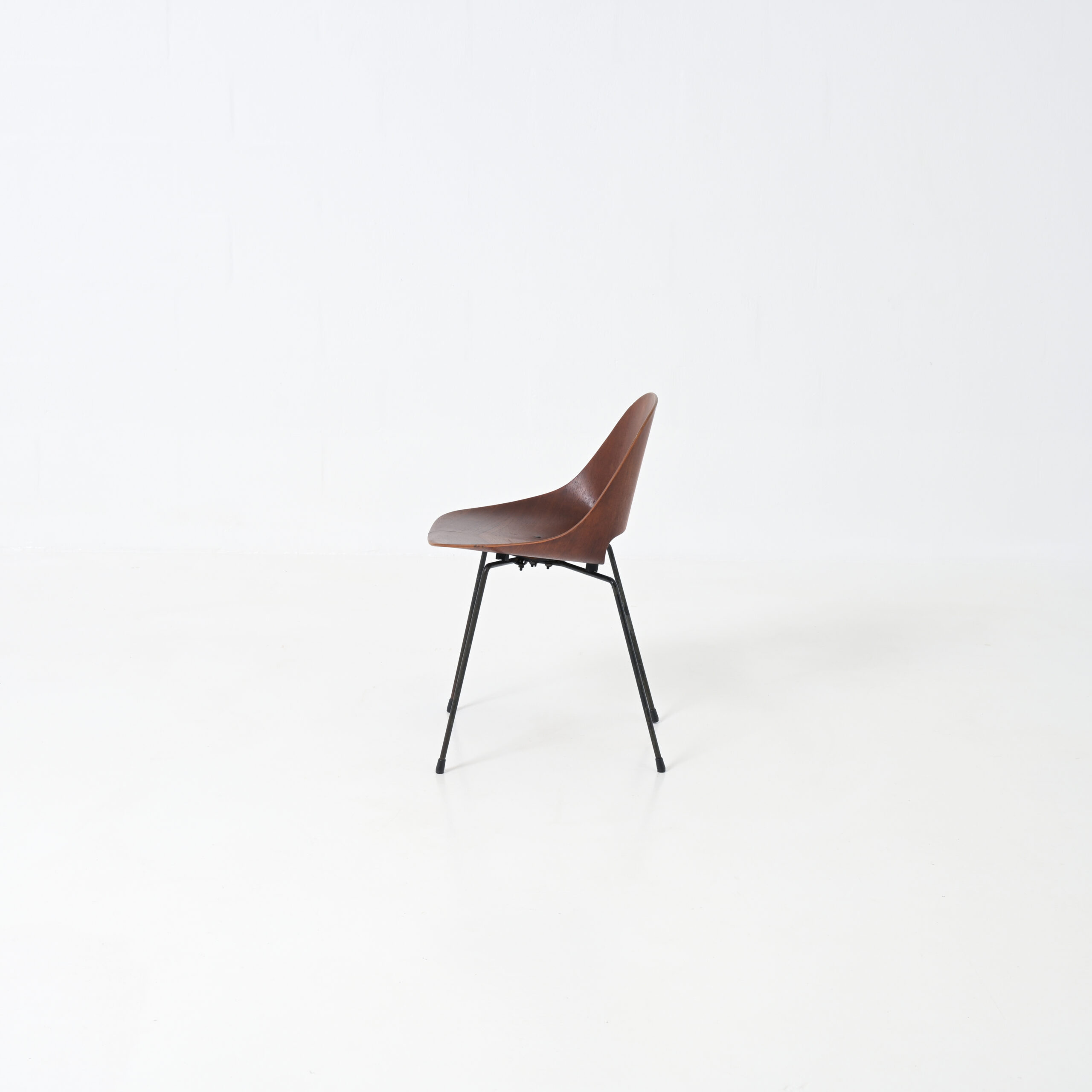 This is the most famous design of Stynen, which he realized together with his assistant Paul de Meyer. The chair was brought onto the market on the occasion of Expo 58 by the Antwerp company Straatman, Loral en Cie. An elegant chair with steel legs and a seat made of pleated plywood.