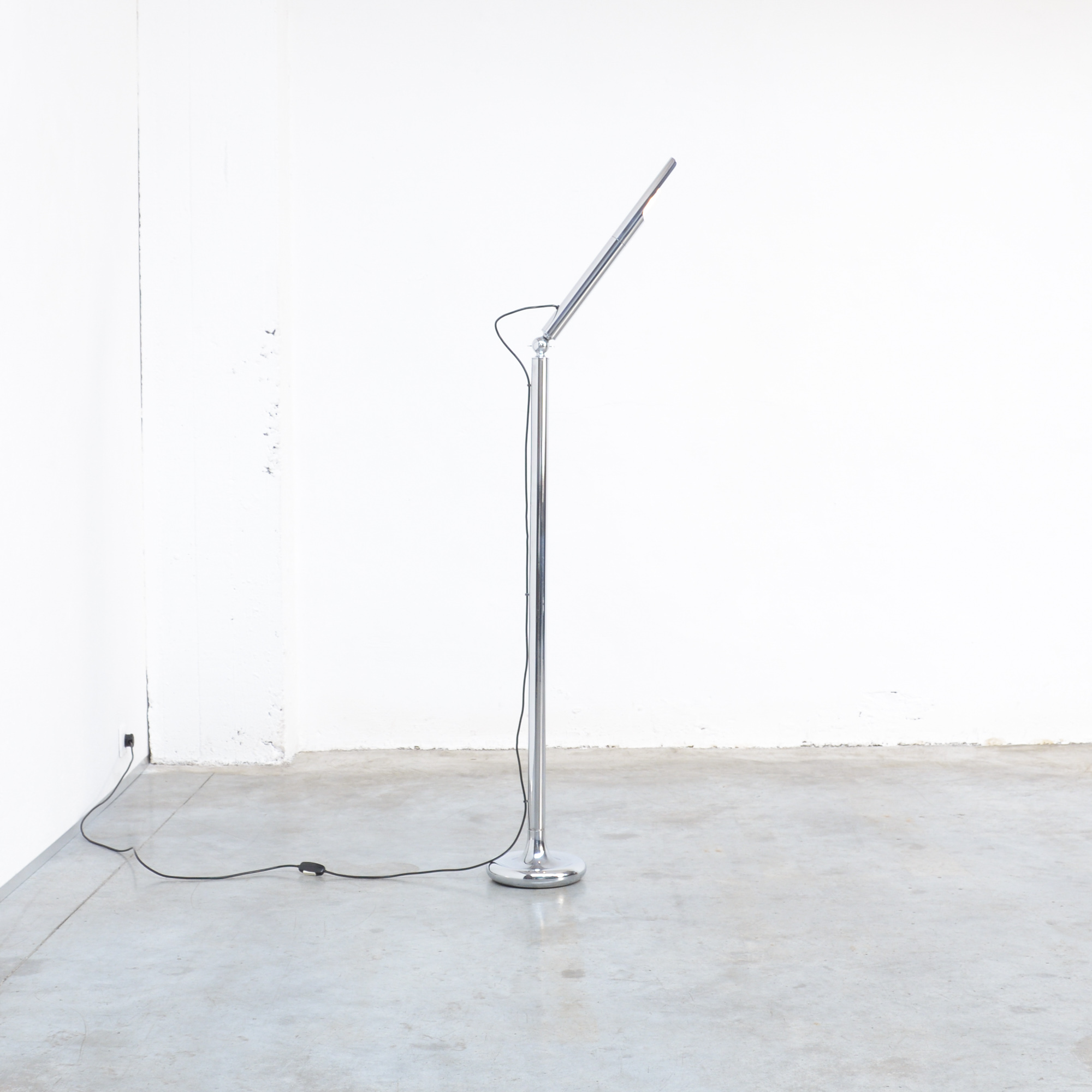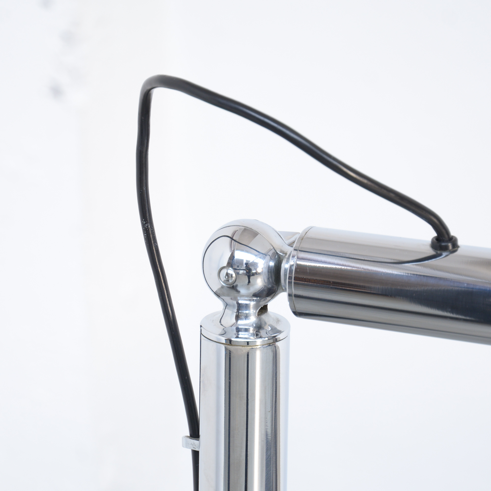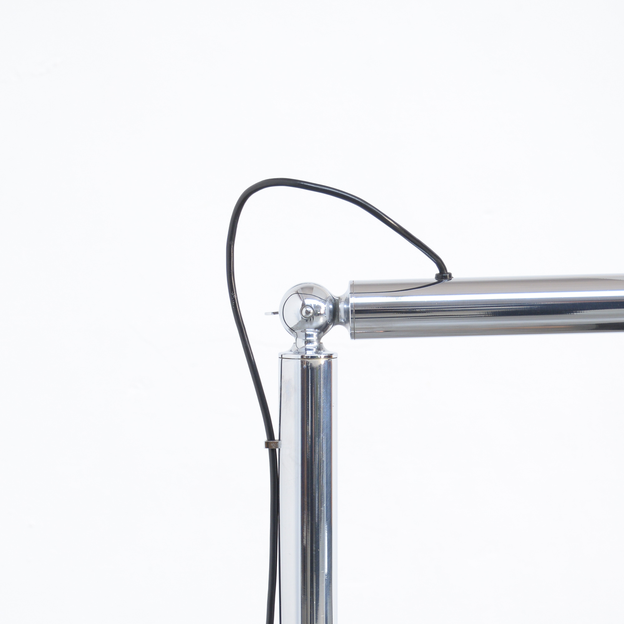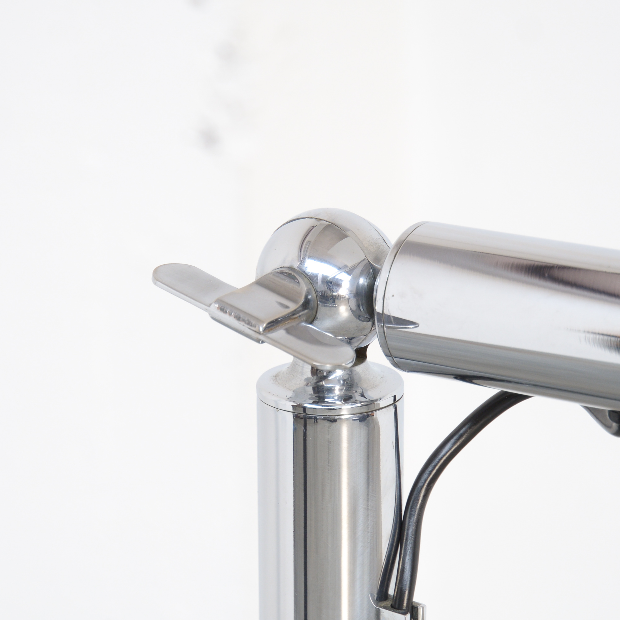 The base, the axis and the directional reflector are all made in chromed steel. The height is adaptable from 122 cm to 171 cm.