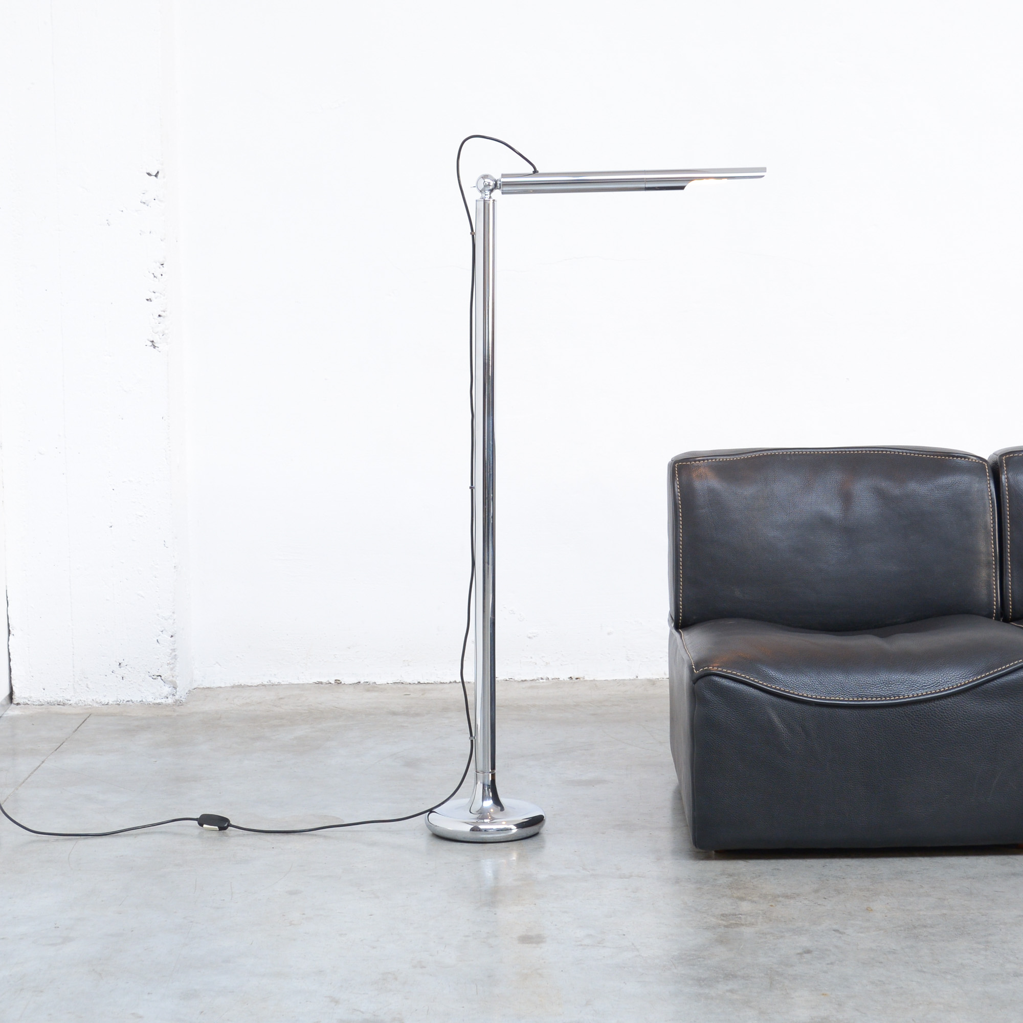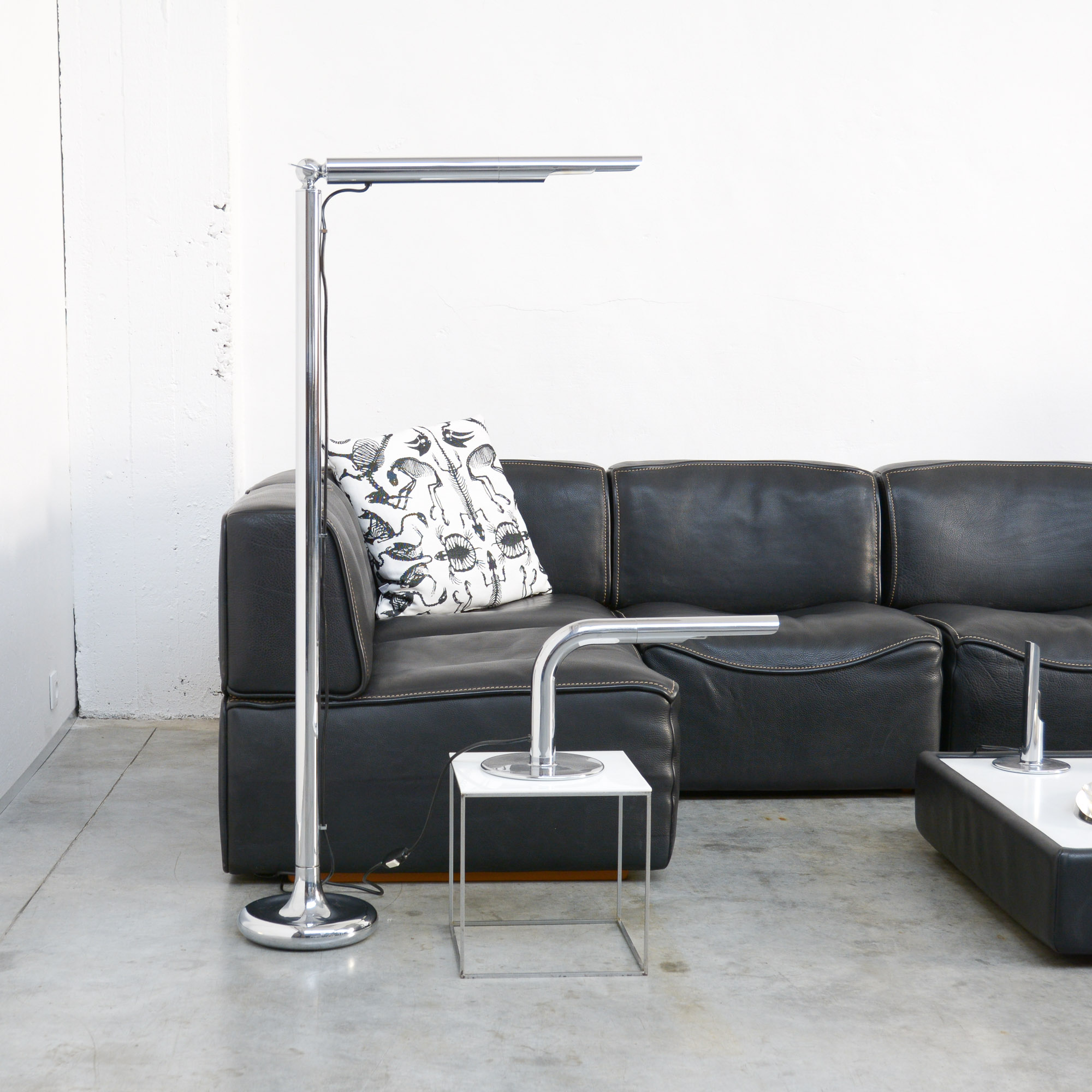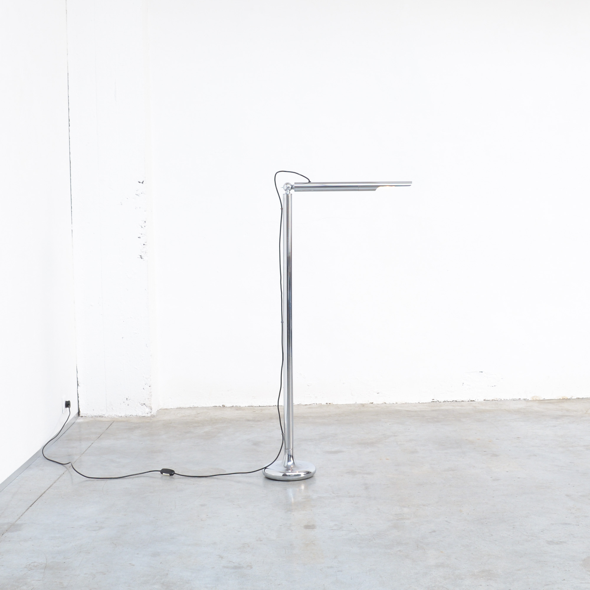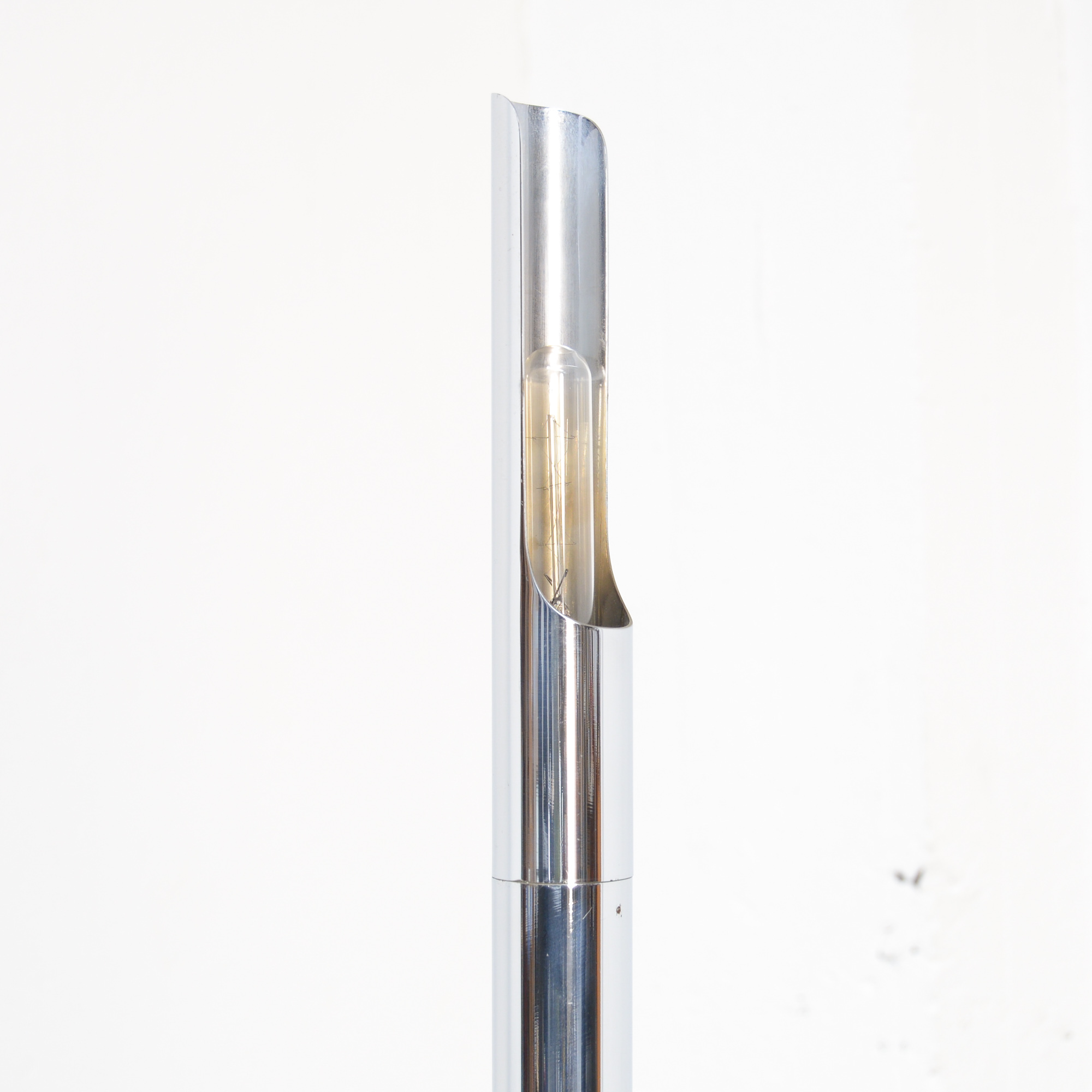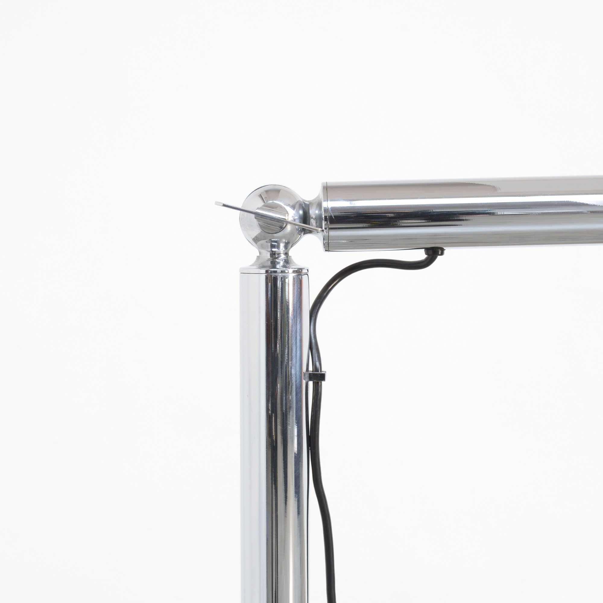 The base, the axis and the directional reflector are all made in chromed steel. The height is adaptable from 122 cm to 171 cm.