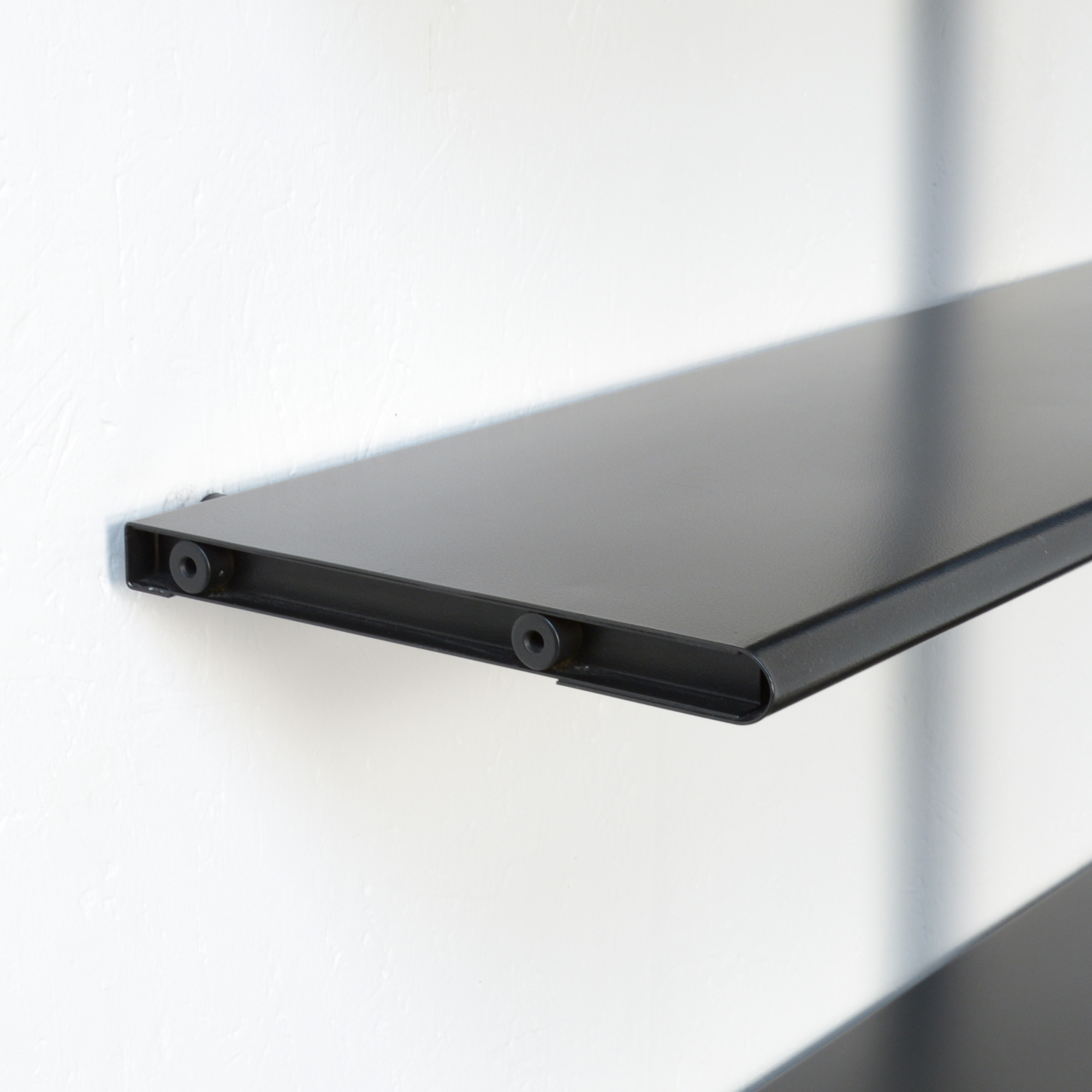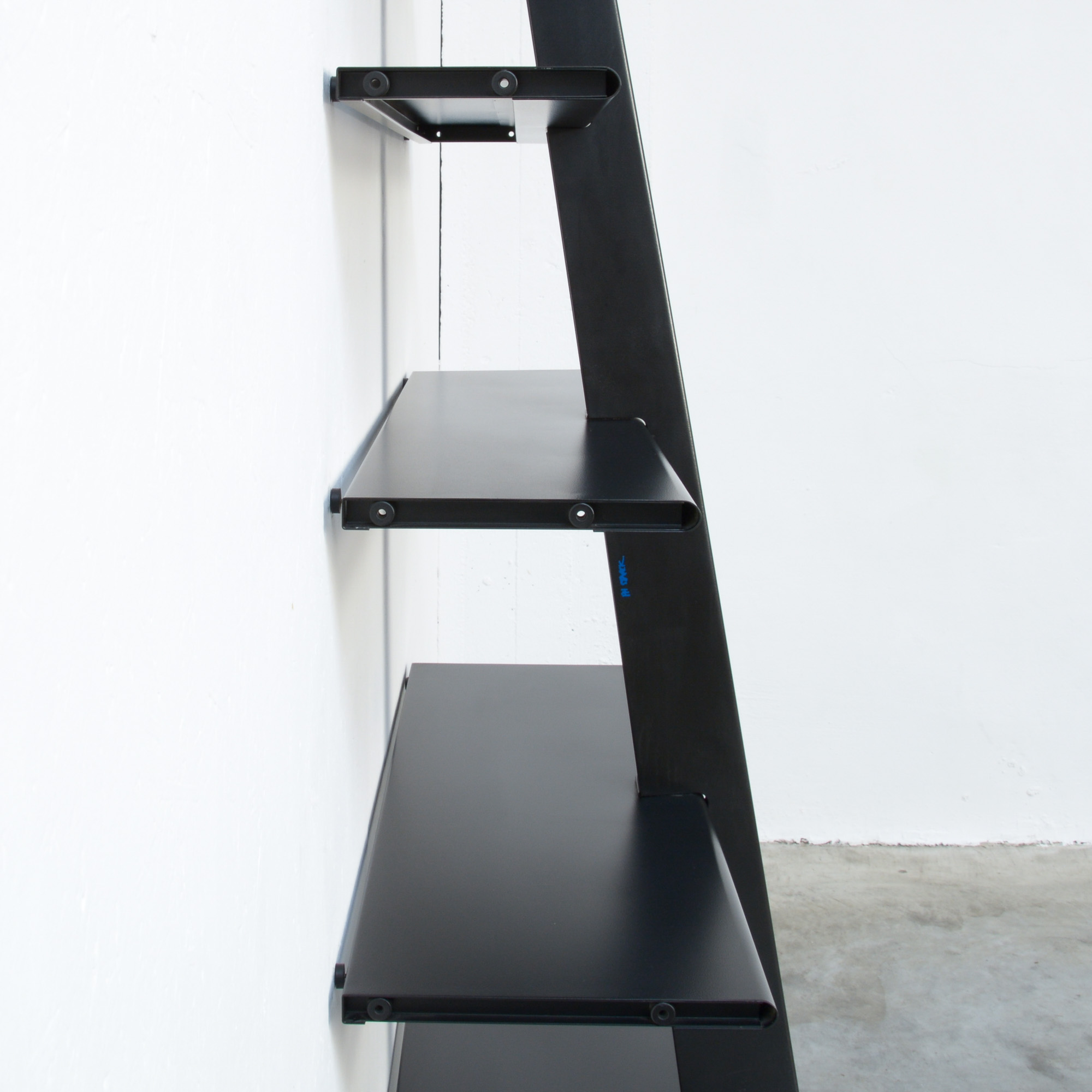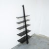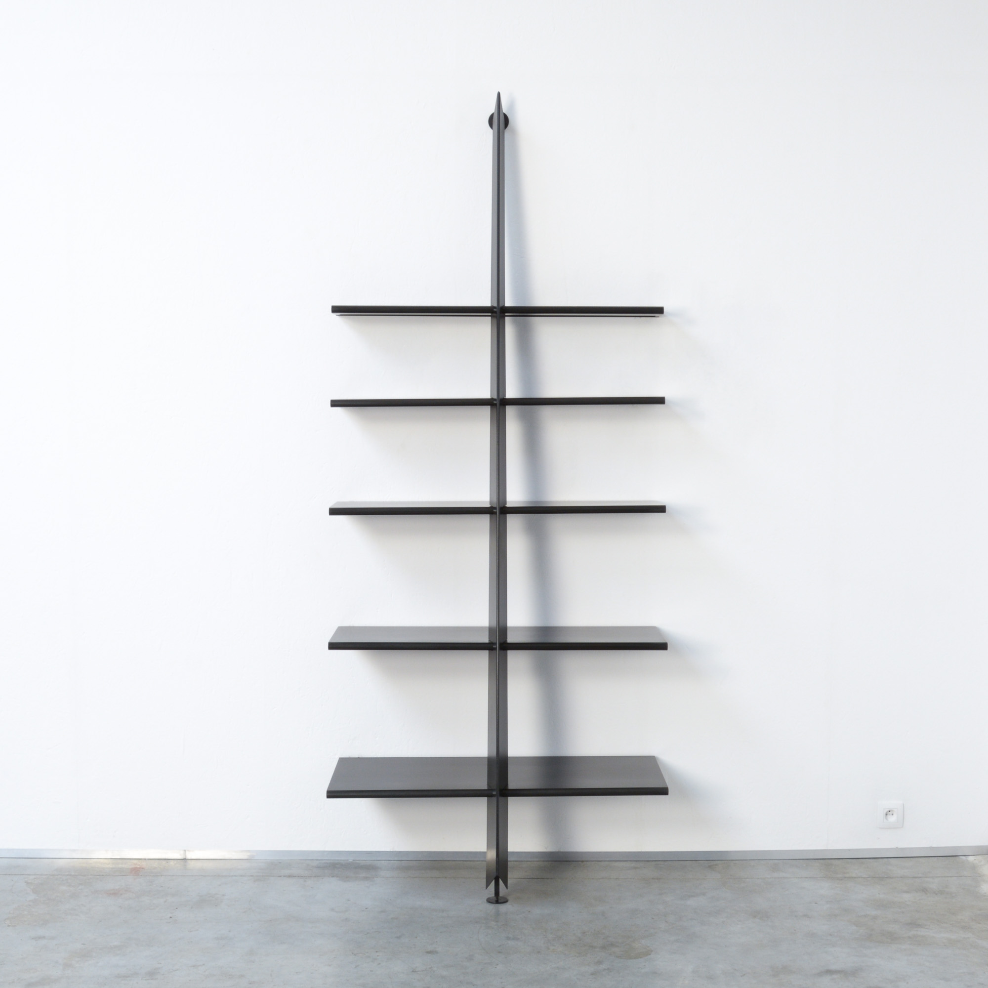 The Mac Gee book shelf was designed by Philippe Starck in cooperation with Baleri Italia in 1984 in the beginning of his career. This Mac Gee book shelf is made of black metal. The central pillar has to be fixed on the wall. The five shelves of decreasing depth are inspired by the blade profile of an airplane.