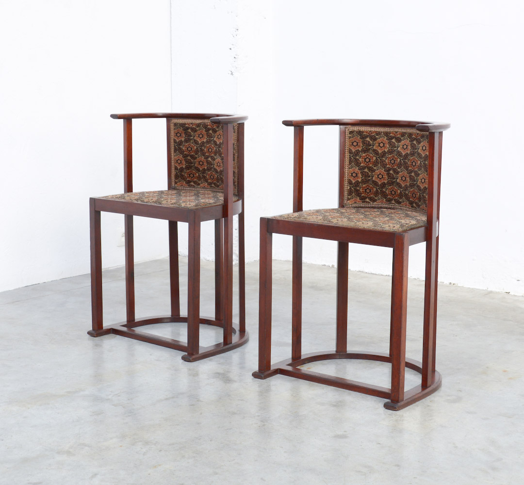 The chairs are obviously inspired by the work of Josef Hoffmann and the Wiener Werkstätte.
