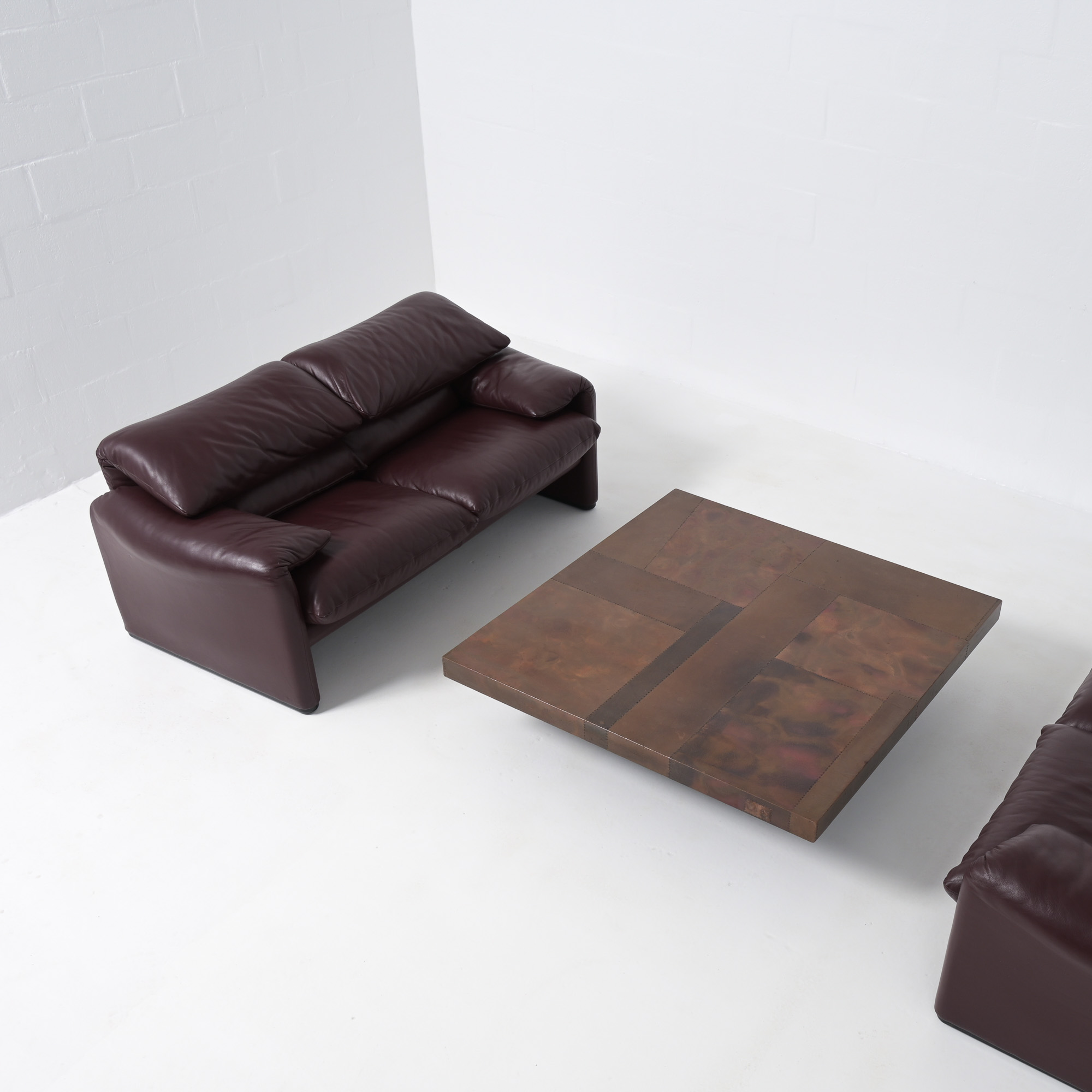 This nice and comfortable two-seat sofa “Maralunga” was designed by Vico Magistretti for Cassina in 1973. Maralunga is one of the most famous Italian design sofas, a landmark that has inspired generations of designers and products. It is a very comfortable design with adjustable headrests that can be folded up or down to suit each user. This sofa is made of high quality leather and still in very good condition. There are 2 extra cushions to further increase seating comfort.