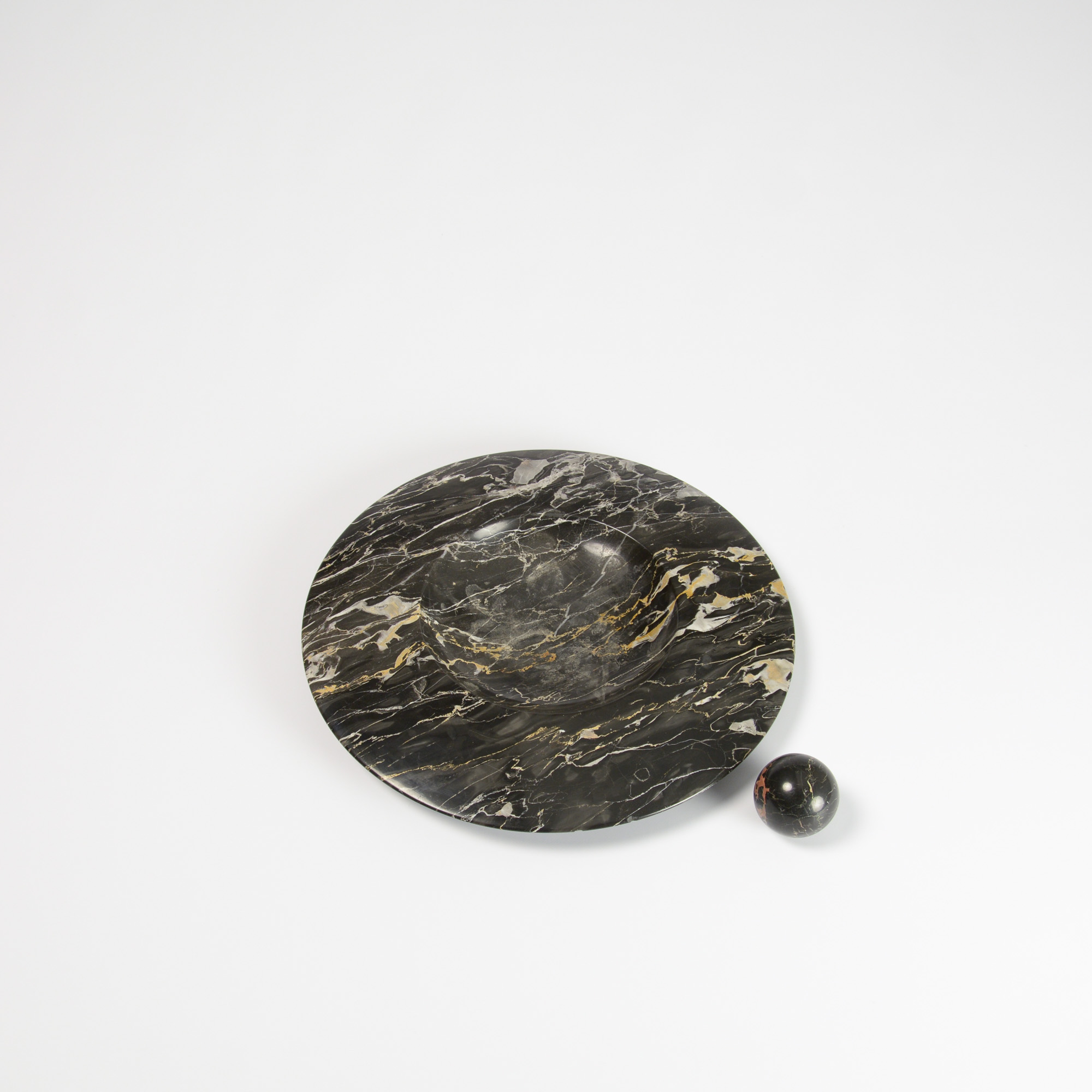 It is a perfectly shaped bowl with a ball in the same black marble.