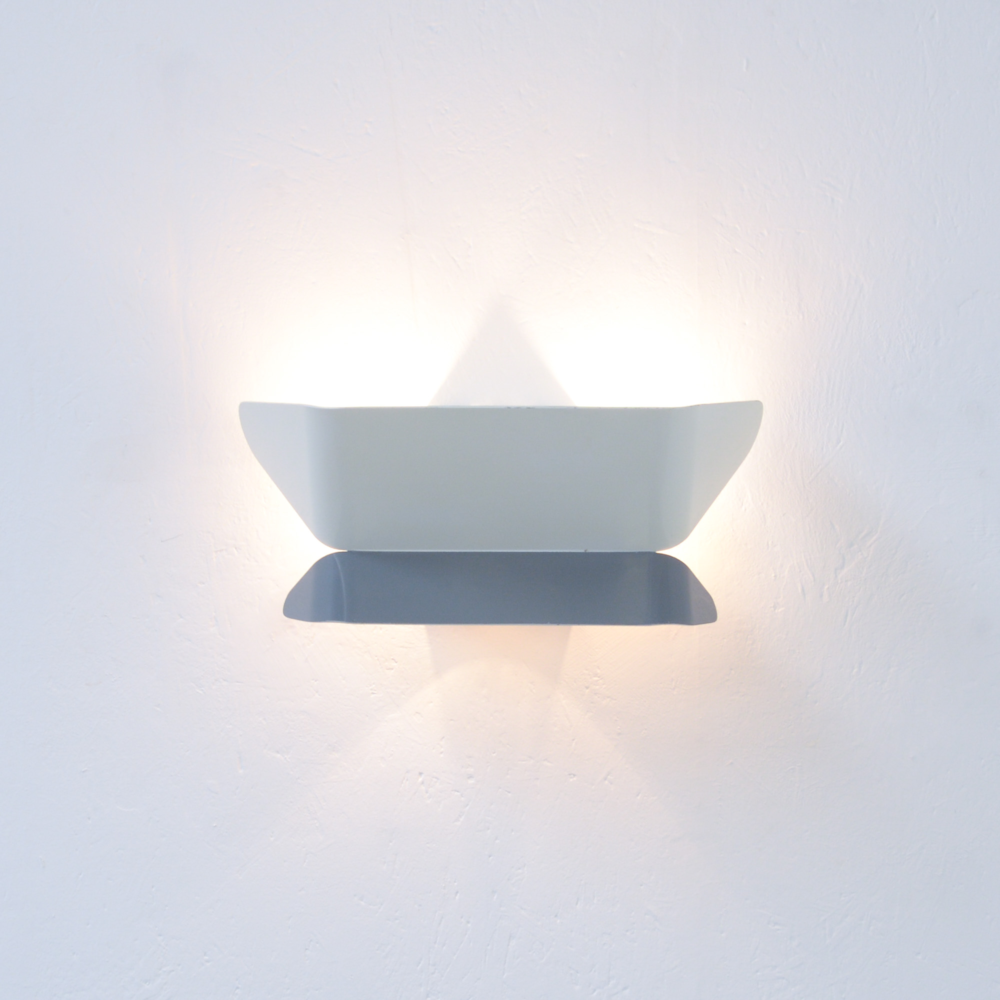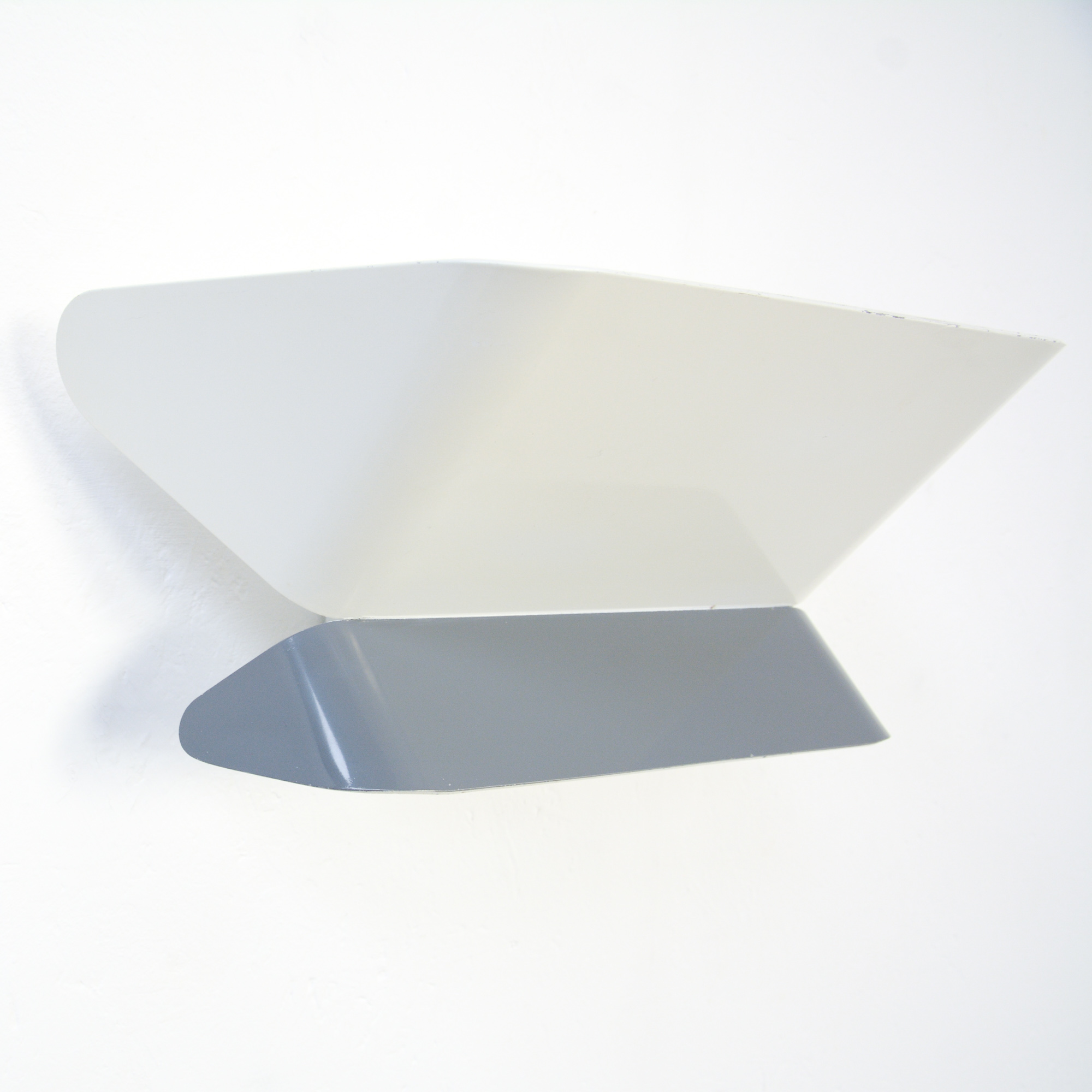 This minimalist metal lamp in white and grey is in very good authentic condition.
