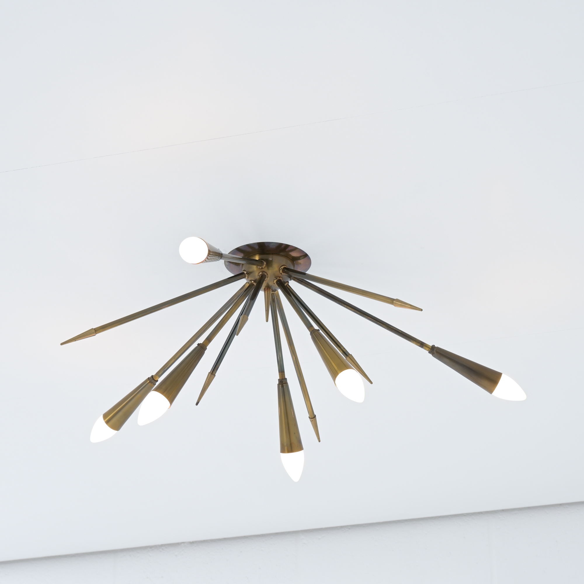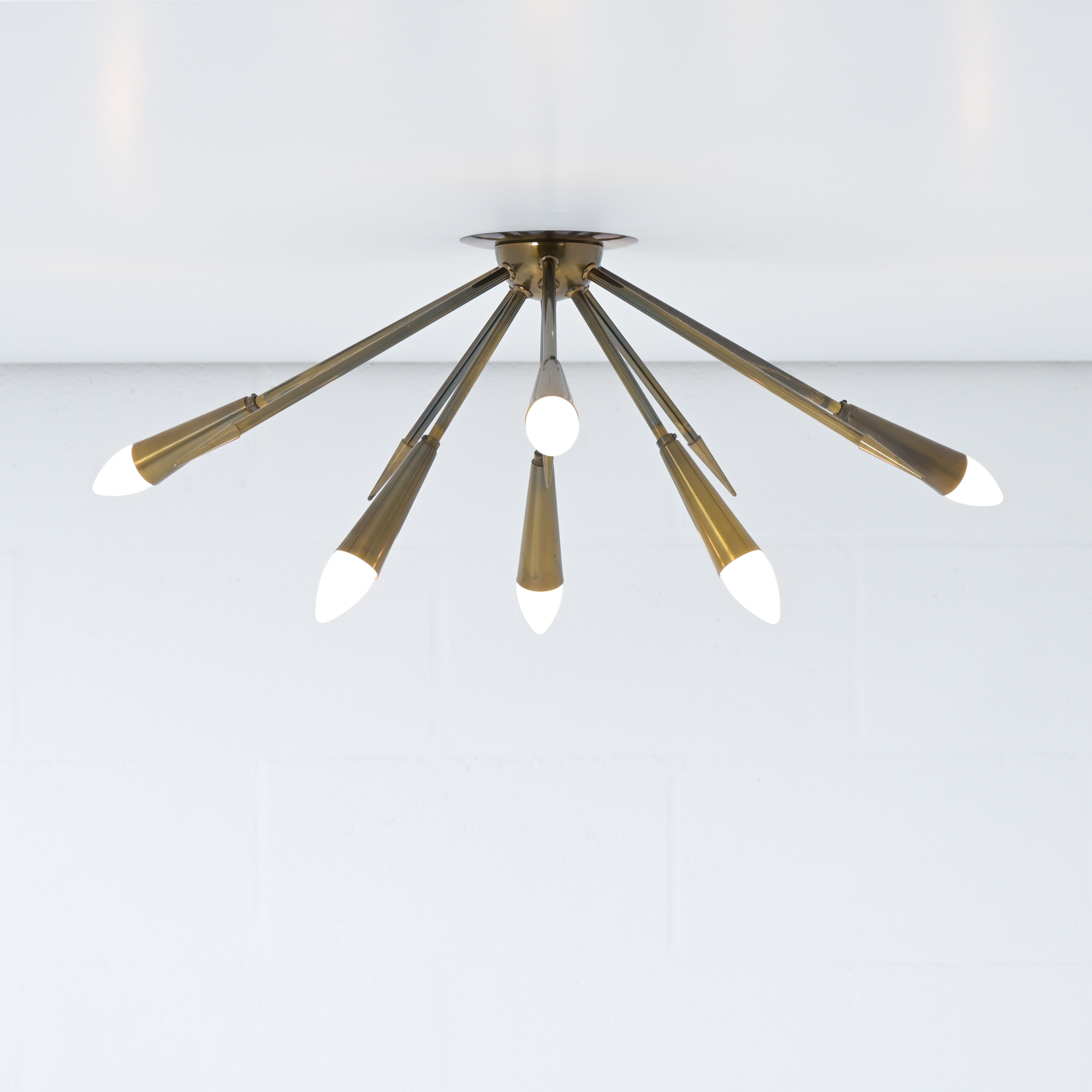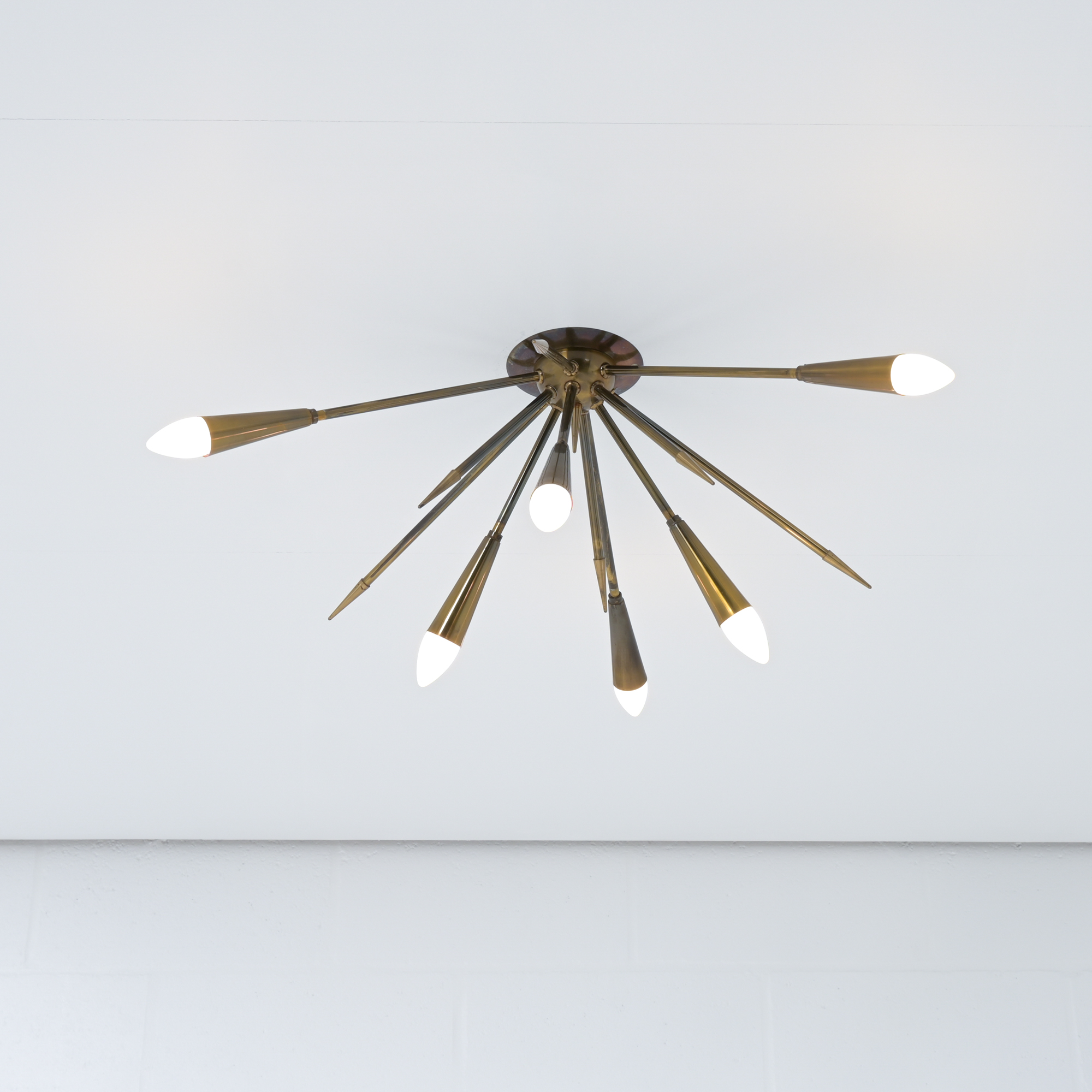 In contrast to some other sputnik chandeliers, this lamp shows more as a ceiling lamp, being mounted directly on the ceiling. It is also possible to mount as a wall light.