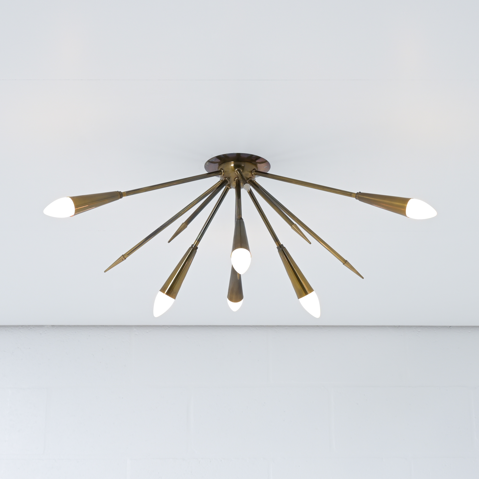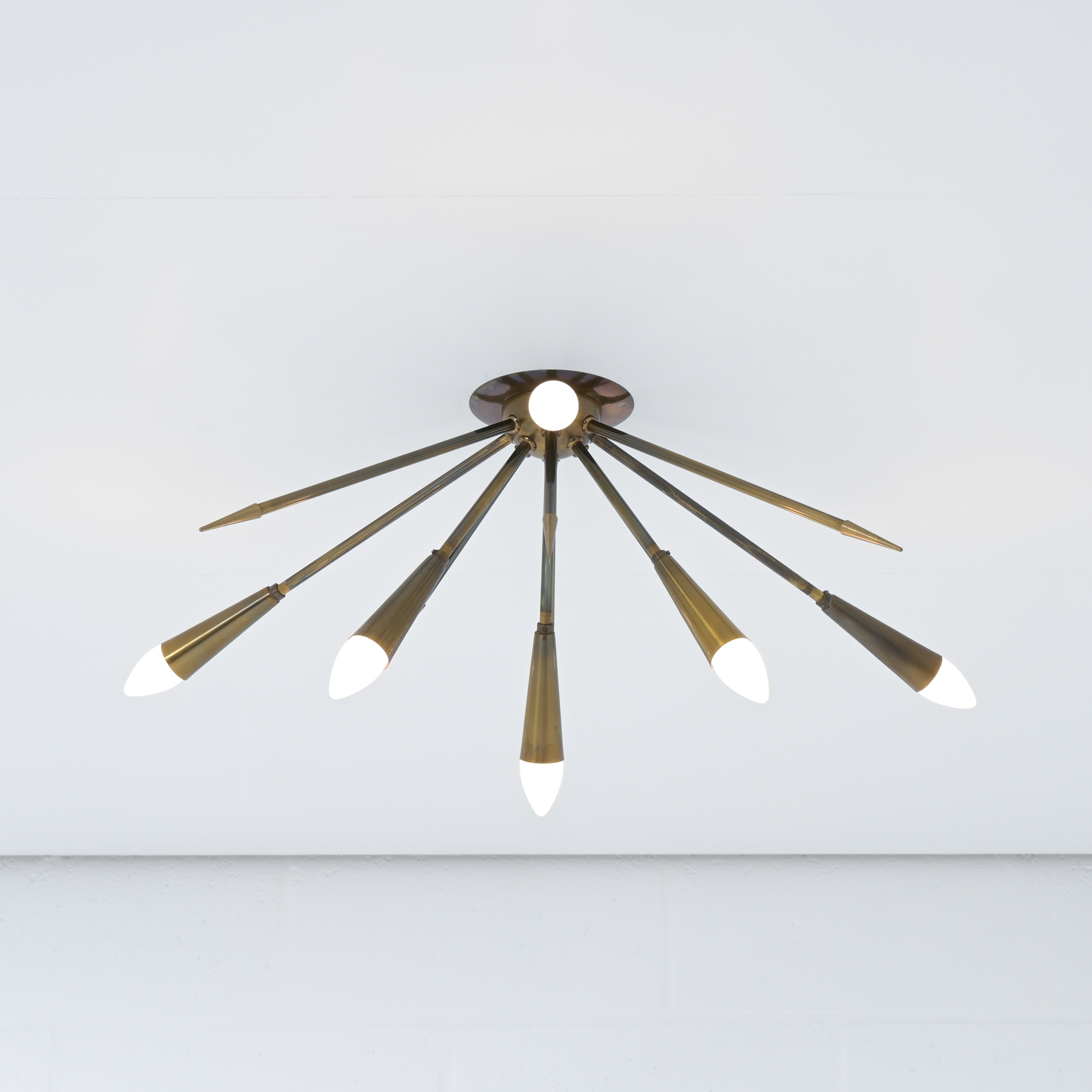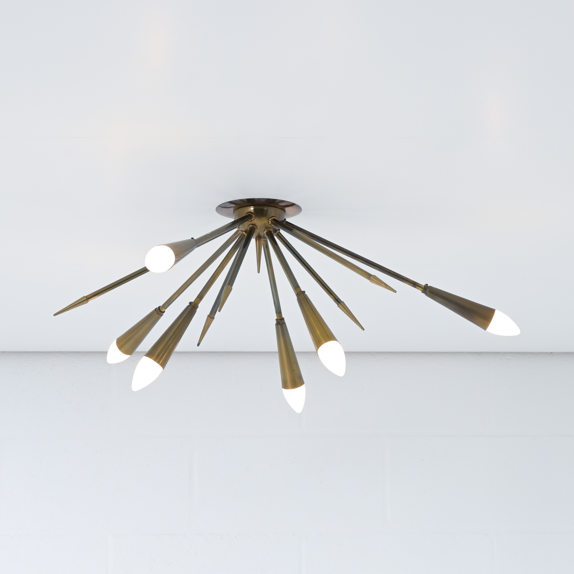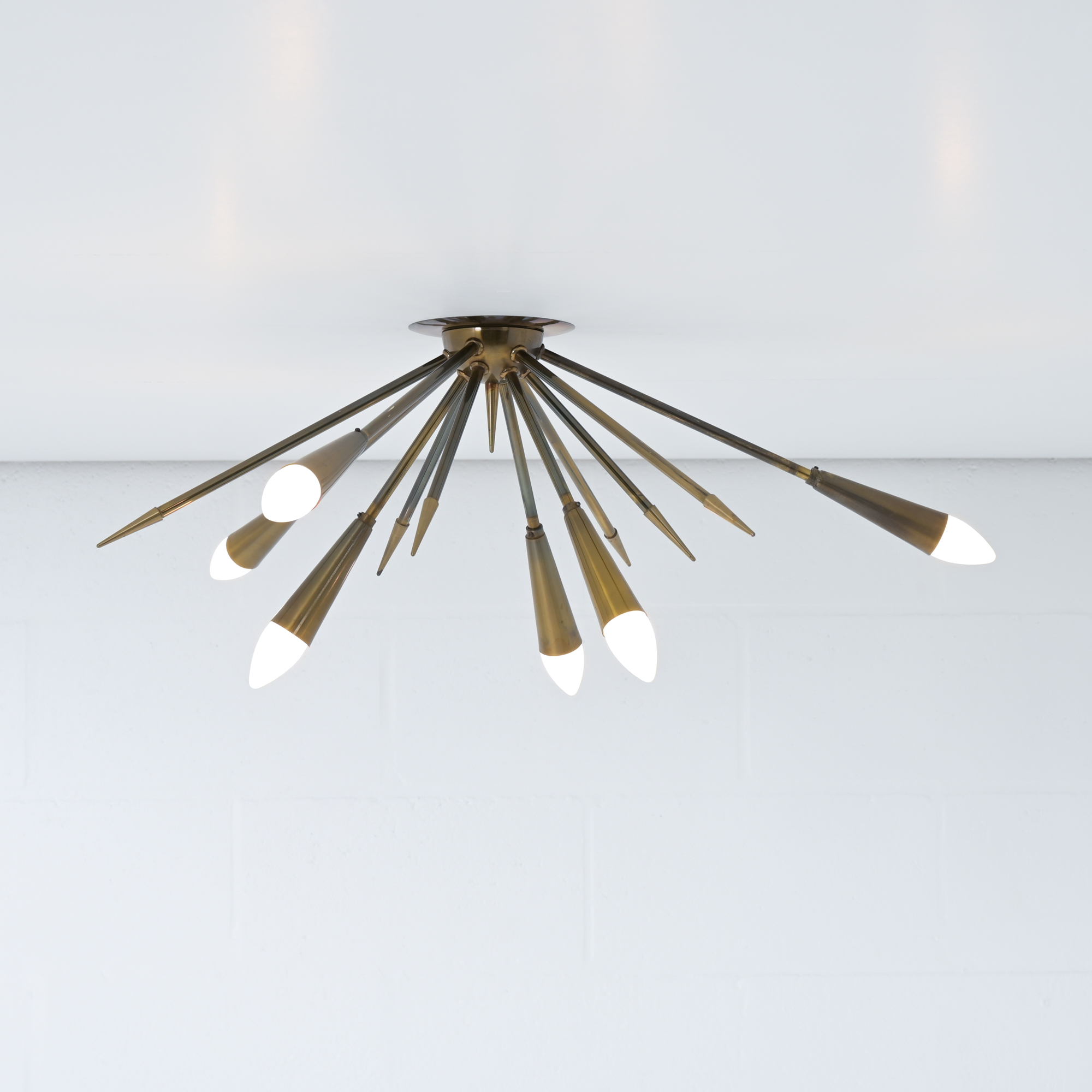 In contrast to some other sputnik chandeliers, this lamp shows more as a ceiling lamp, being mounted directly on the ceiling. It is also possible to mount as a wall light.