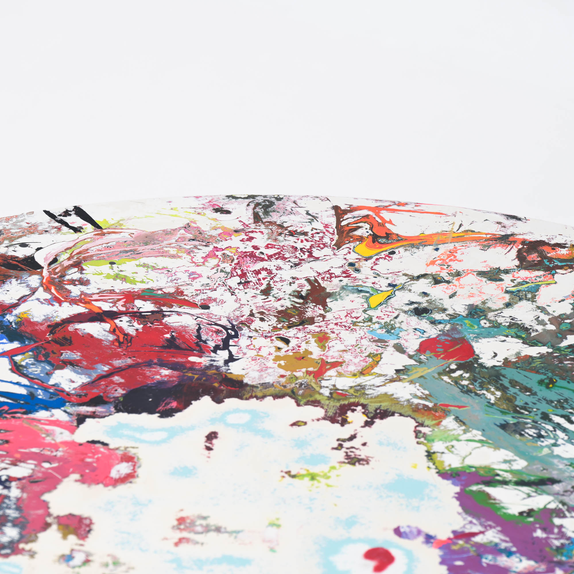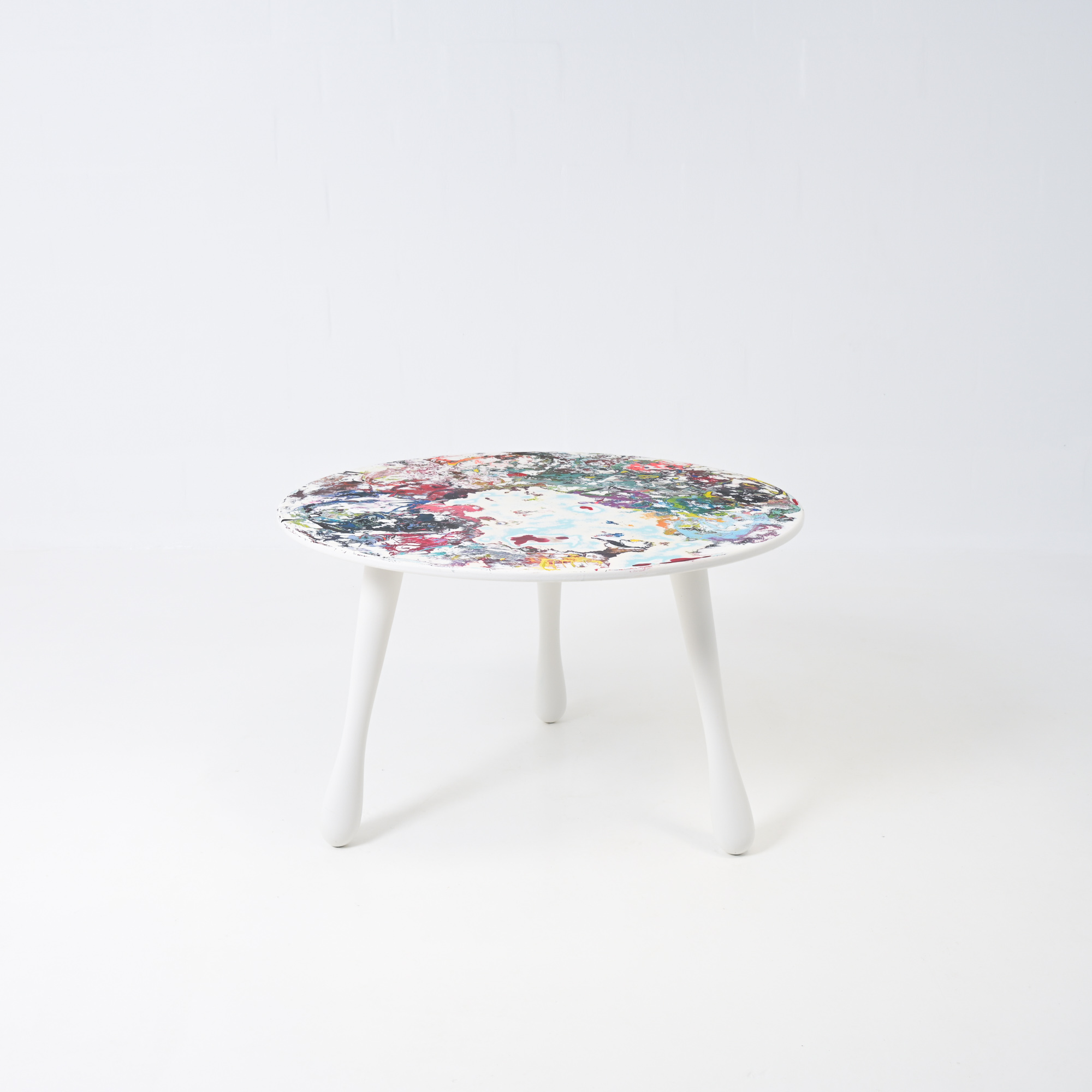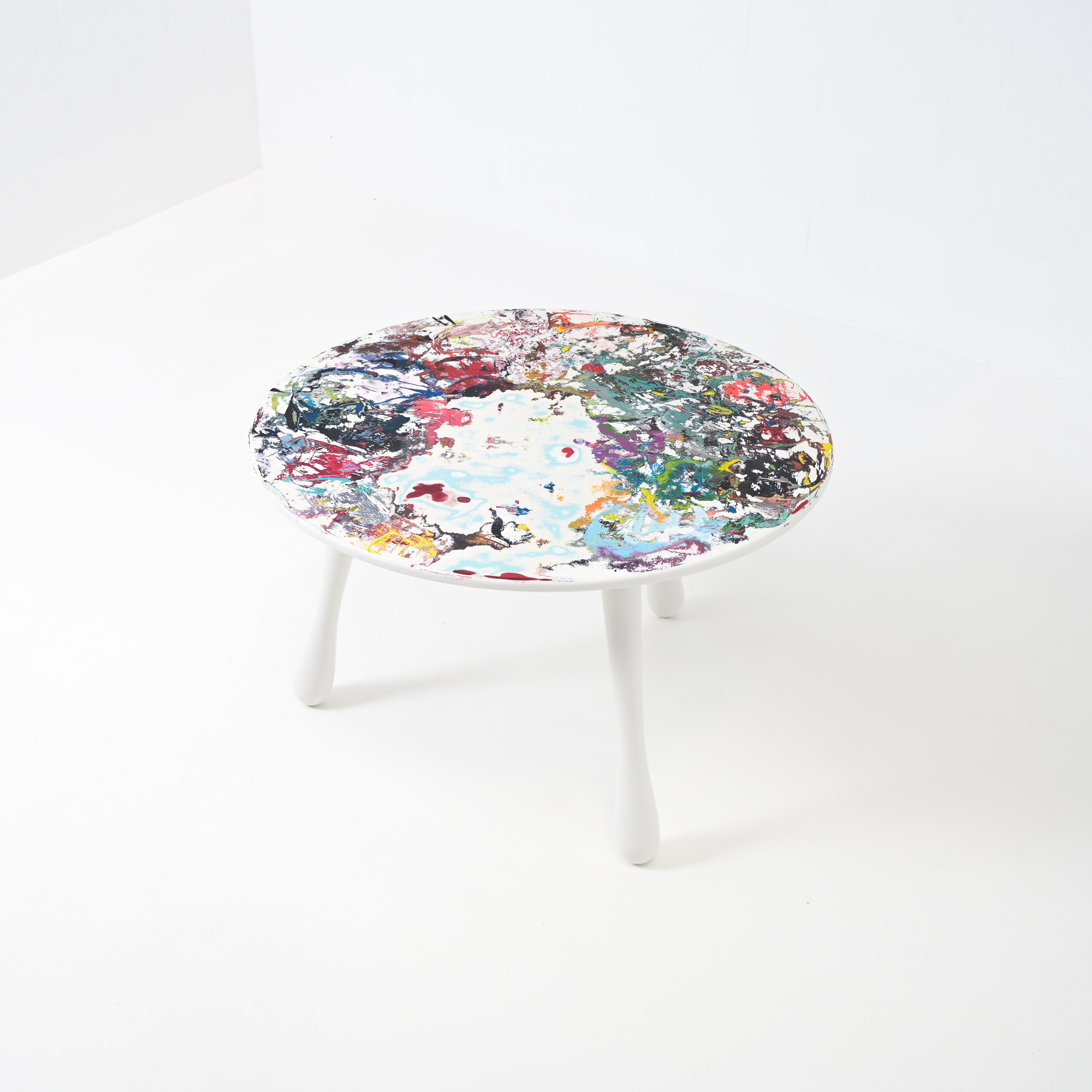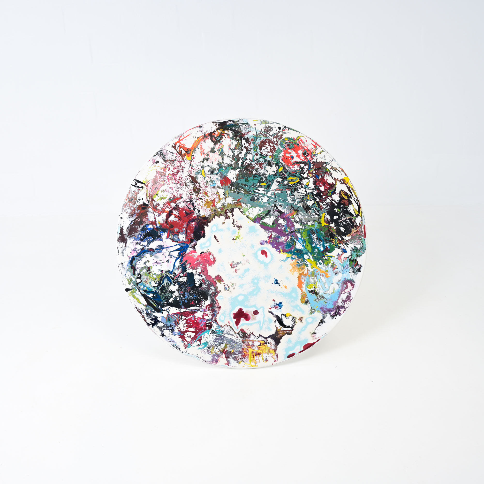 This dining table was used by Hans Weyers as his painter’s palette. The different colors were first covered with white paint. Currently the table has been sanded to reflect the different colors and at the same time it shows the different layers of time.