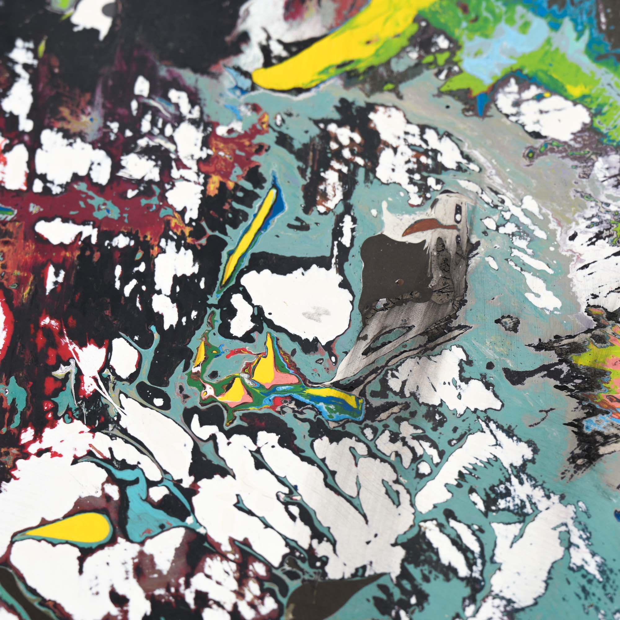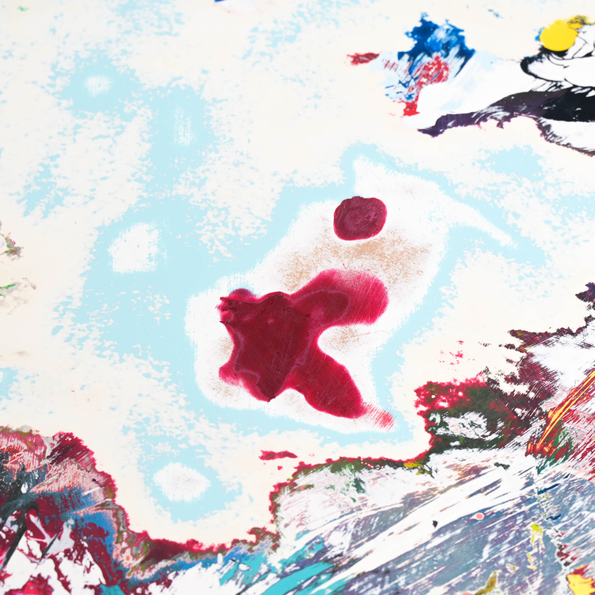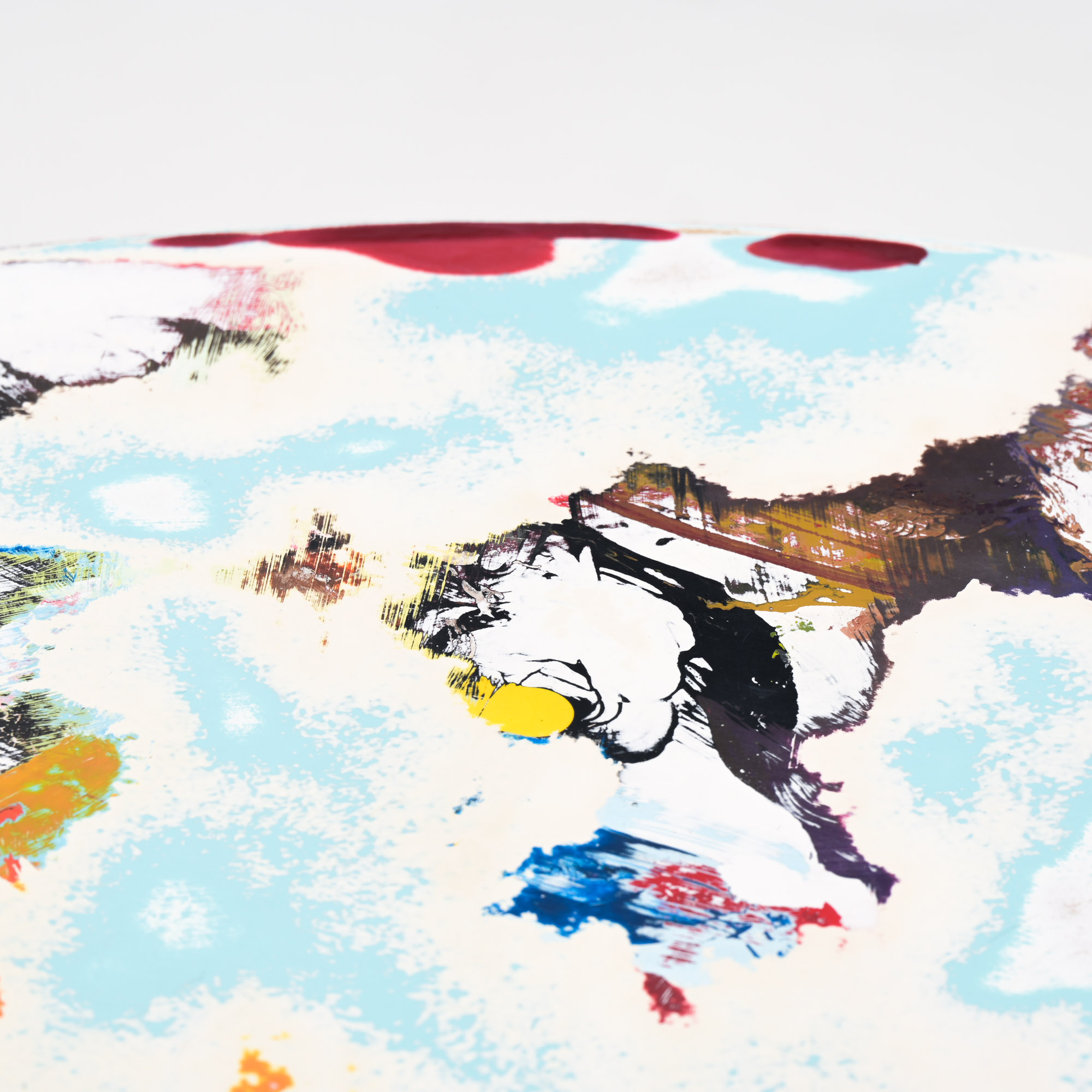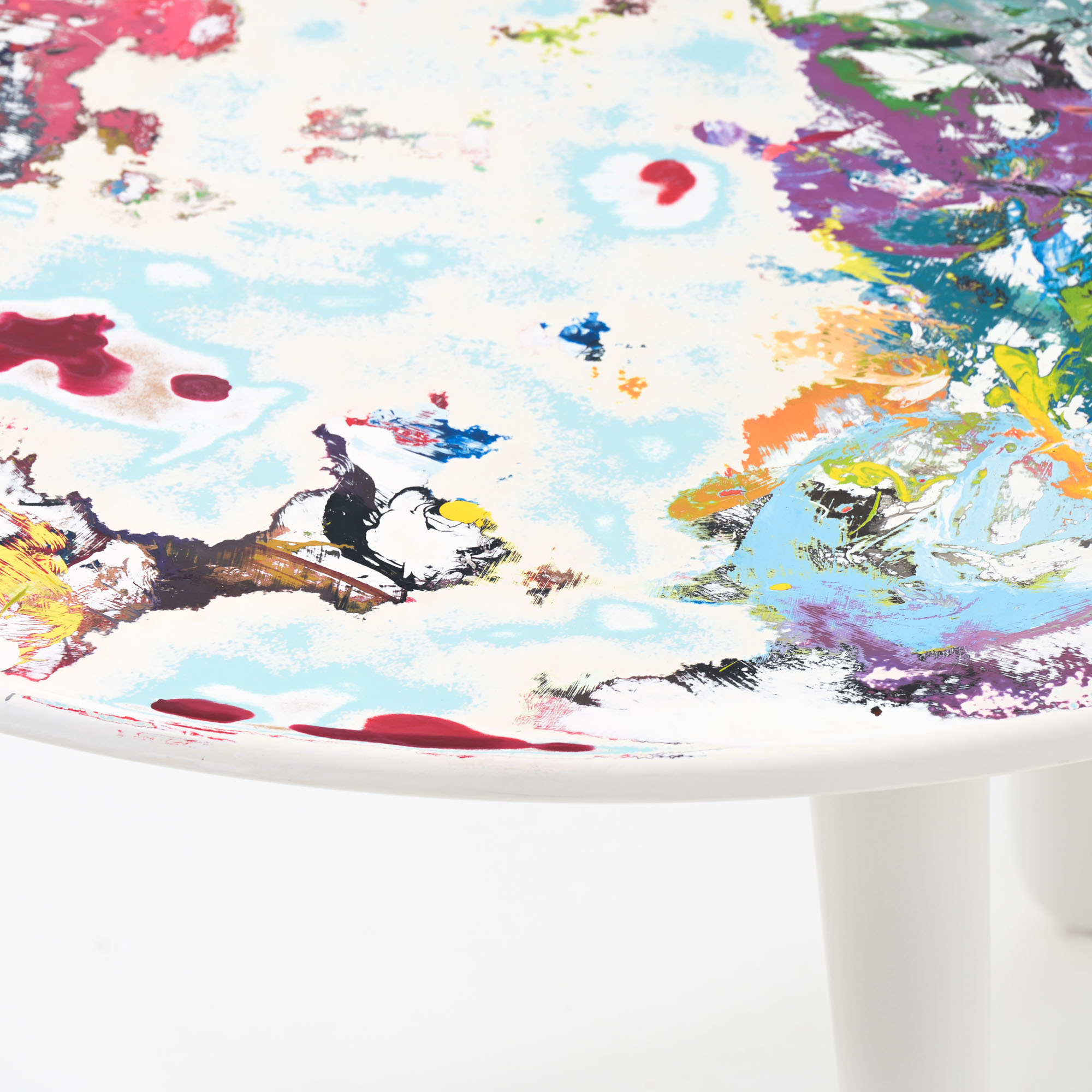 This dining table was used by Hans Weyers as his painter’s palette. The different colors were first covered with white paint. Currently the table has been sanded to reflect the different colors and at the same time it shows the different layers of time.