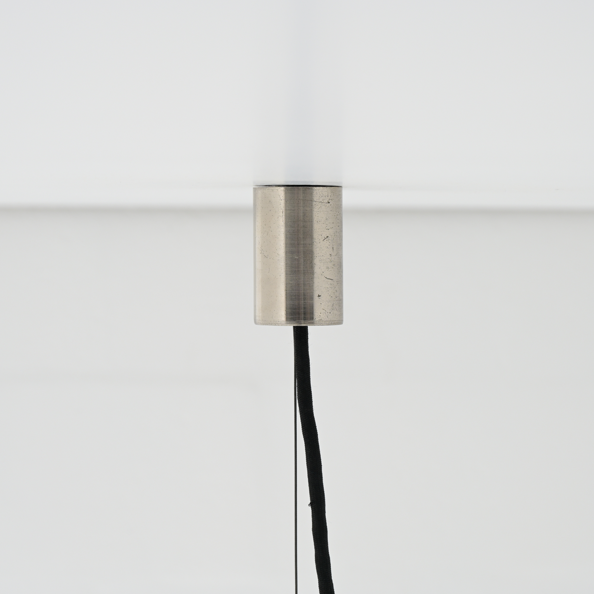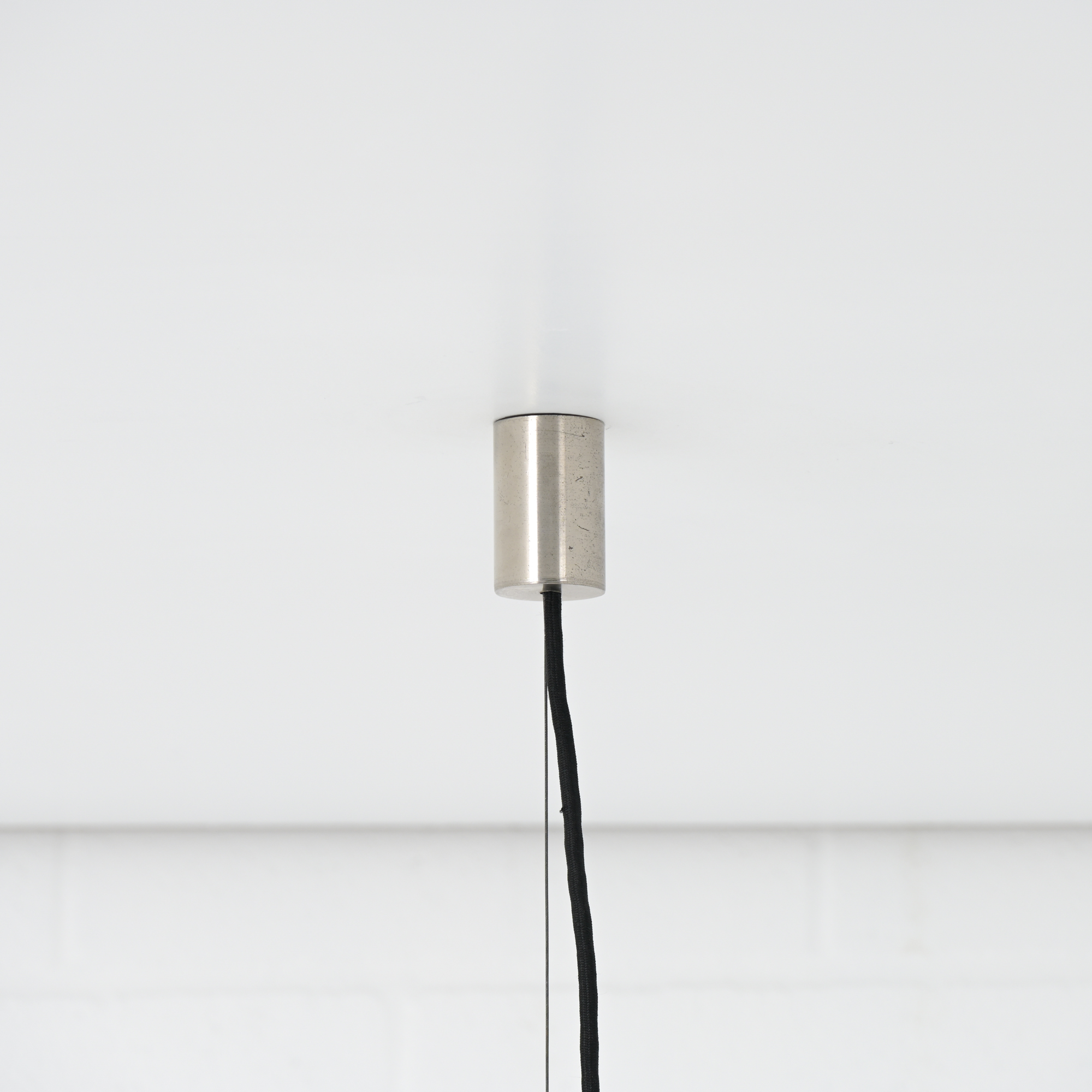 Currently, the lamp hangs at a distance of around 30 cm from the ceiling; however, we can replace the cable to potentially elongate it if required.