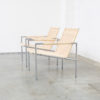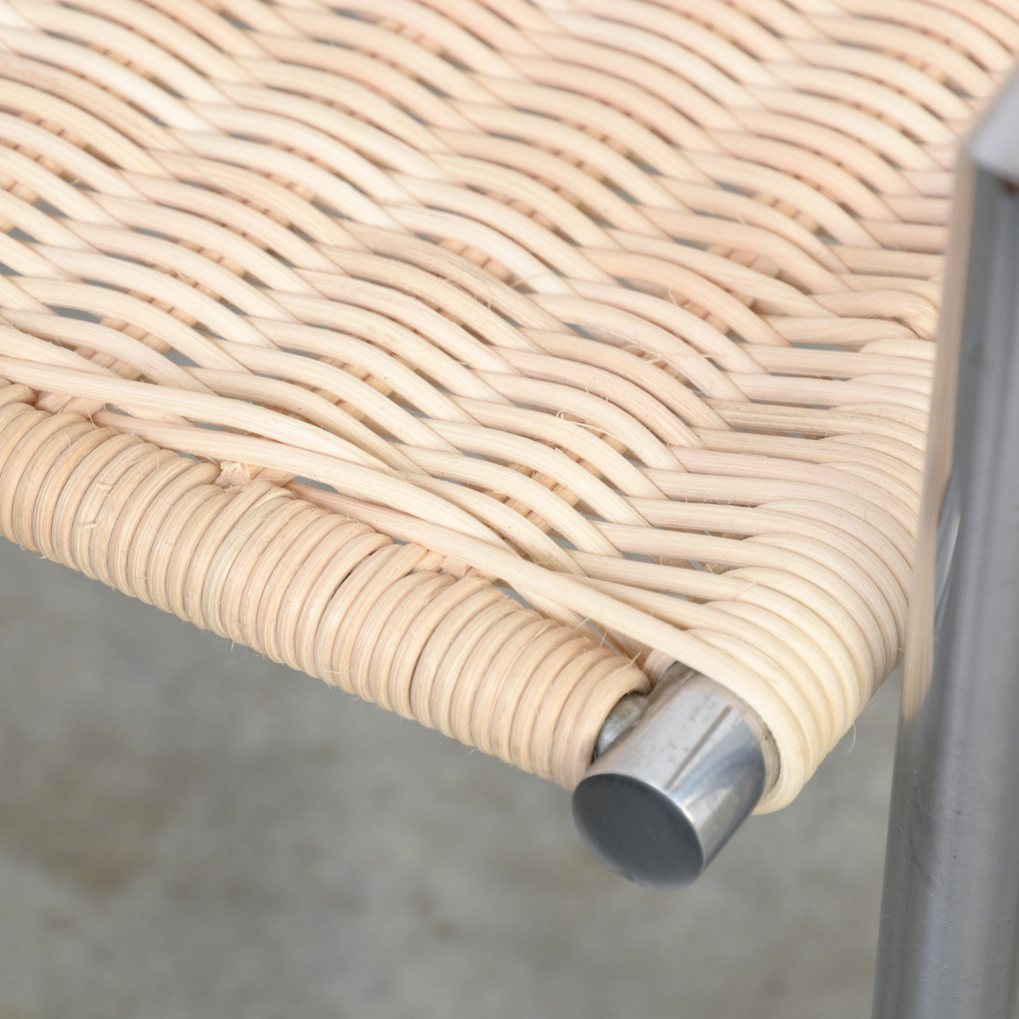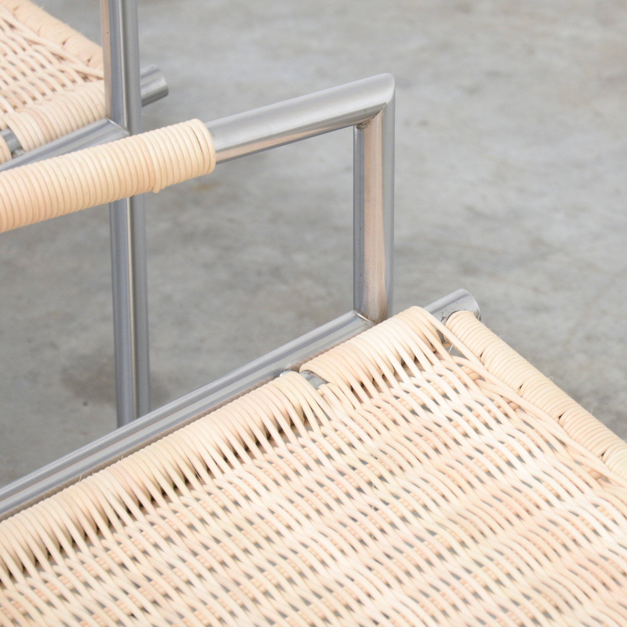 The frame is made of brushed tubular steel. The seat, back and armrests are made of woven wicker. The original wicker was to damaged and so we let professionaly renew. Bothe chairs are in very good condition.