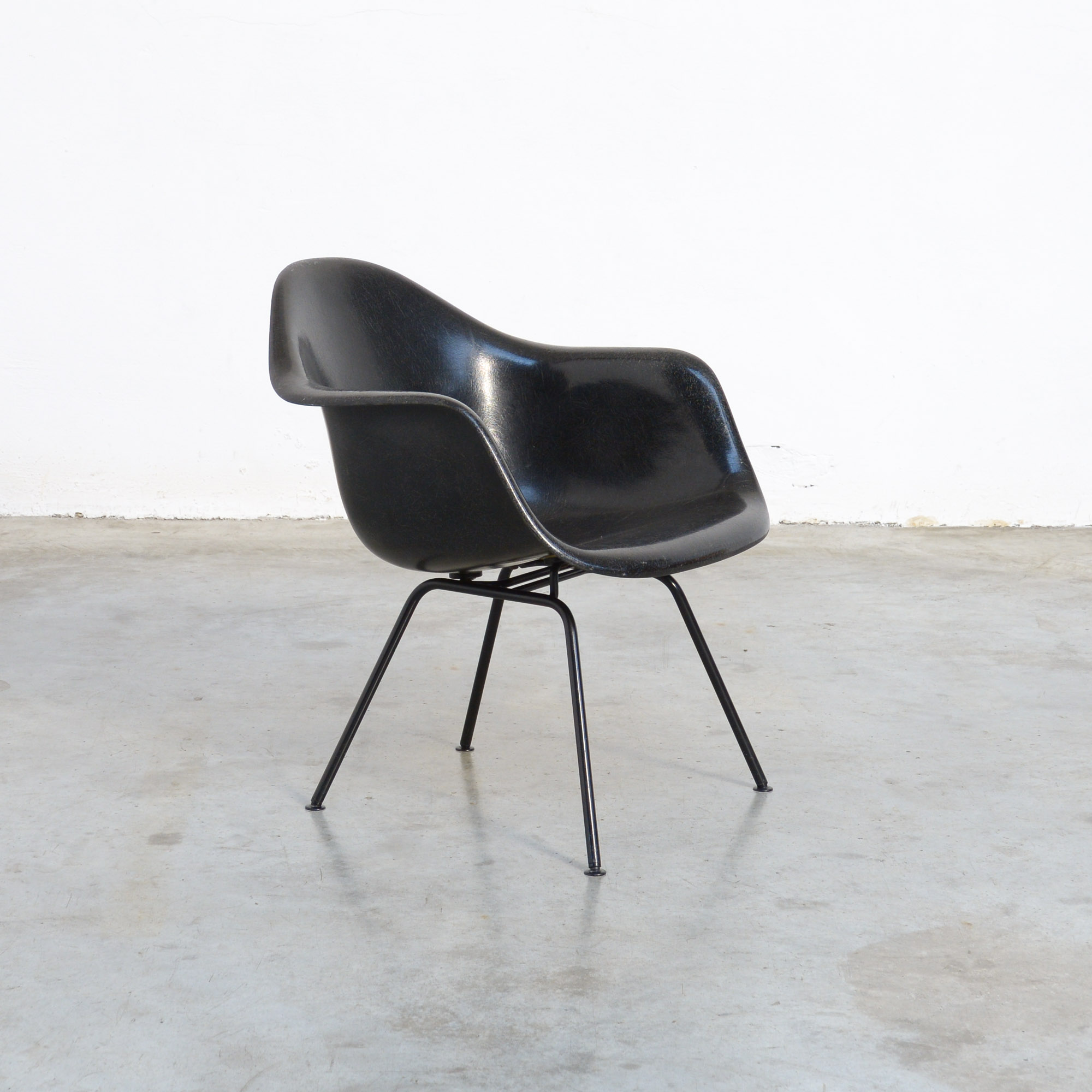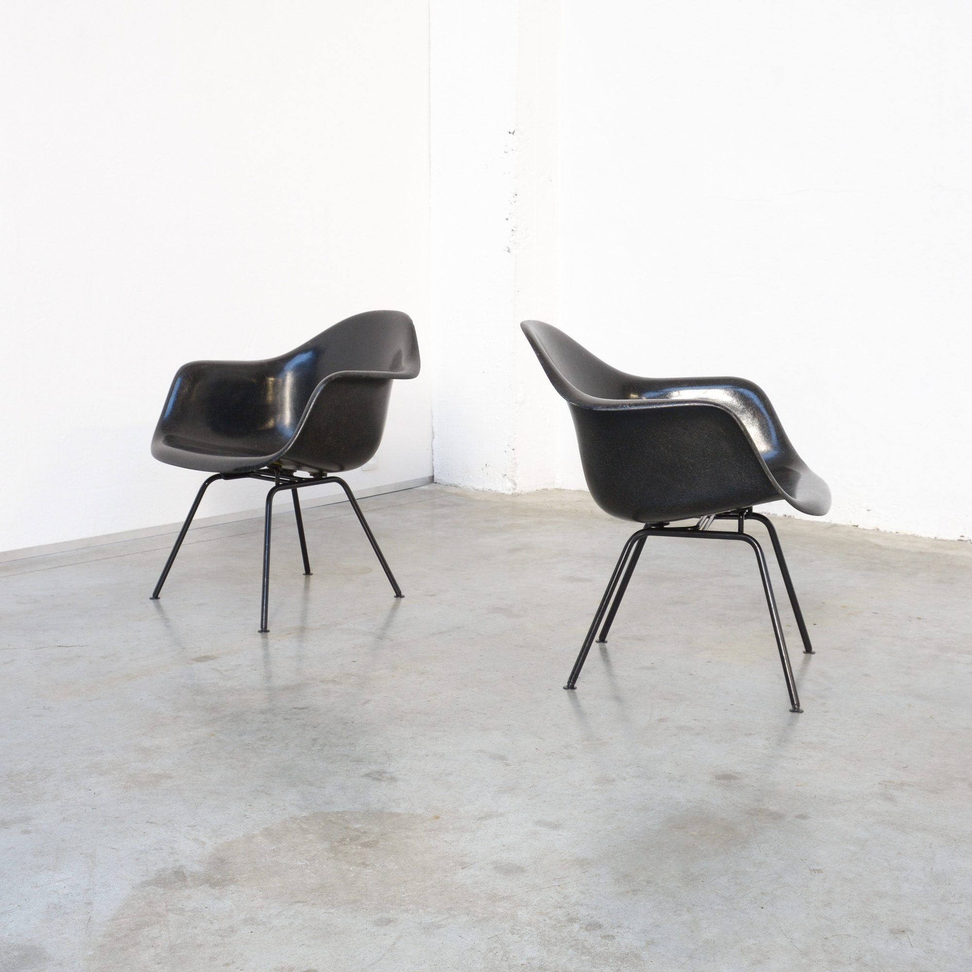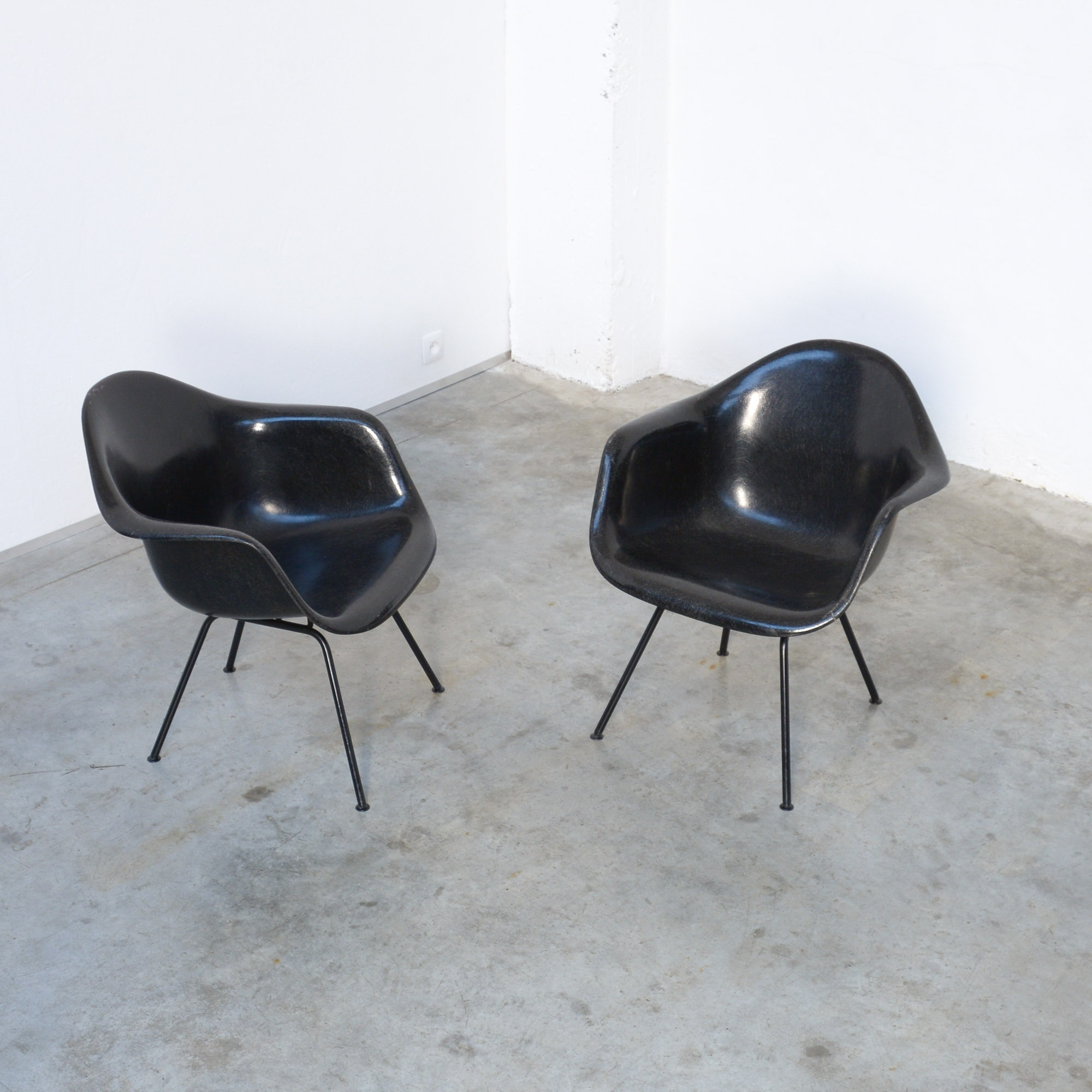 These Mid-Century design icons are made of black fiberglass on a black lacquered metal H-base.
