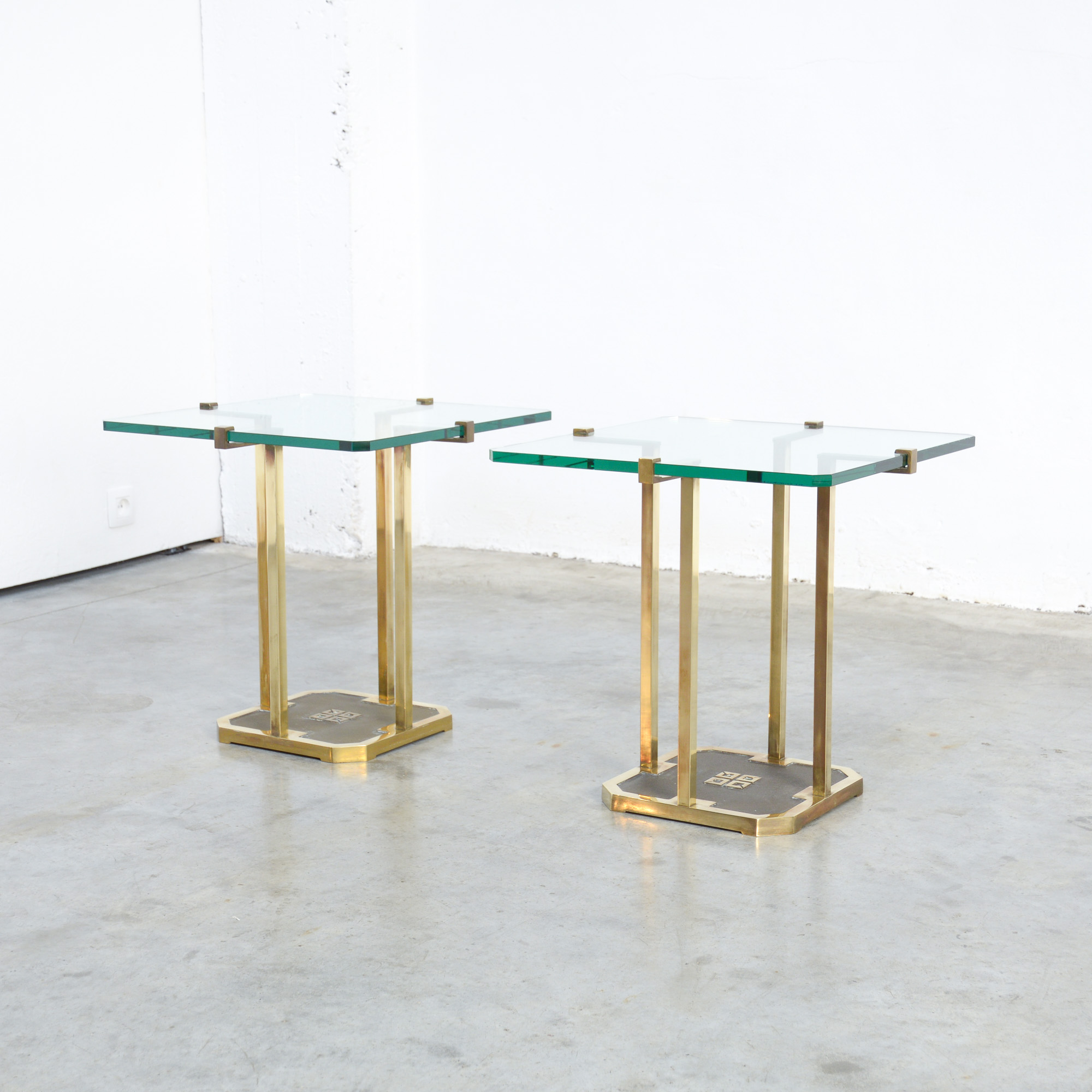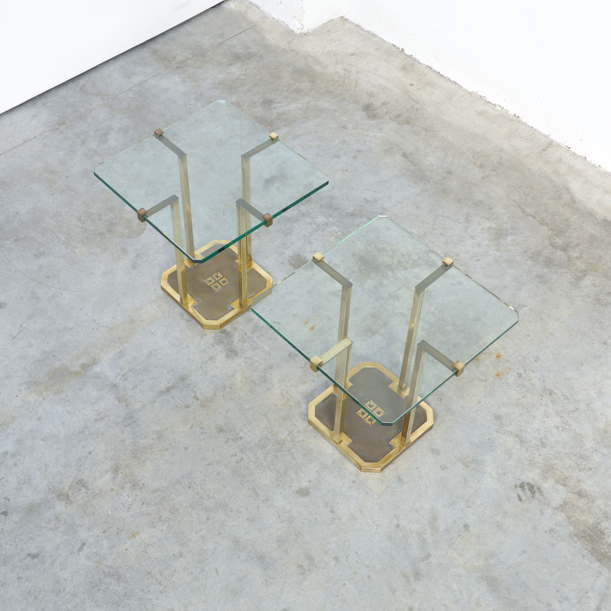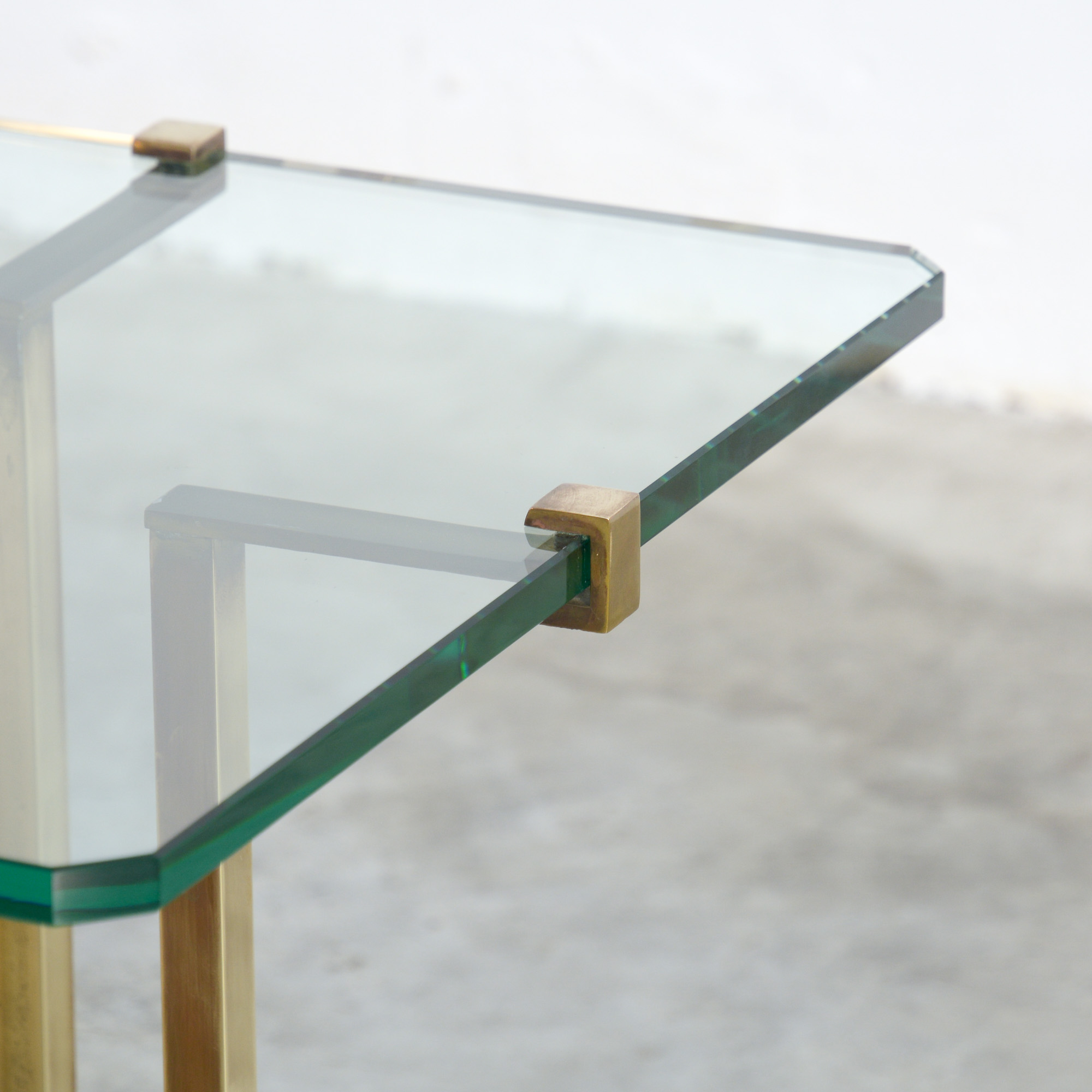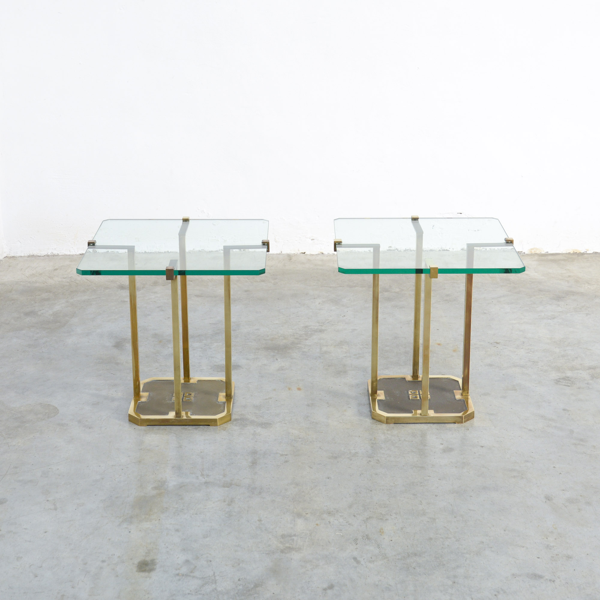 These brass and glass side tables were designed by Peter Ghyczy in the early 1970s in the Netherlands.