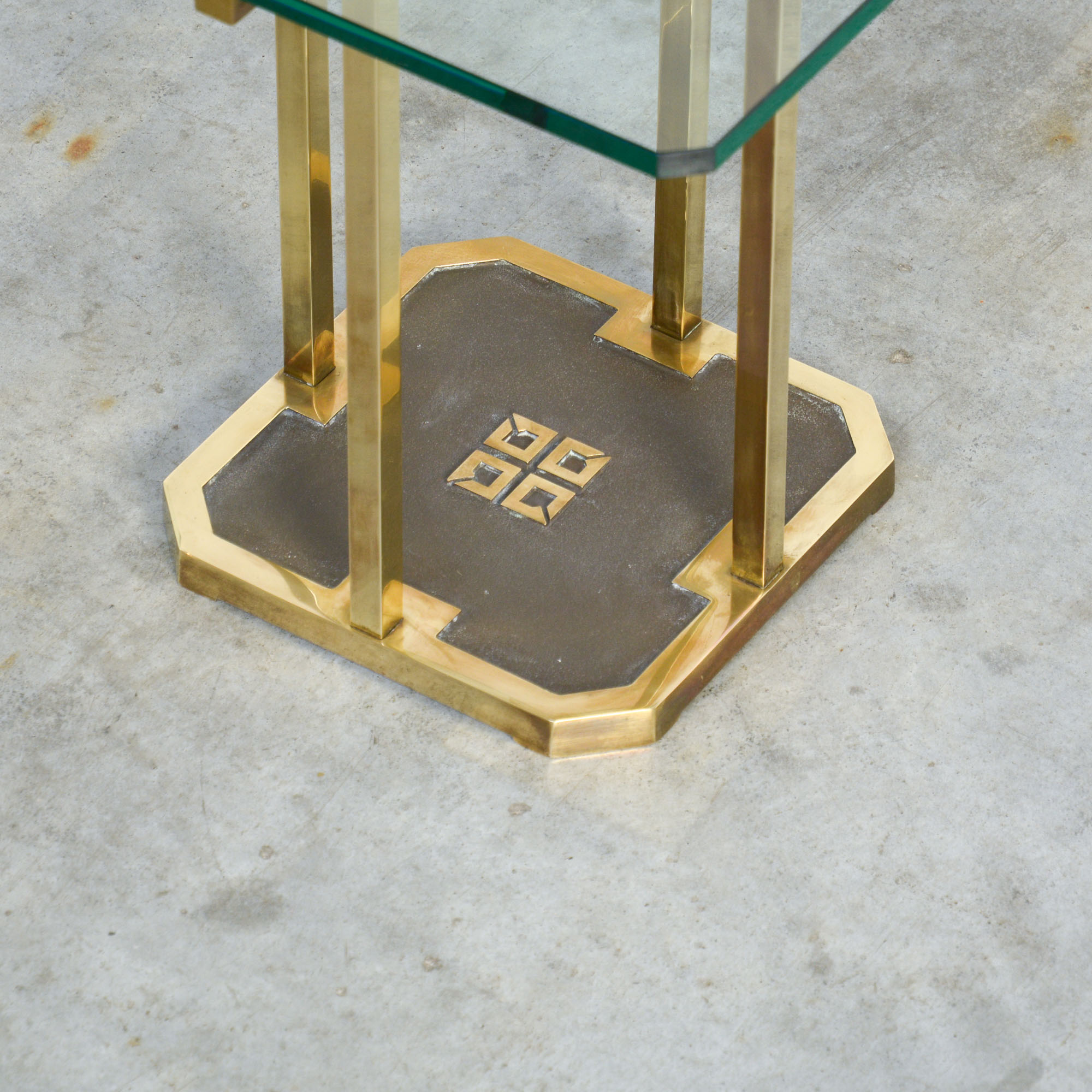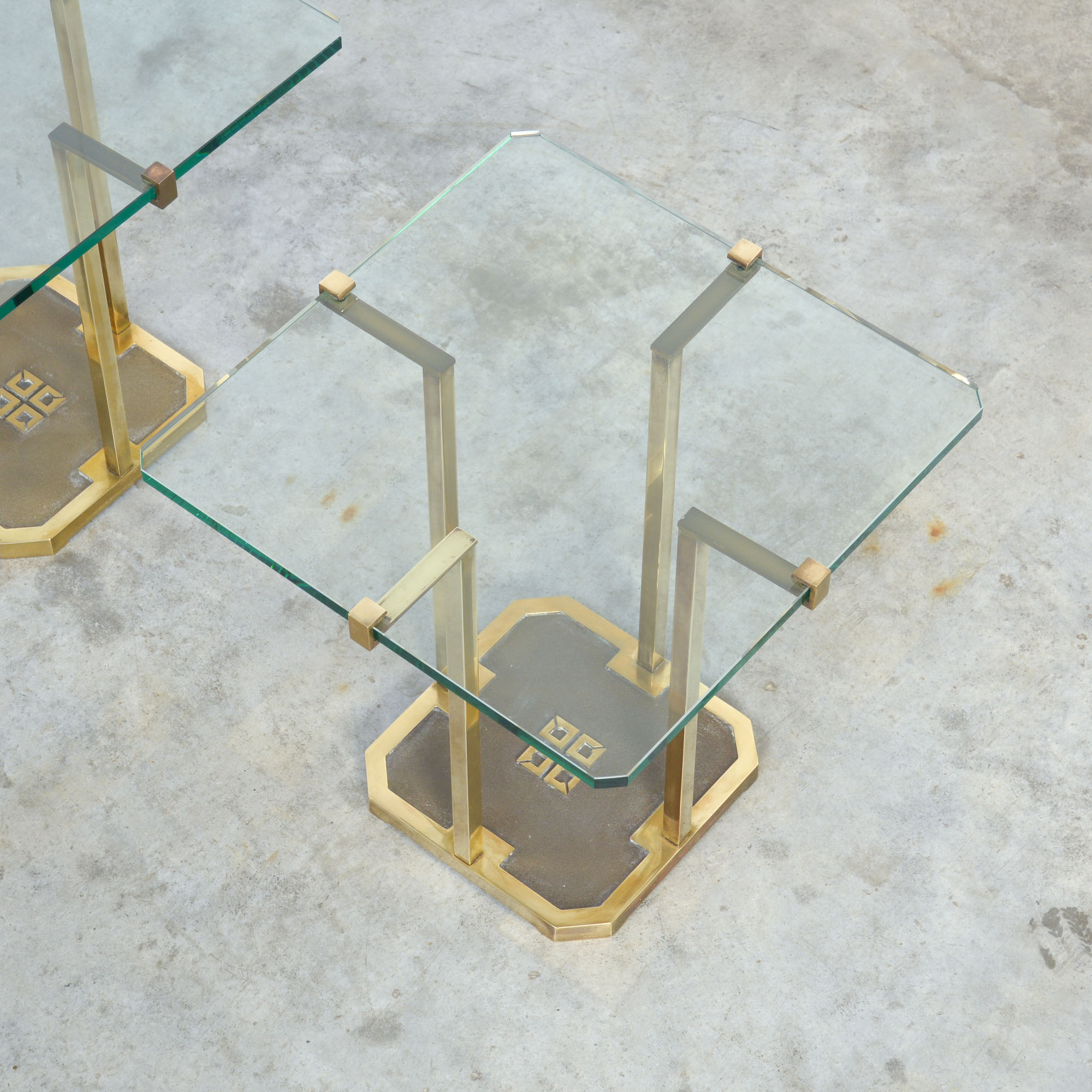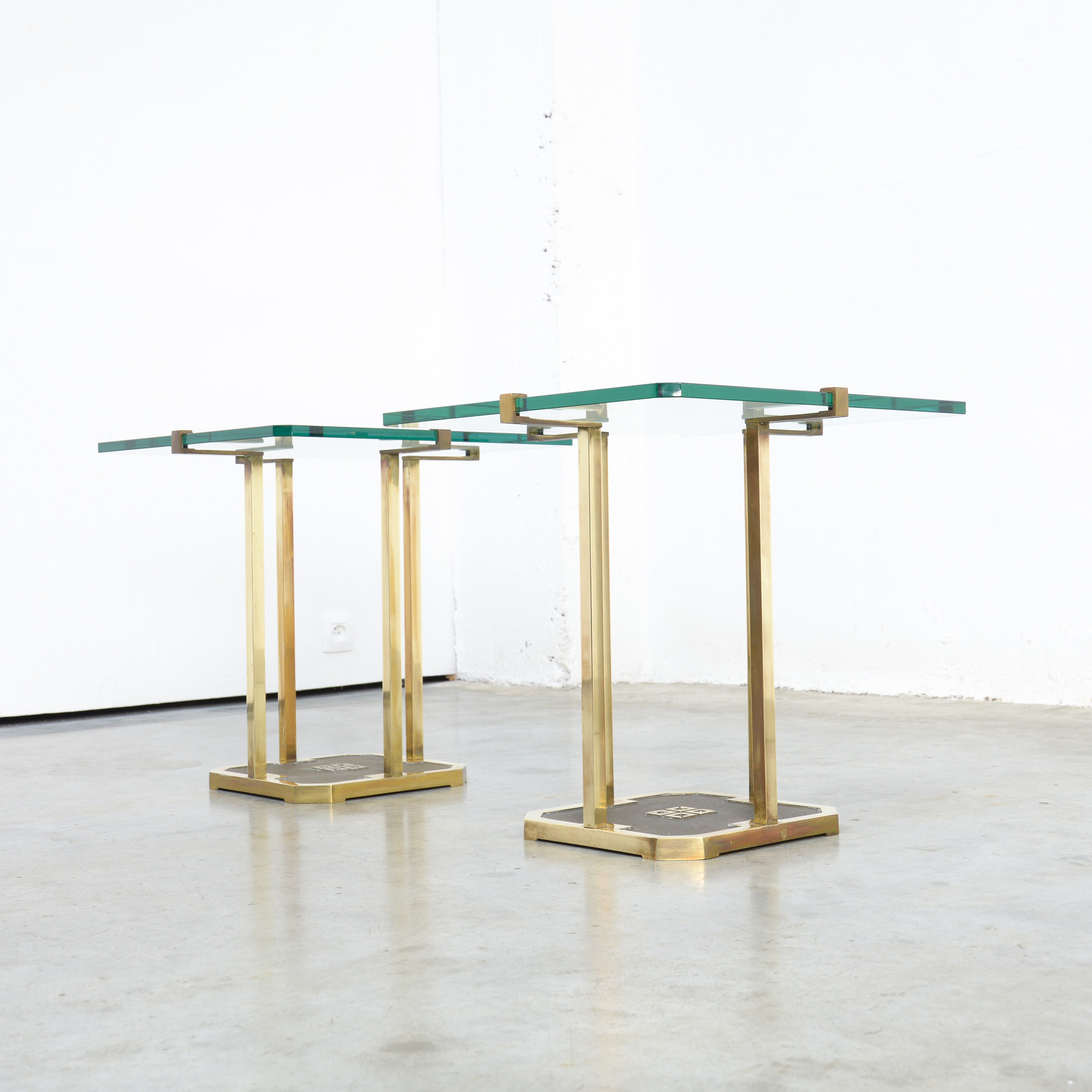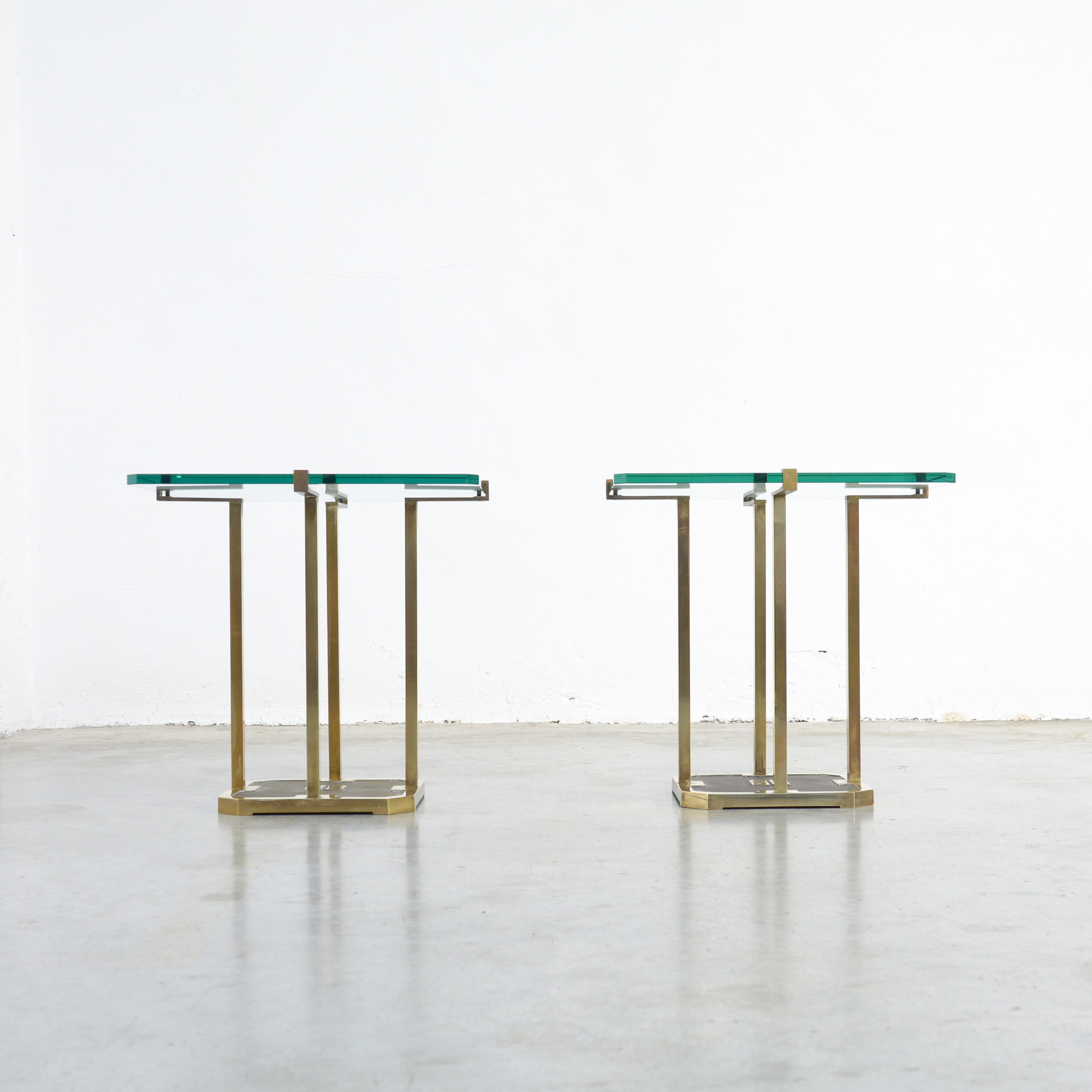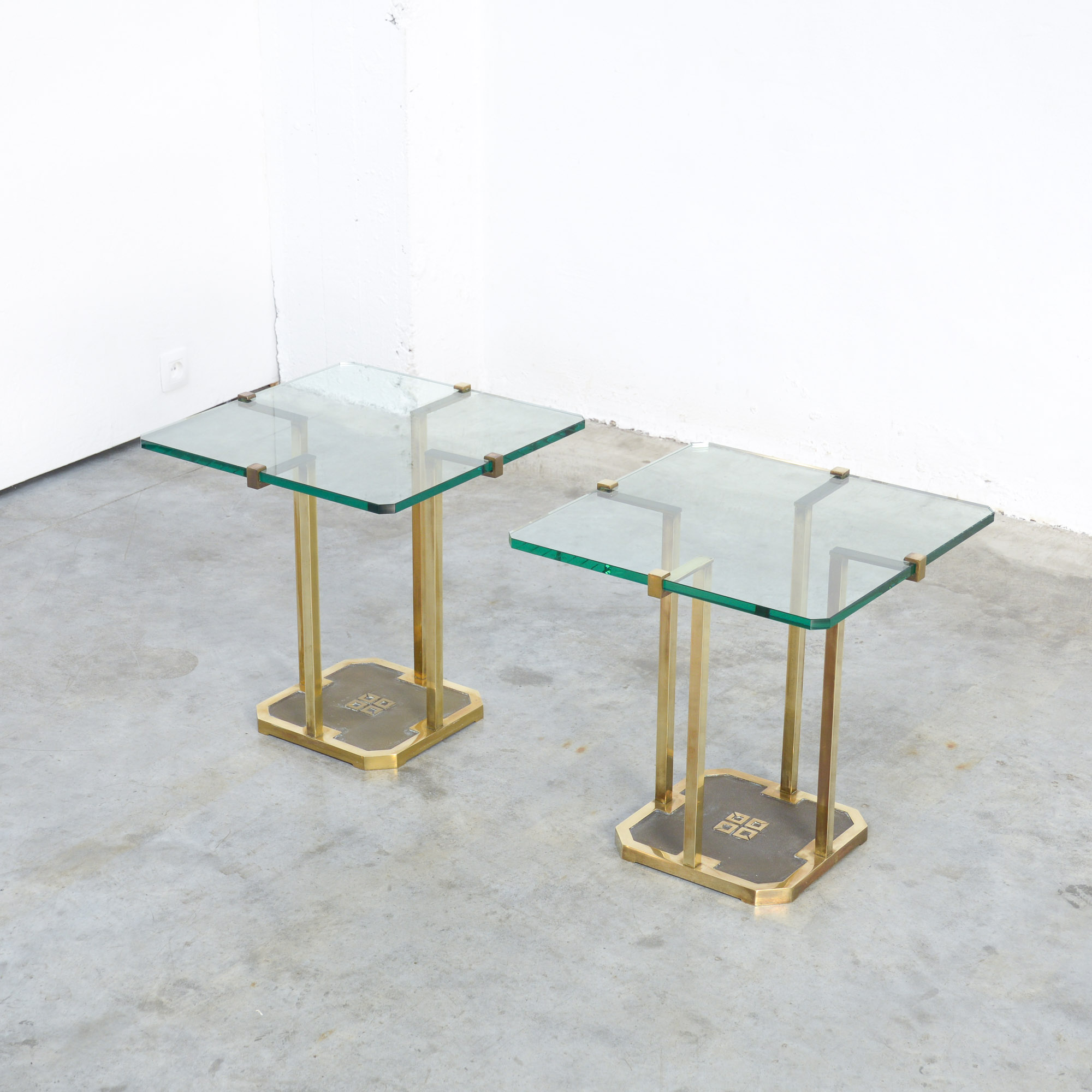 These brass and glass side tables were designed by Peter Ghyczy in the early 1970s in the Netherlands.