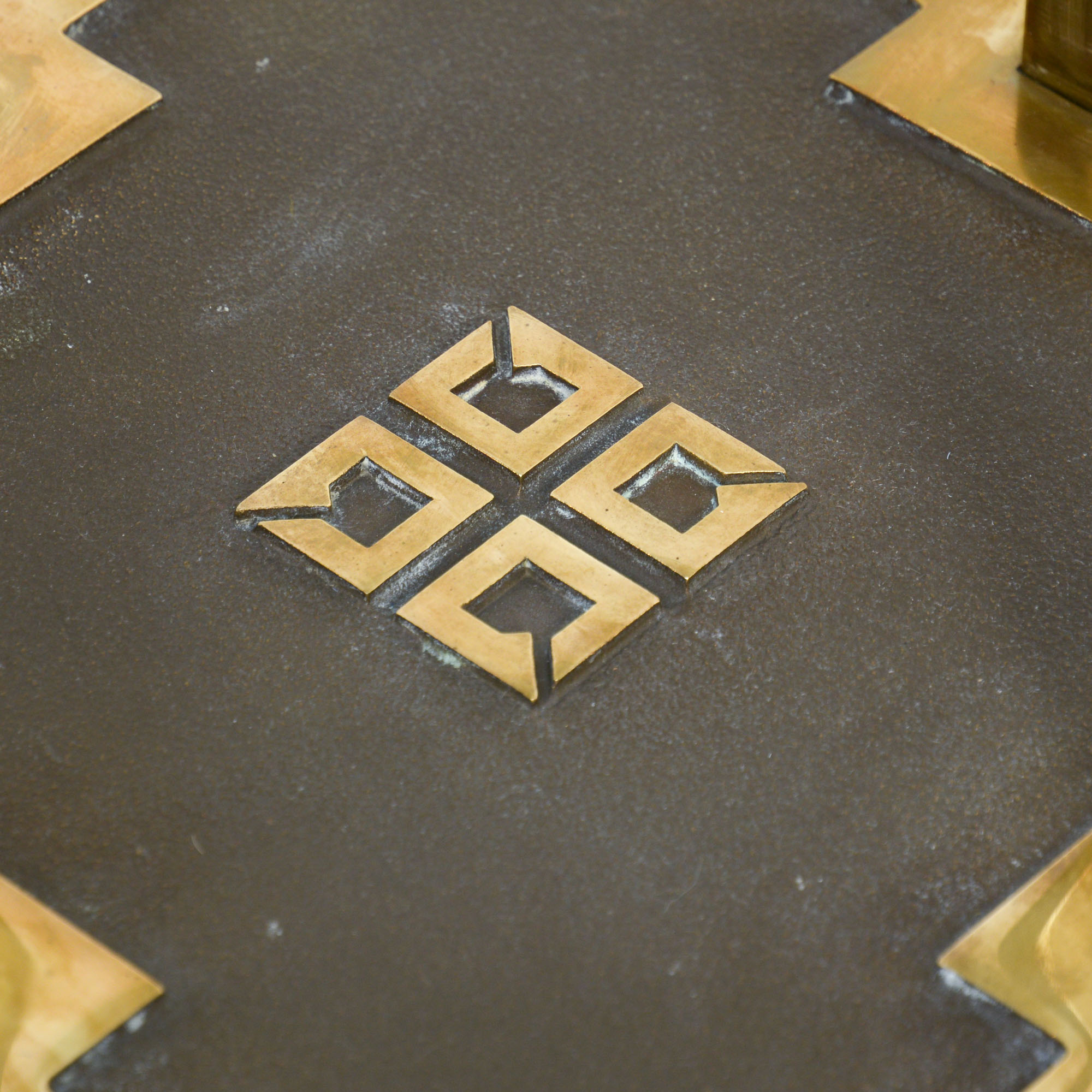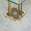 The sand cast base of the side tables, in solid brass, features the Ghyczy logo. Typical for the sand-casting process, small irregularities may exist, even in the polished surface.