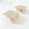 The travertine top rests on a travertine T-shaped base. You can turn the side tables to console tables.