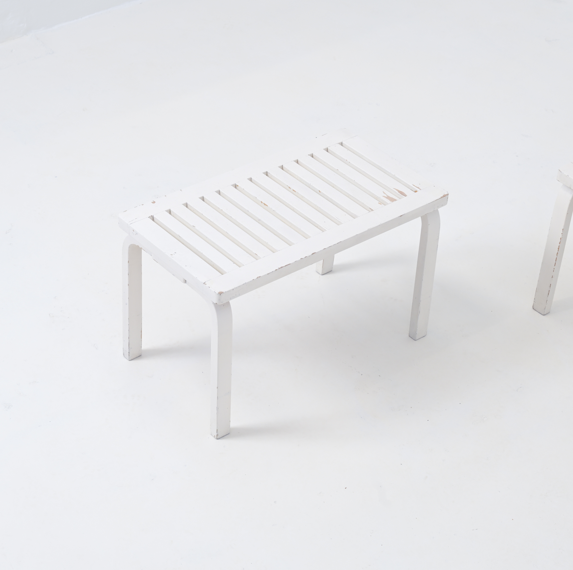 Pair of White Lacquered Benches by Alvar Aalto