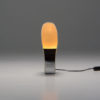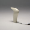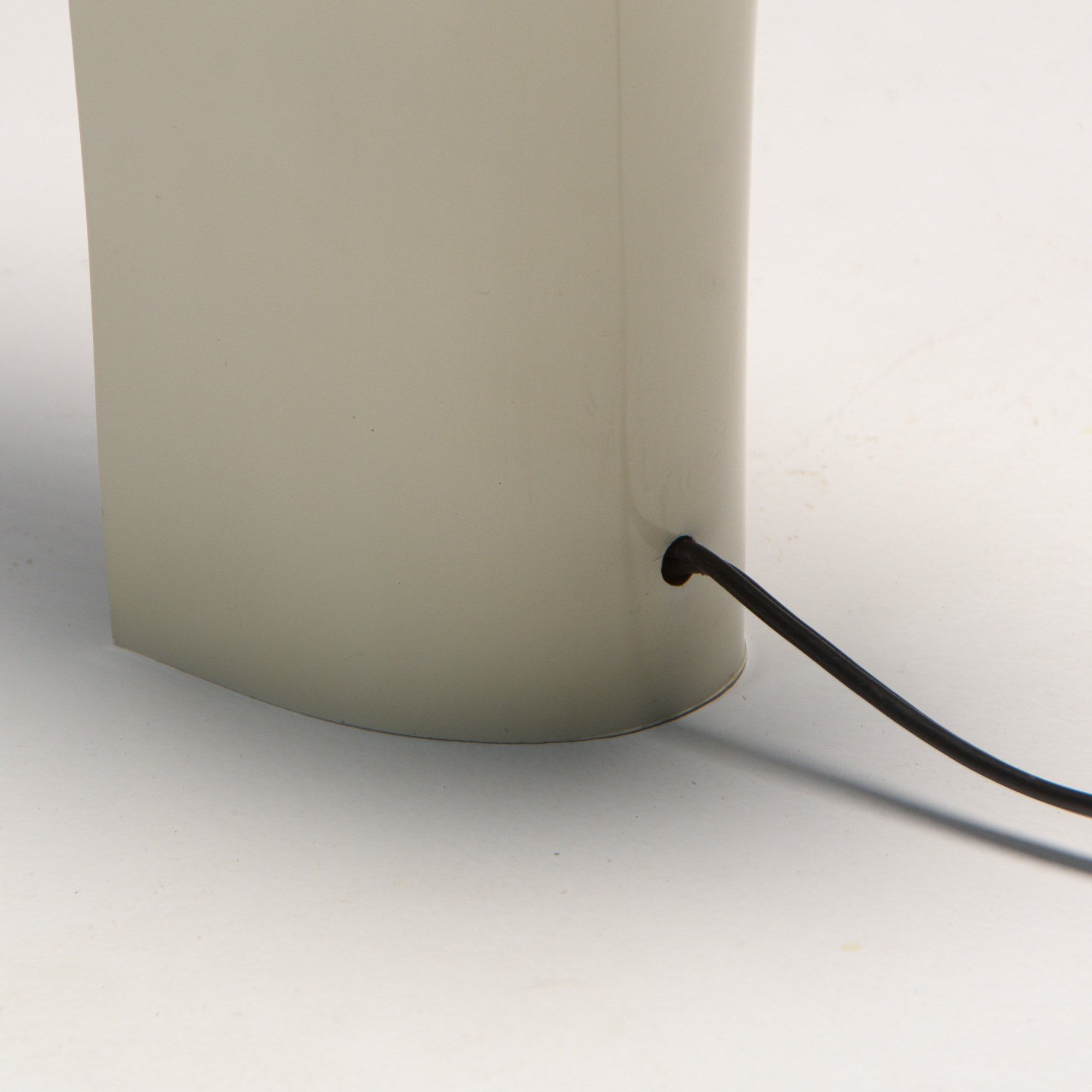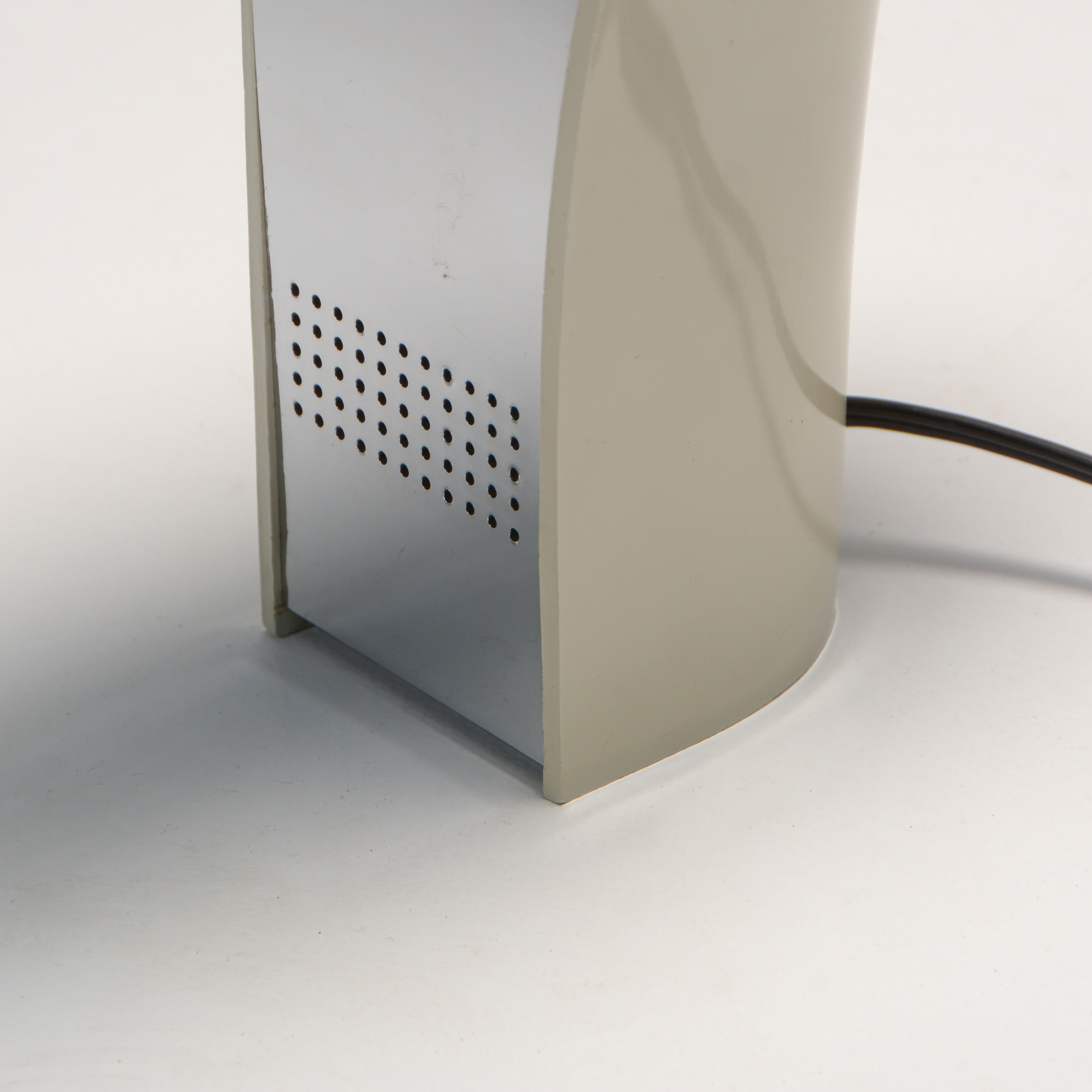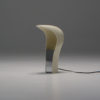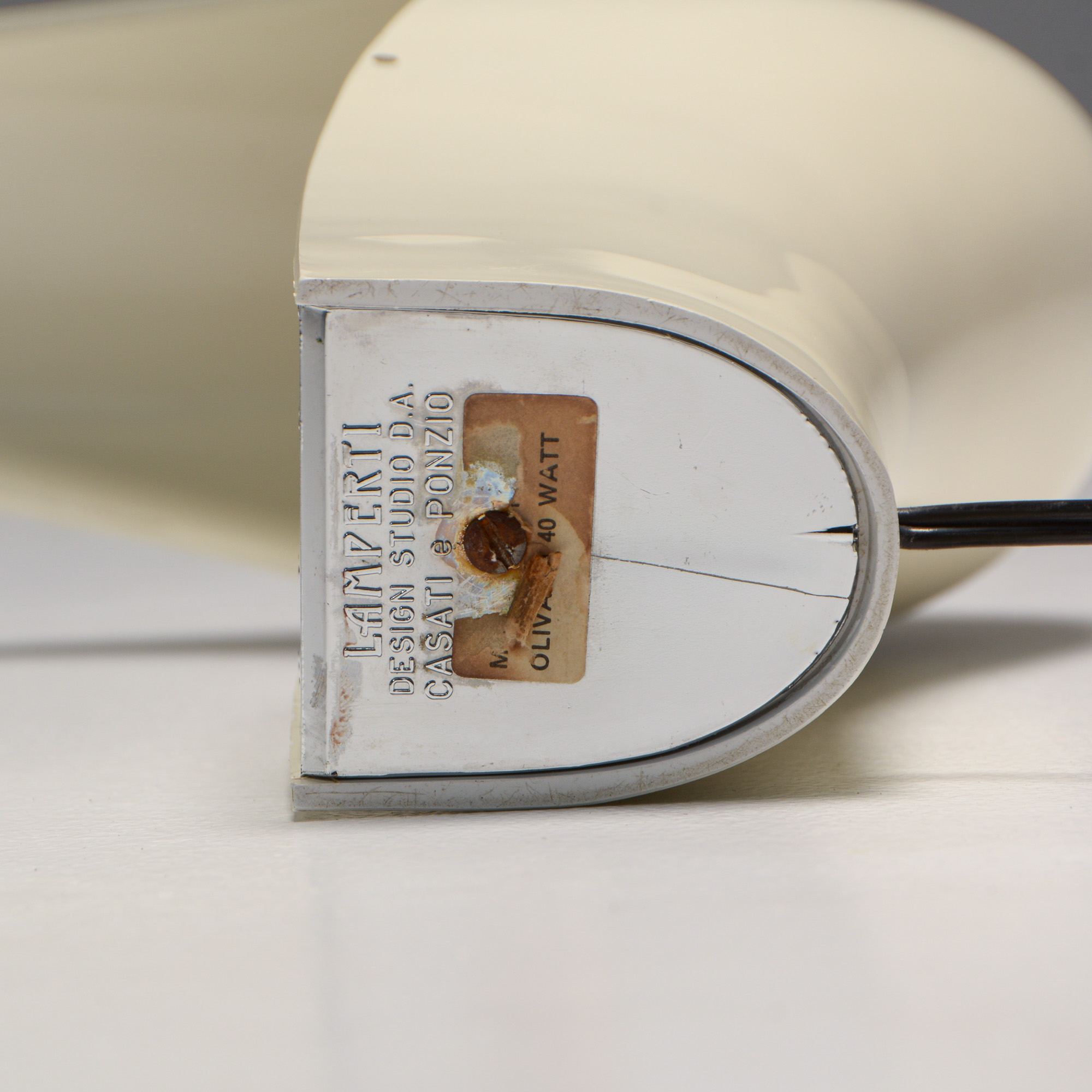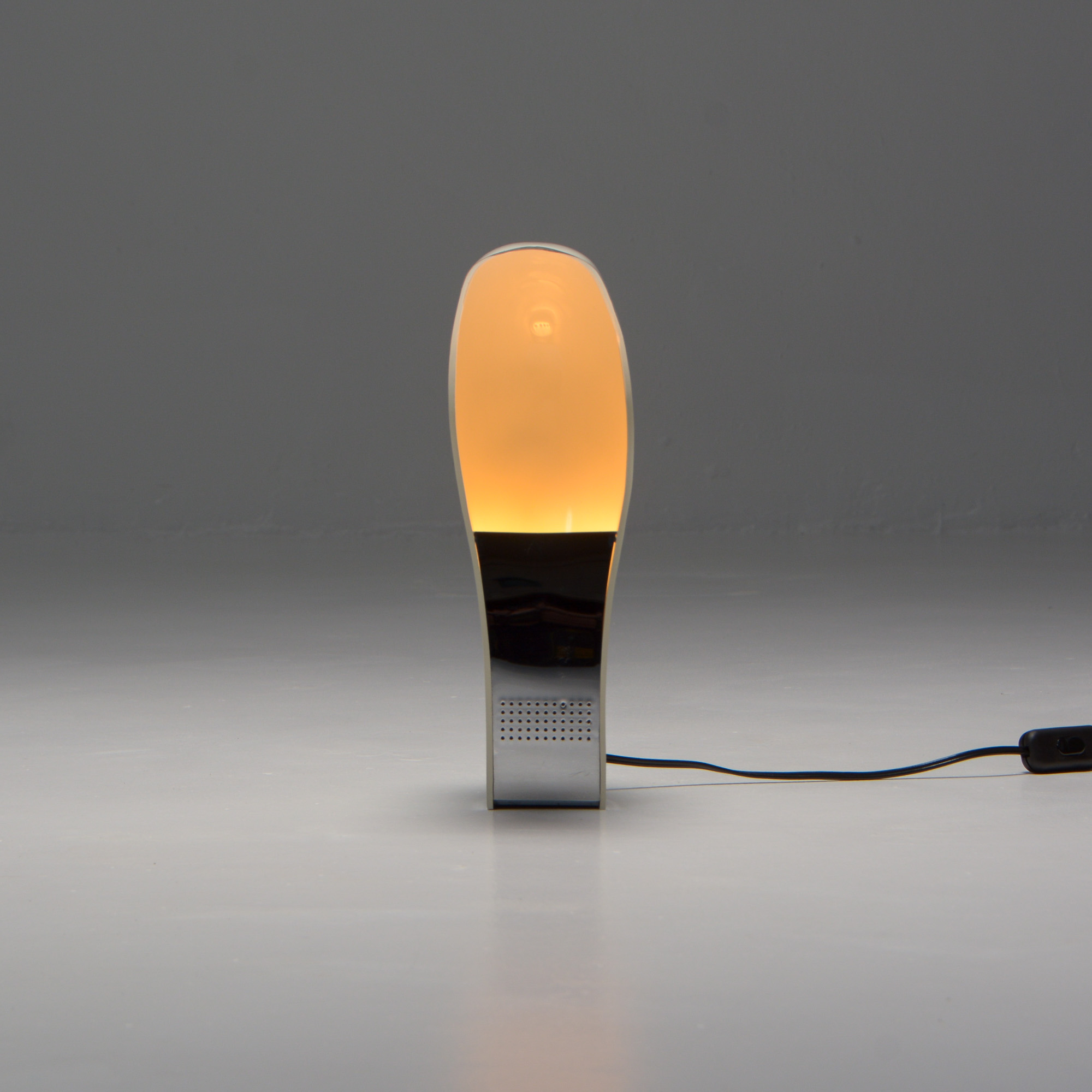 It is made of white ABS plastic. It is a special lamp with a futuristic sculptural shape. This table lamp is in good vintage condition and marked.