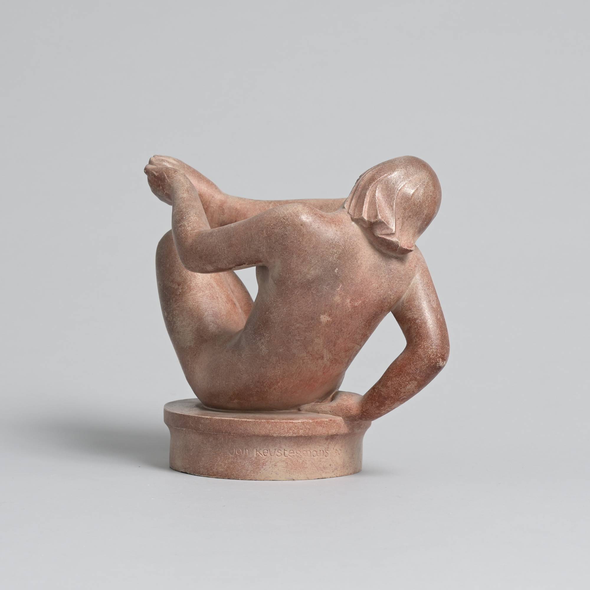 The sculpture has a roughly glazed finish. It is a unique piece and one of the artist’s most recent works. This piece is signed “Jan Keustermans ’90”.