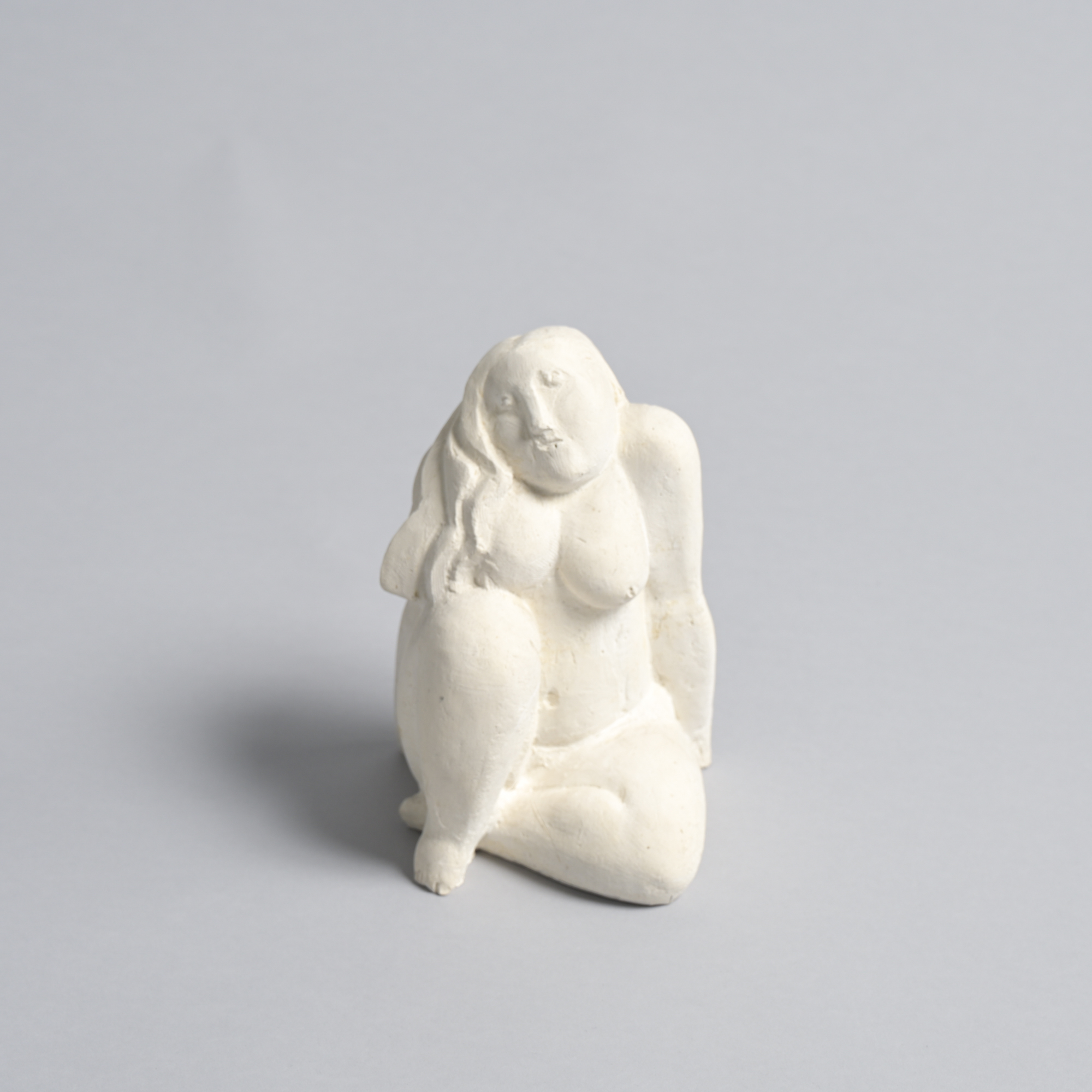 The statue has a rough plaster finish. It is a unique piece and one of the artist’s most recent works.