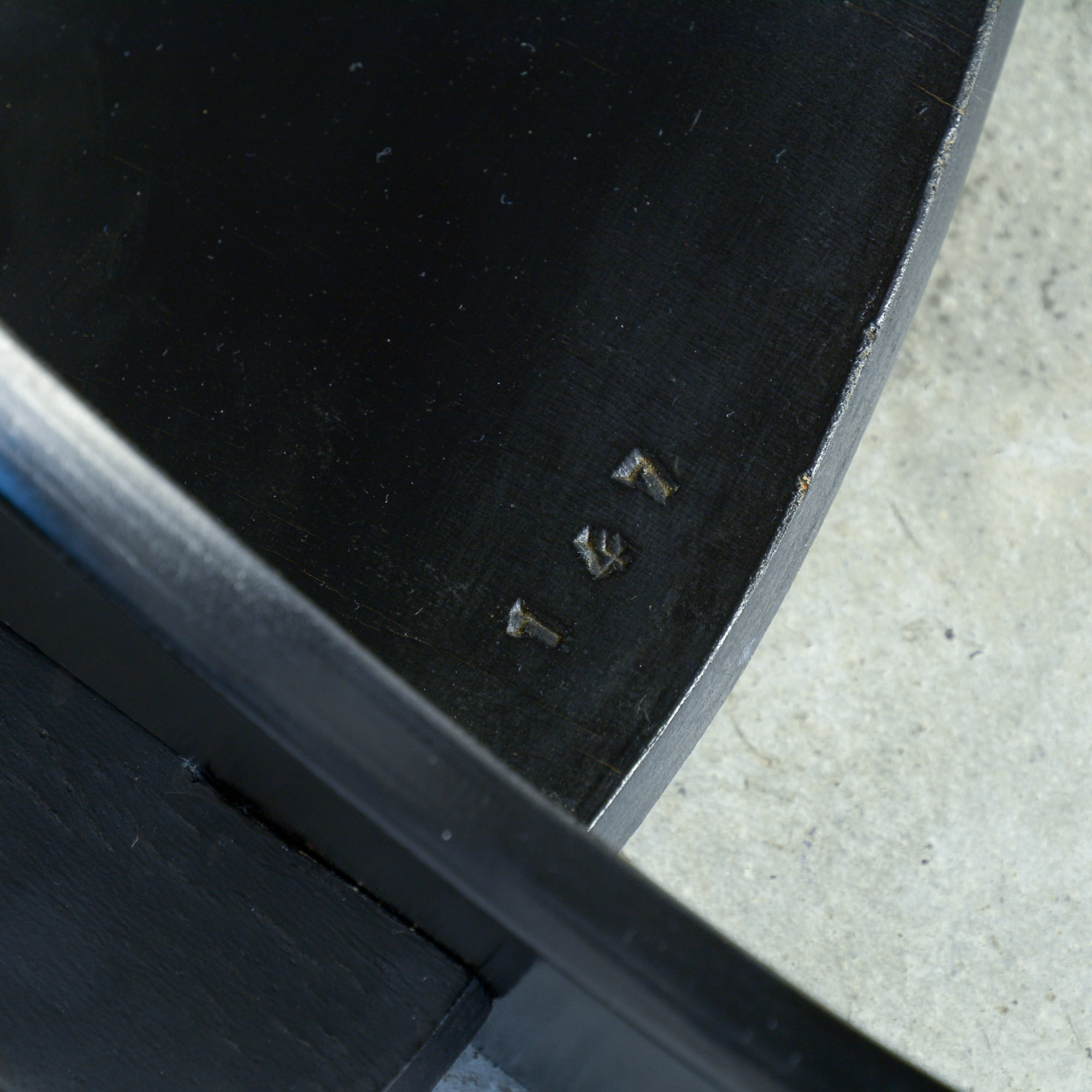 This sculptural chair is made of 3 moulded and black lacquered plywood parts, which fit perfectly together without screws or glue. This icon of 1960s design is numbered.