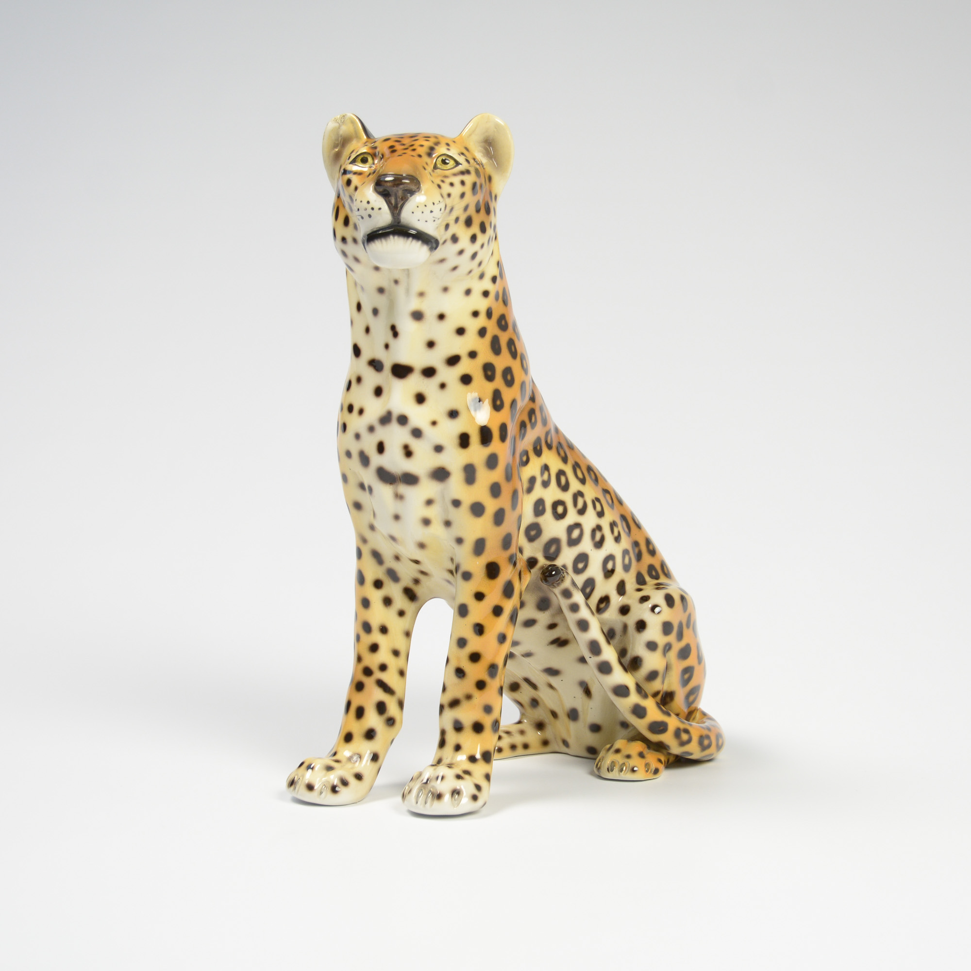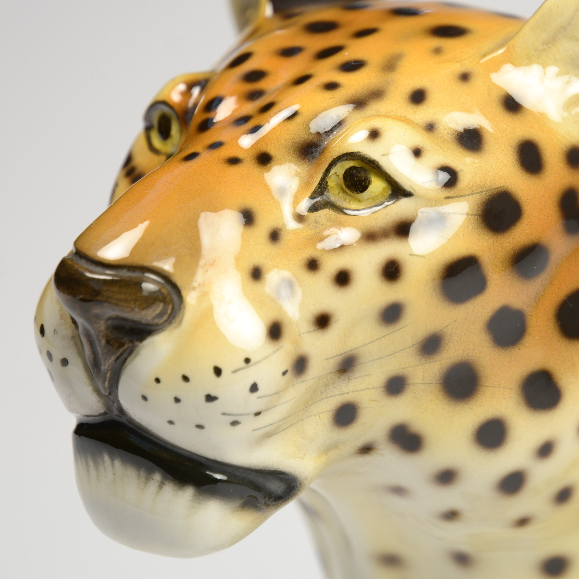 Porcelain Sculpture of a Leopard by Ronzan, Italy