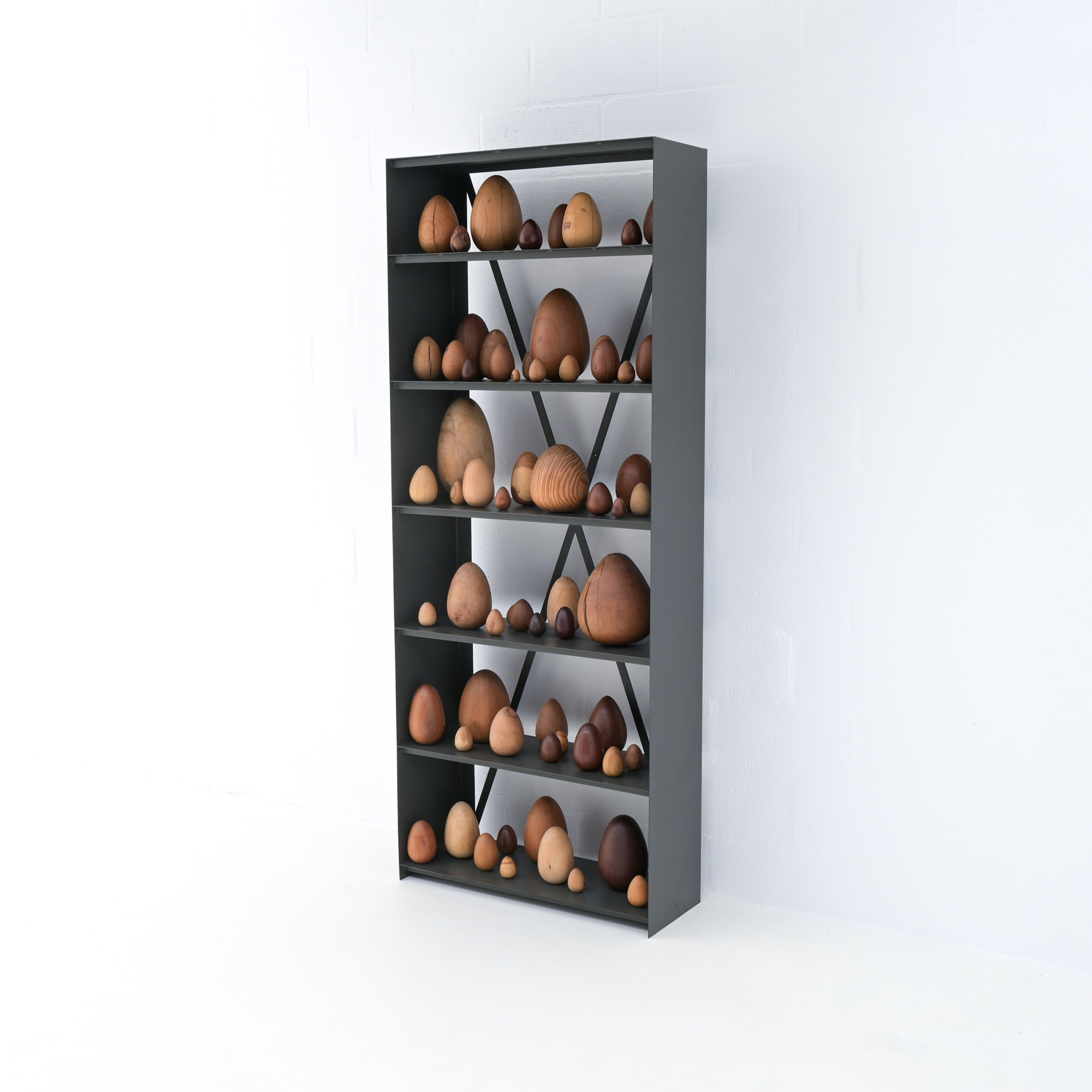 This bookcase was designed by Fabiaan Van Severen in 1987 and manufactured in his own workshop, it is a prototype and a one-off production.