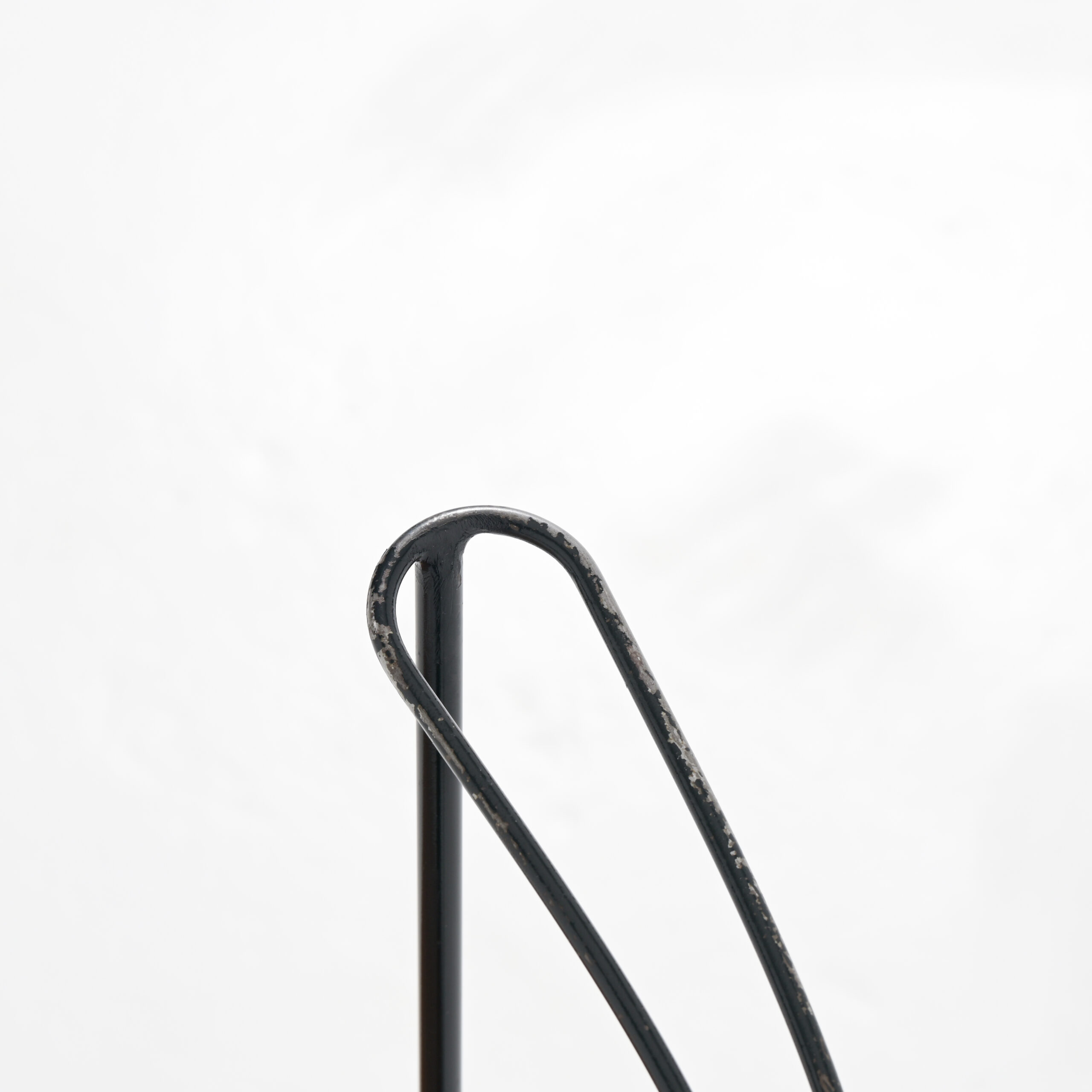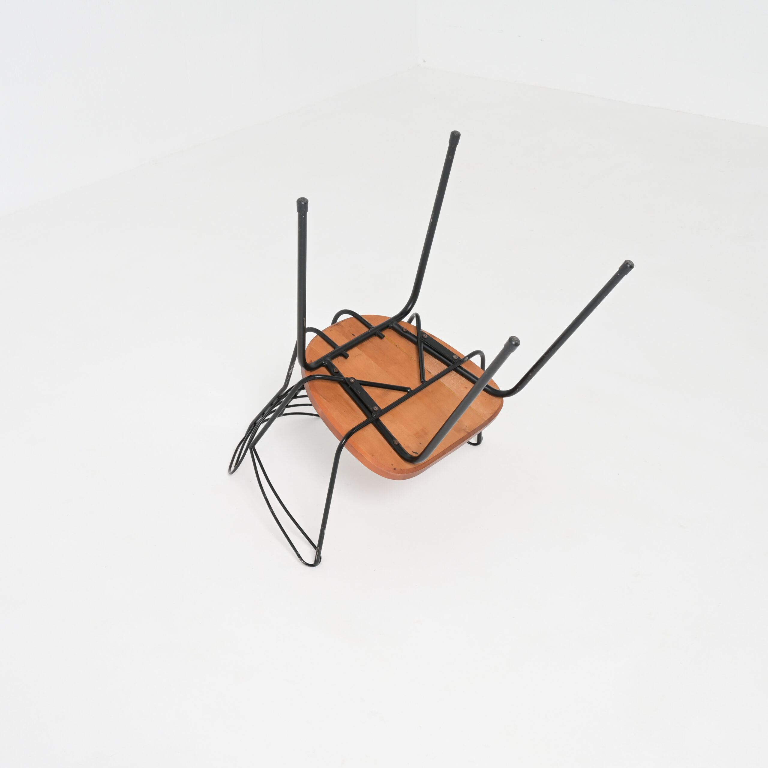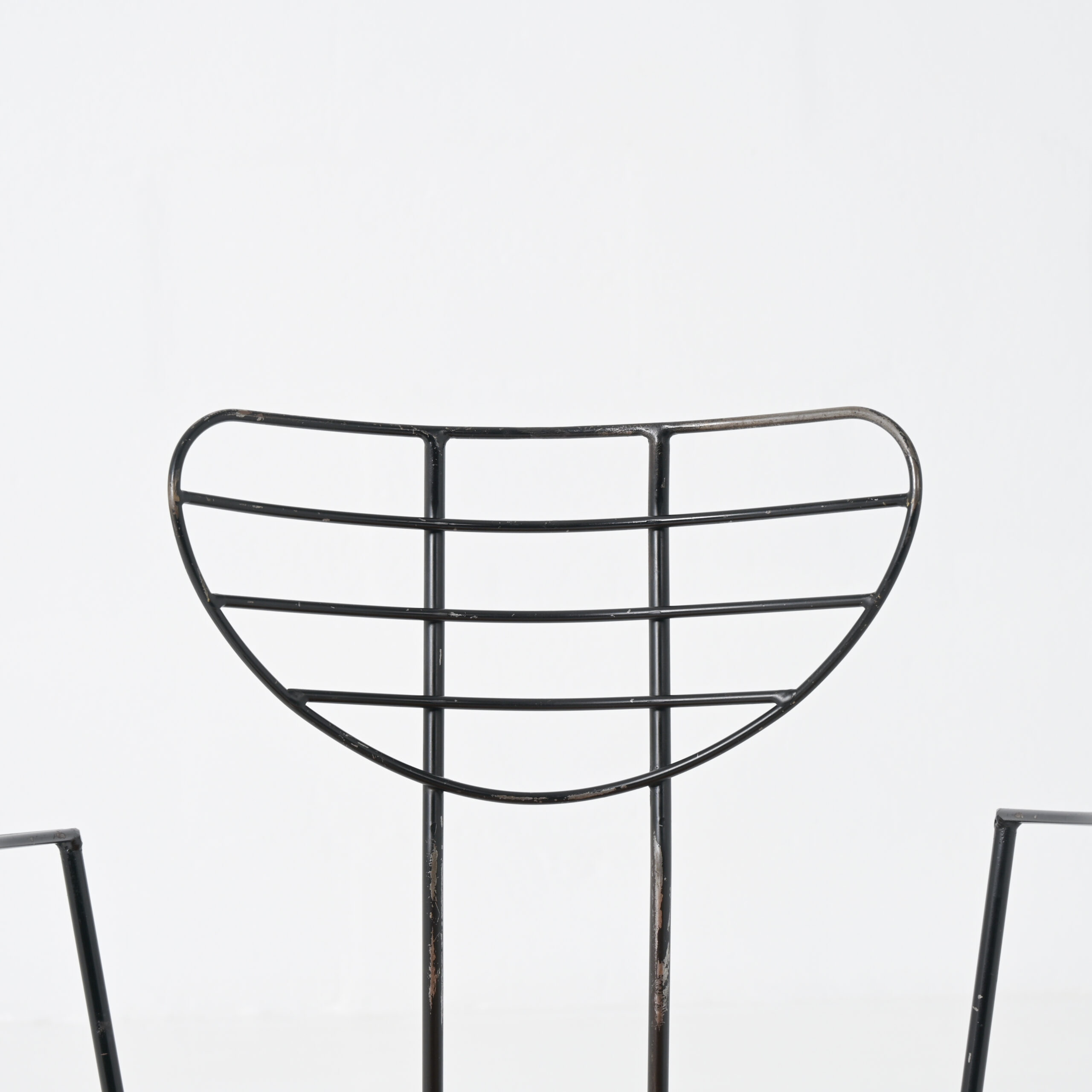 The Radar chair is often attributed to the Belgian designer Willy Van Der Meeren and dates from the 1950s. This mid-century modern chair is made of black painted metal and wood.