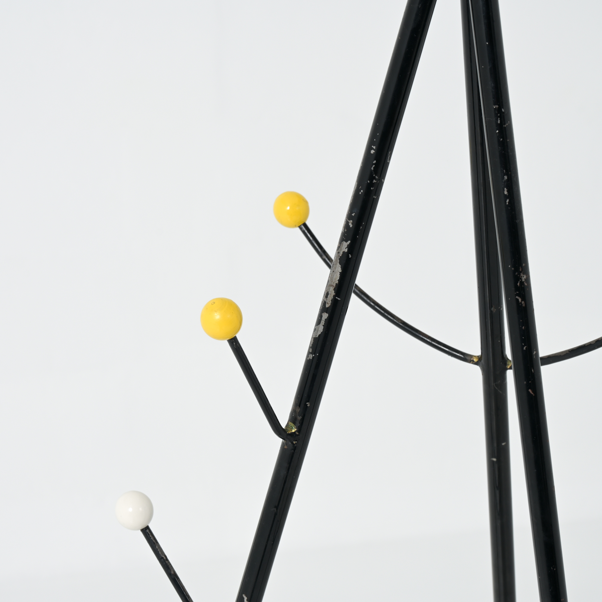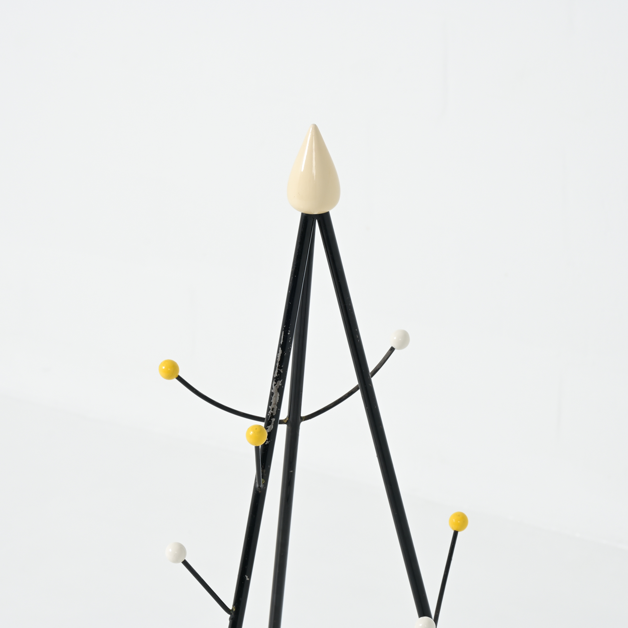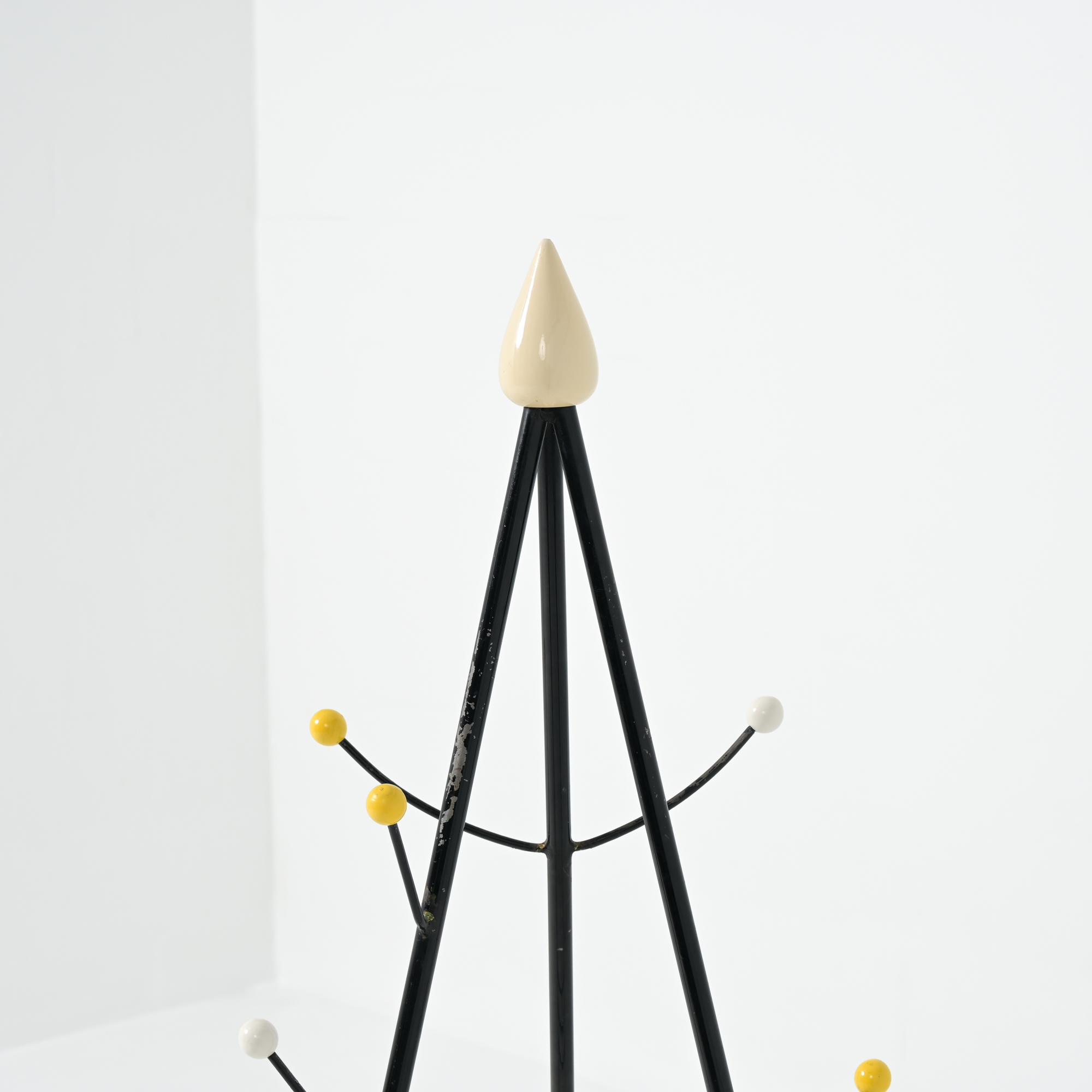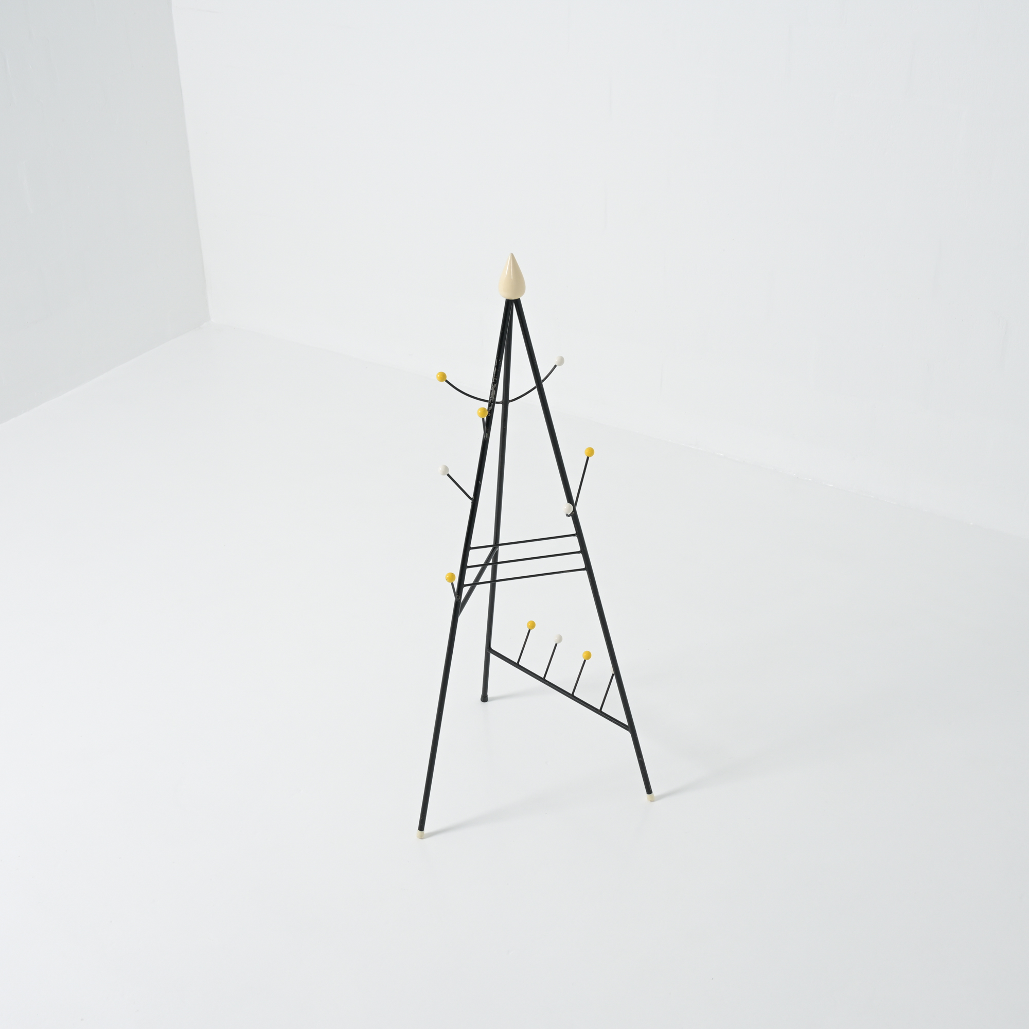 This funny tripod coat stand is for sure a design of the 1950s, probably of French or Belgian manufacture.