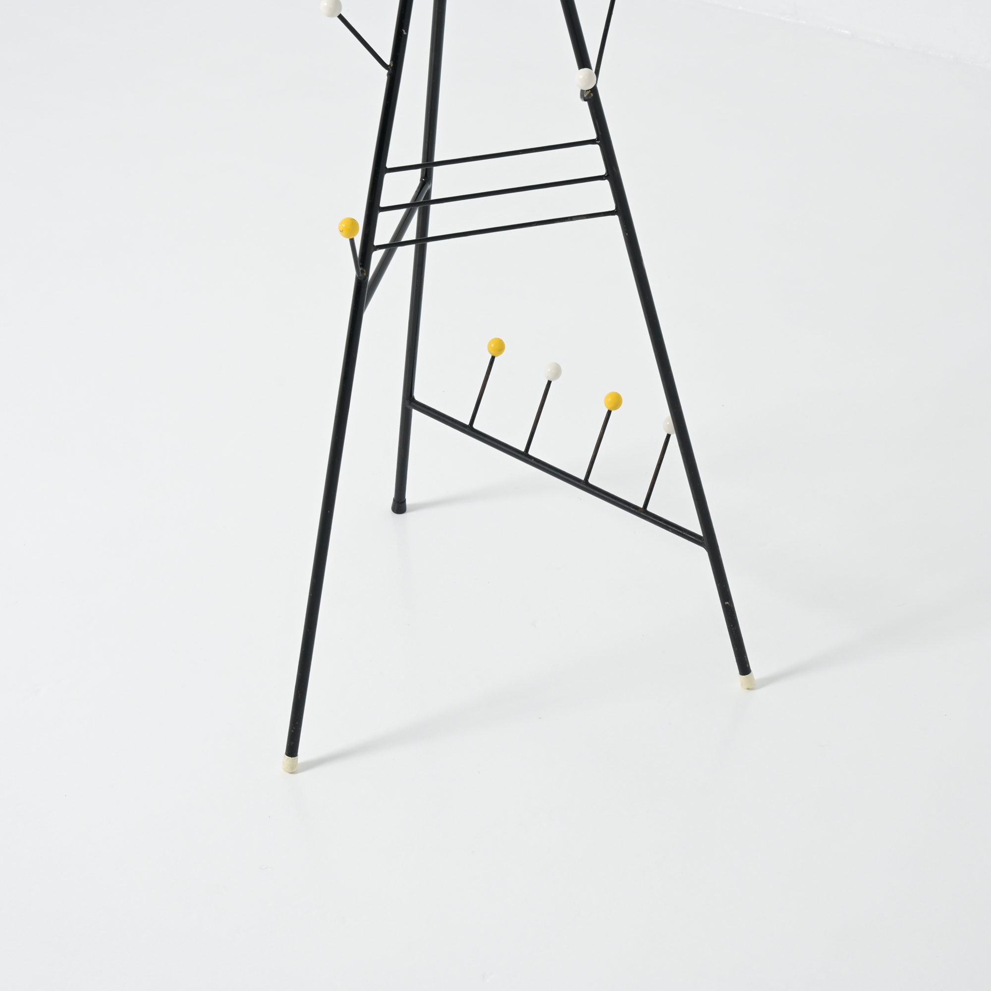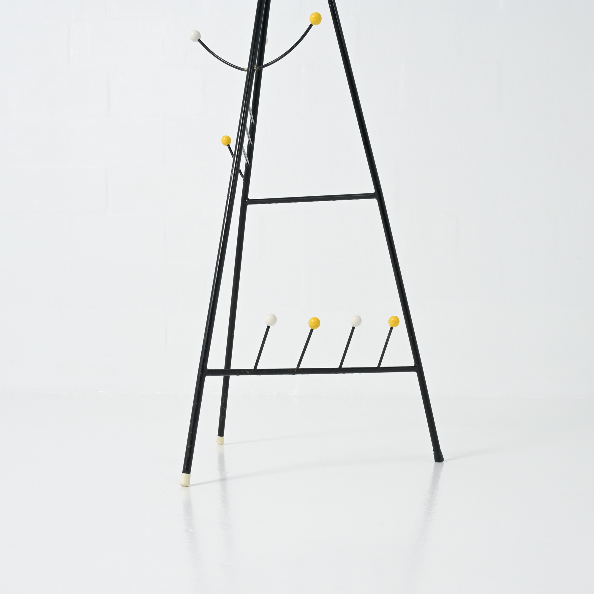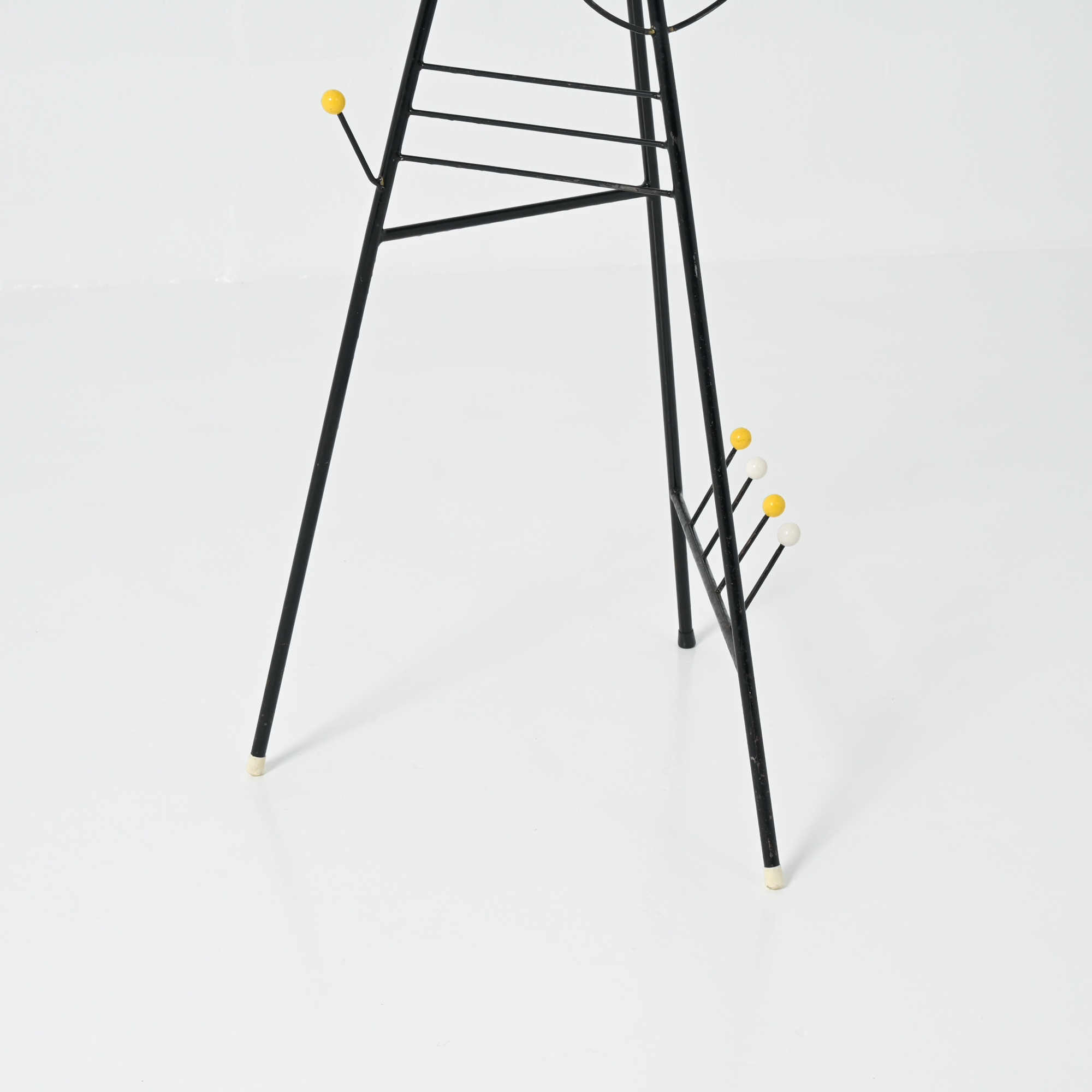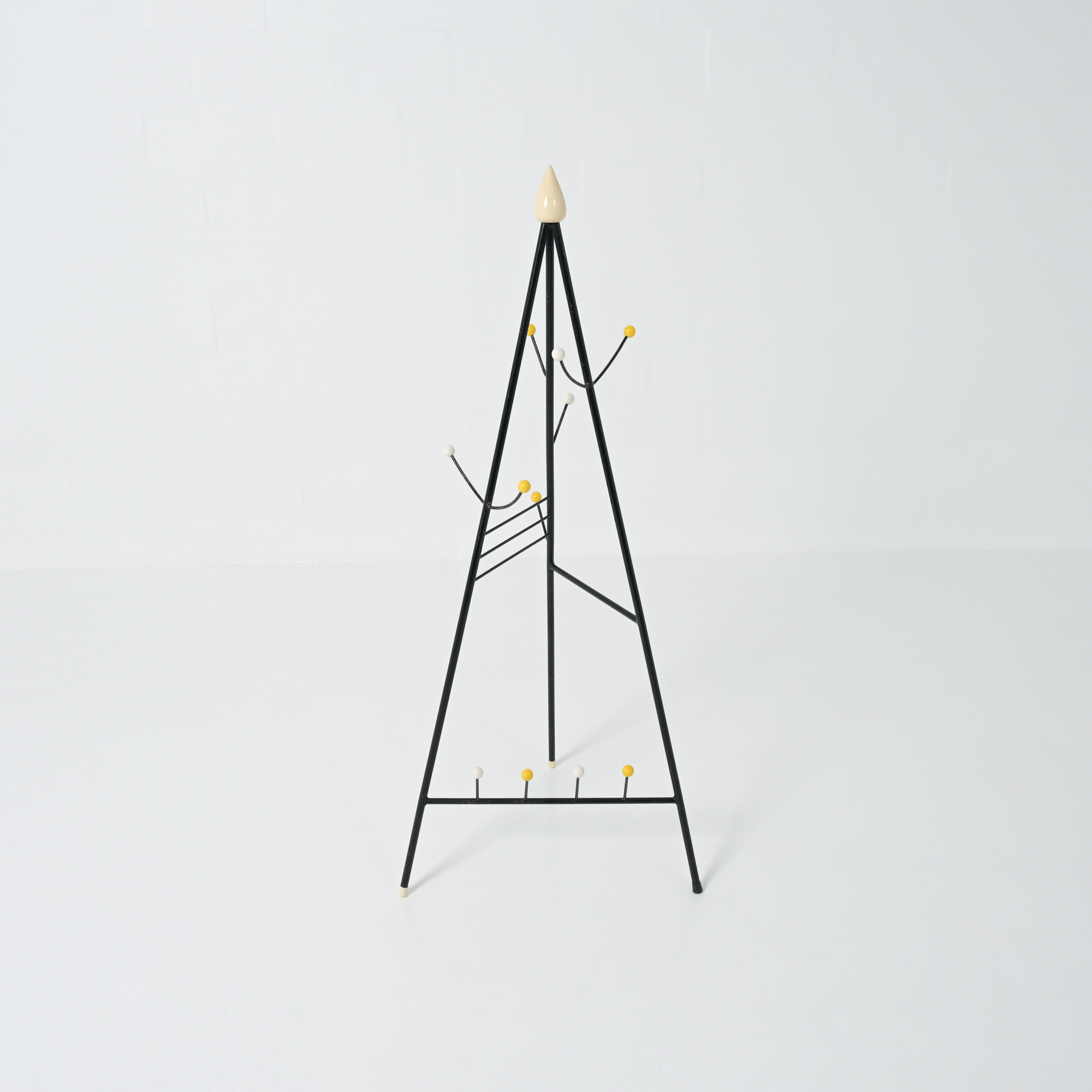 This funny tripod coat stand is for sure a design of the 1950s, probably of French or Belgian manufacture.