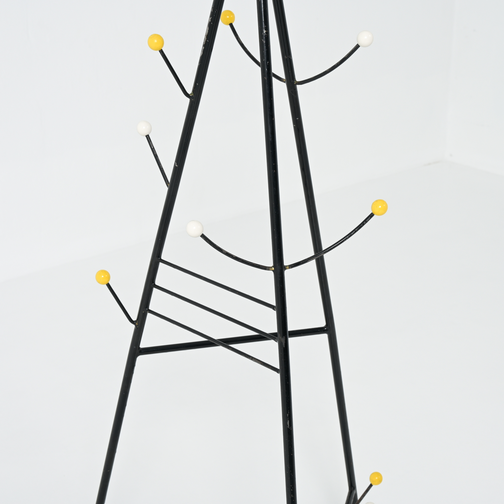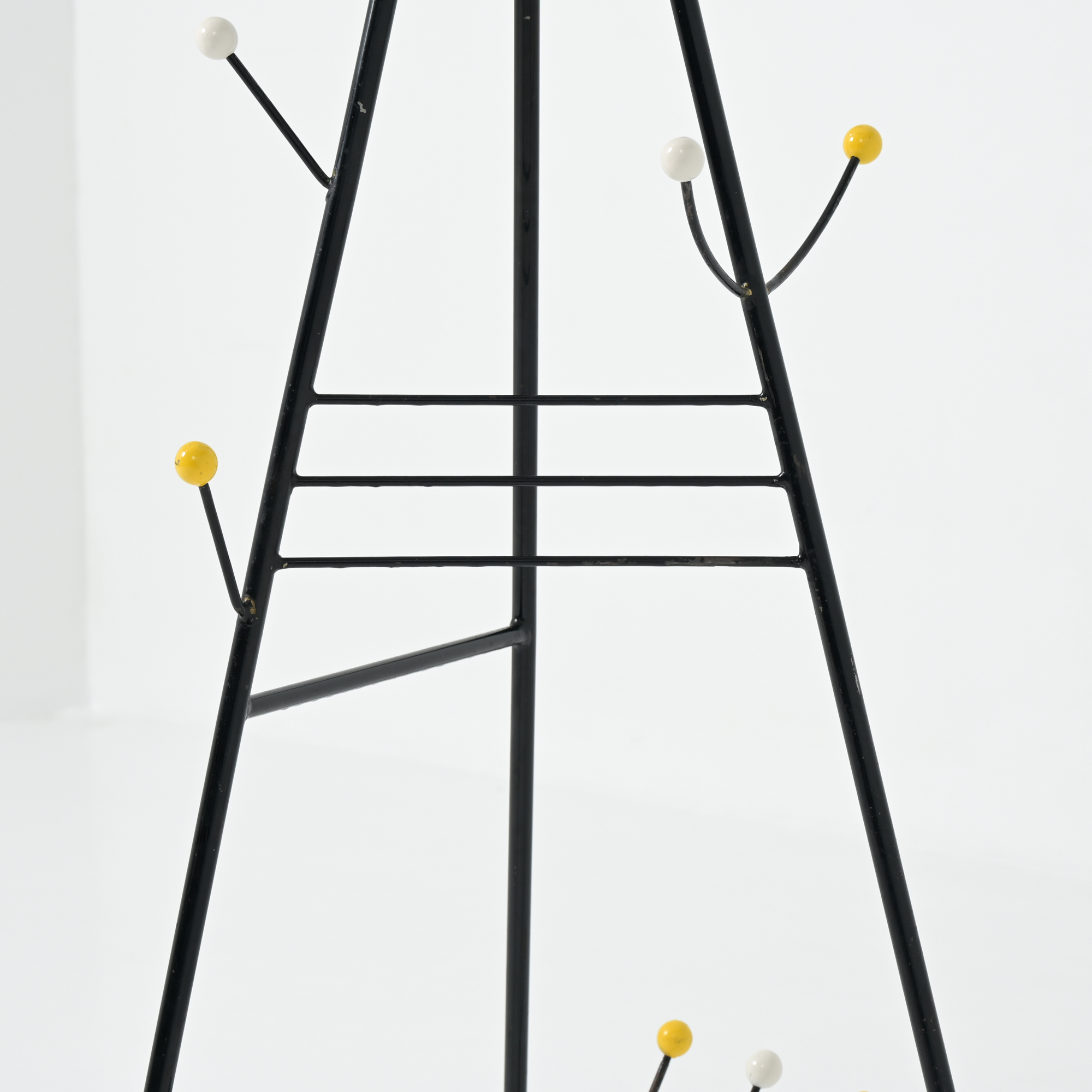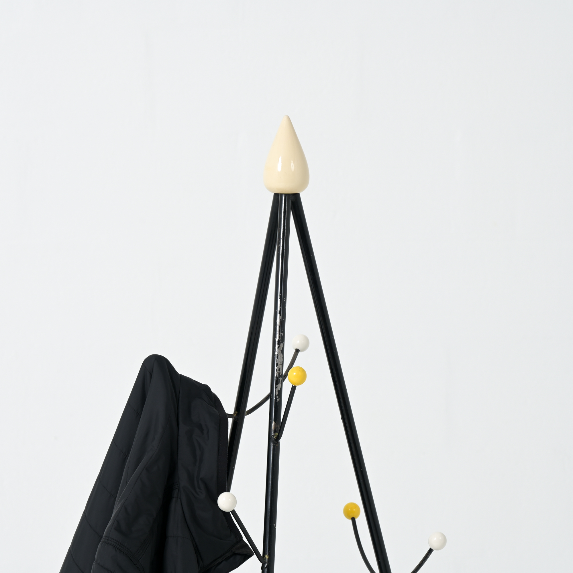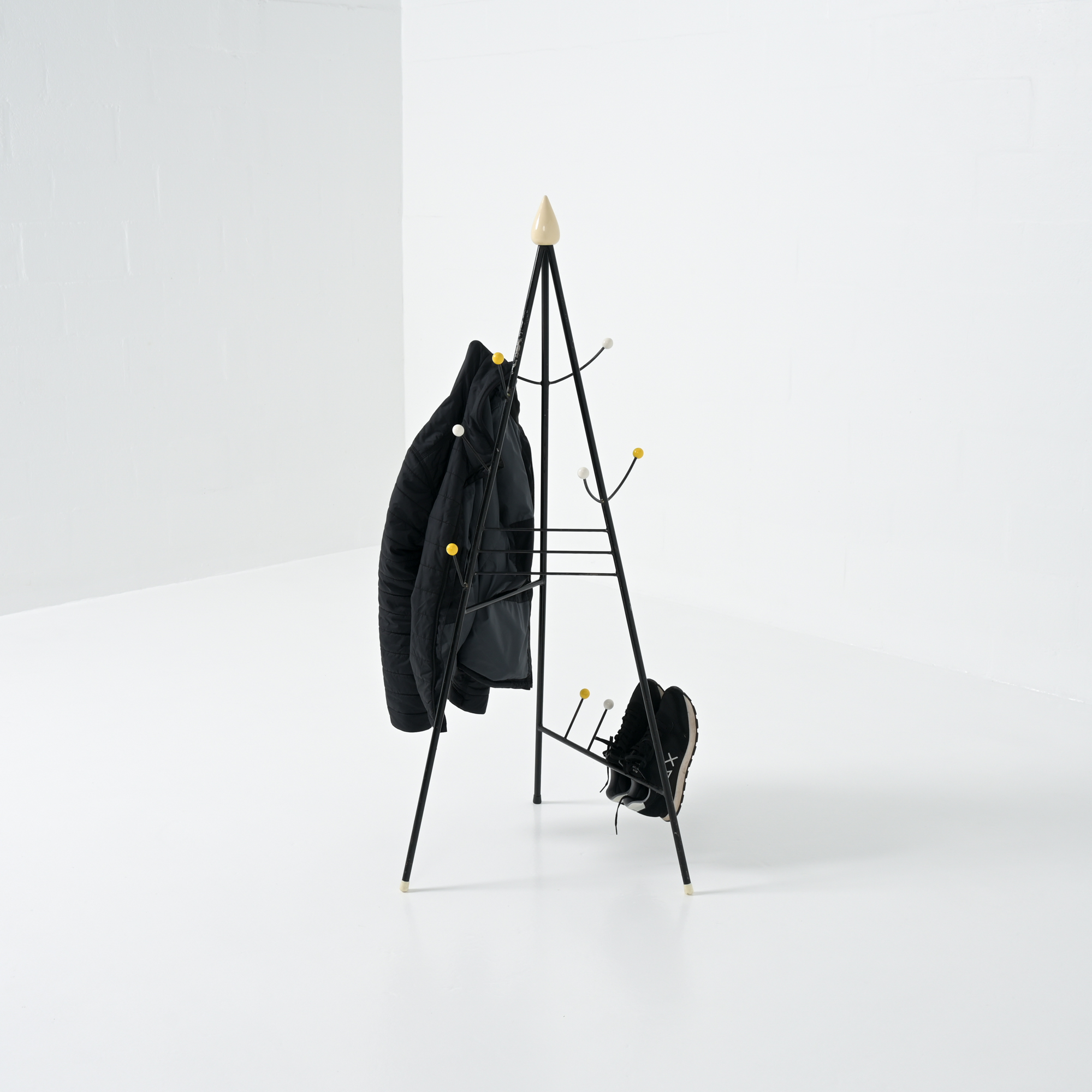 This funny tripod coat stand is for sure a design of the 1950s, probably of French or Belgian manufacture.