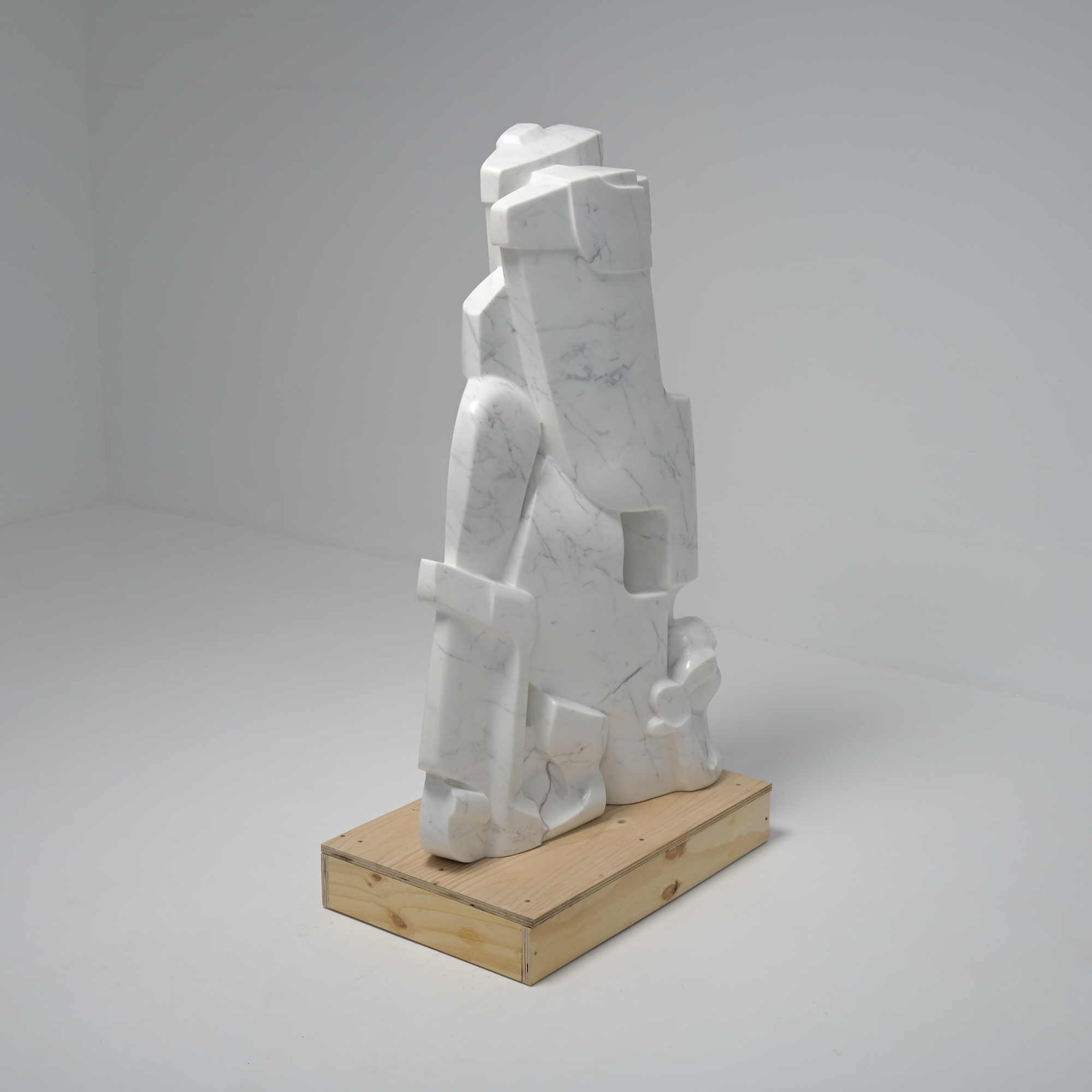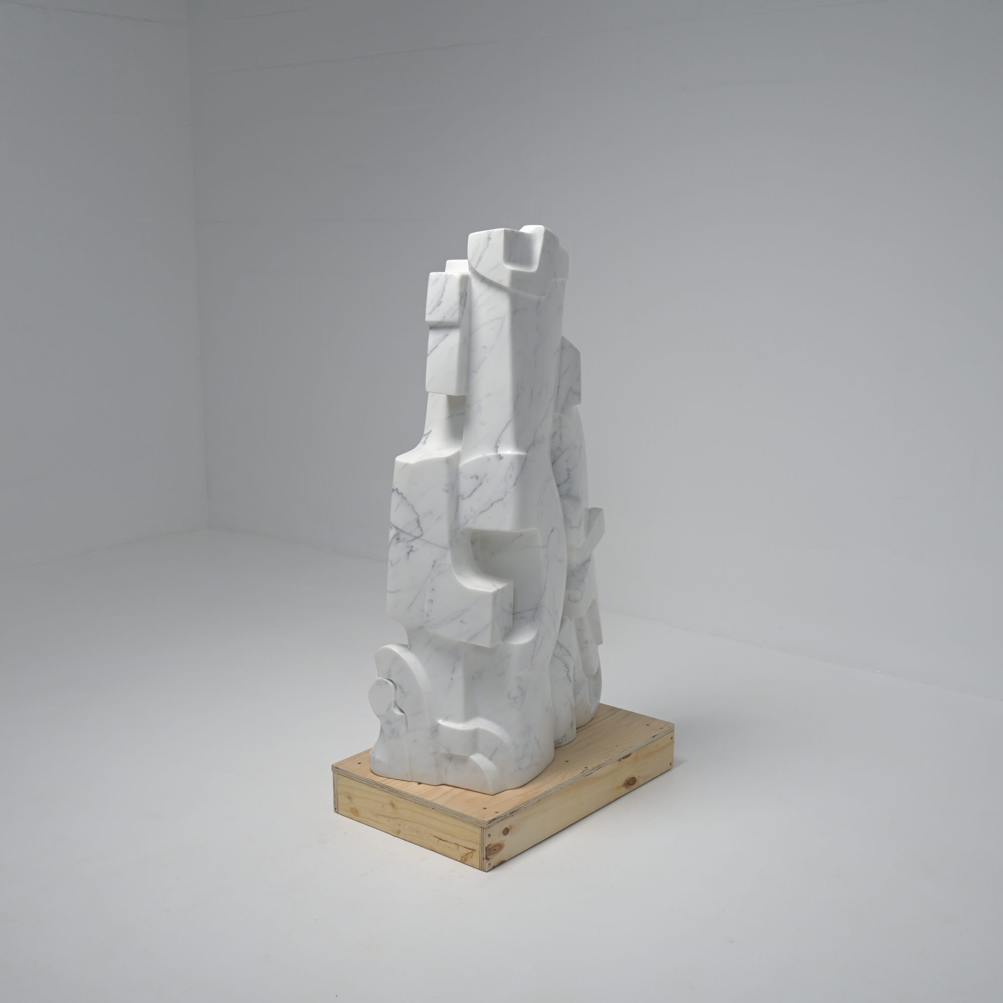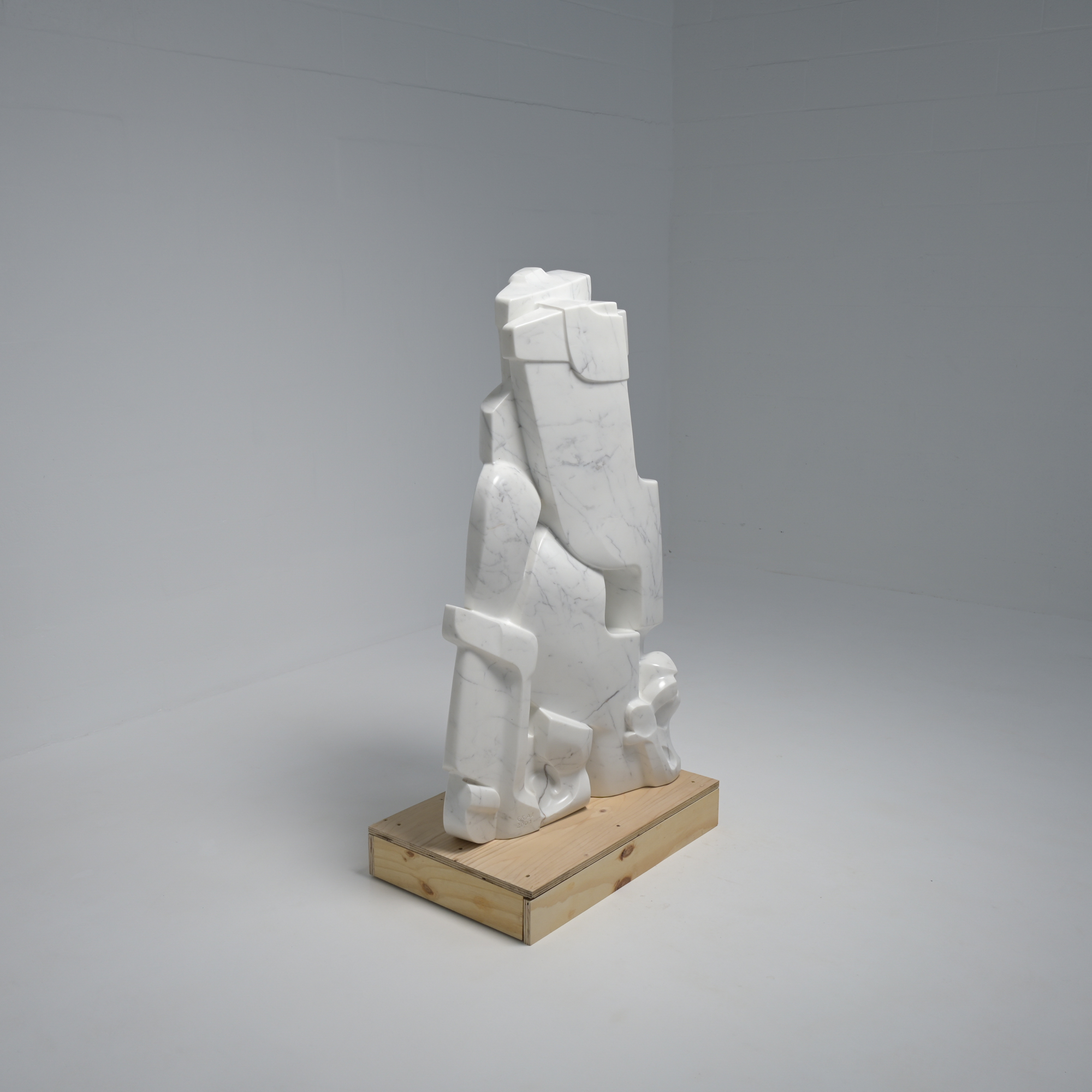 This abstract sculpture in Carrara marble was sculpted ‘en taille directe’ by the Belgian artist Jan Keustermans.