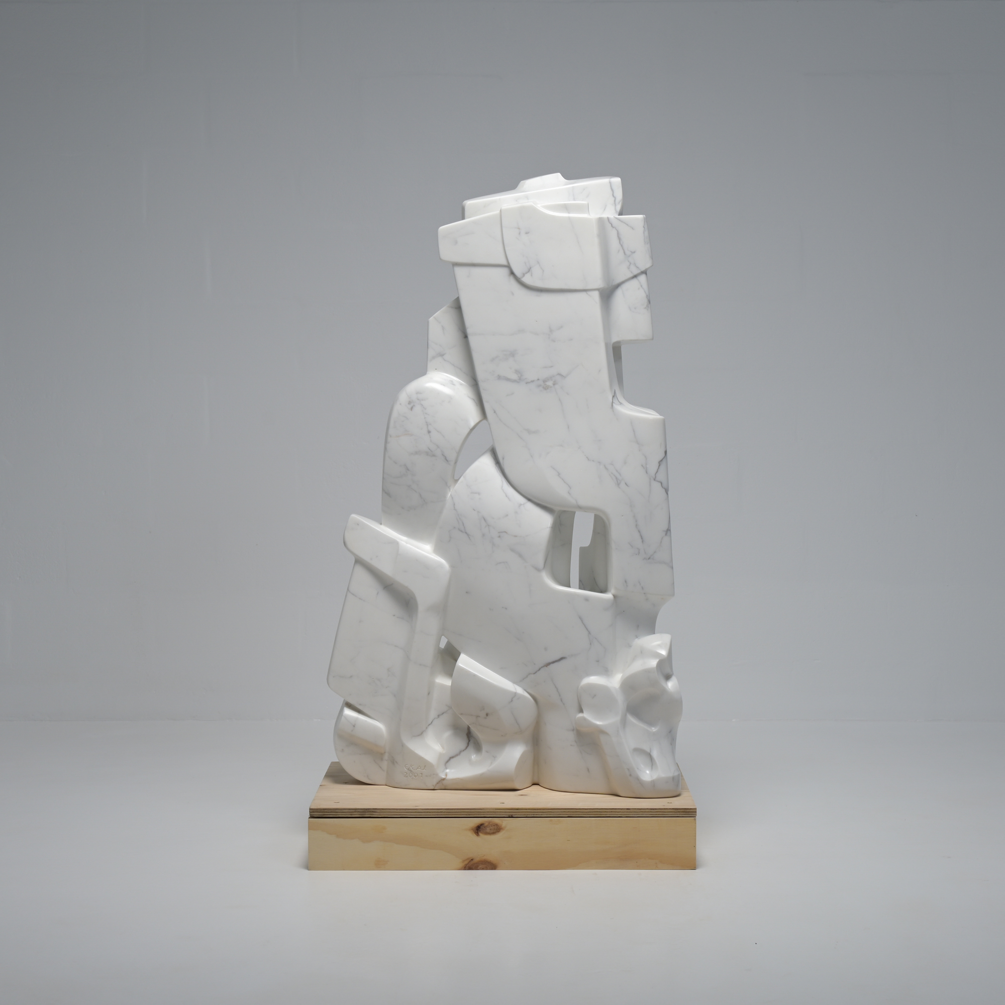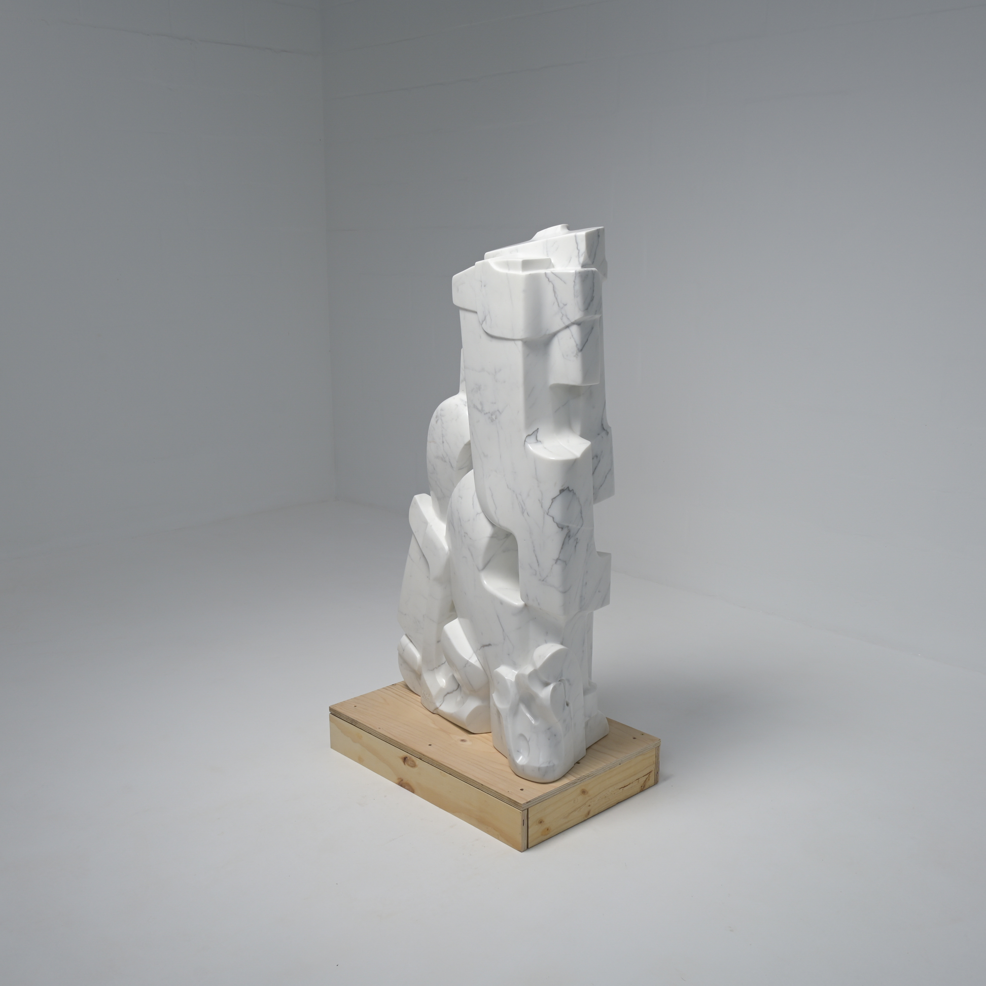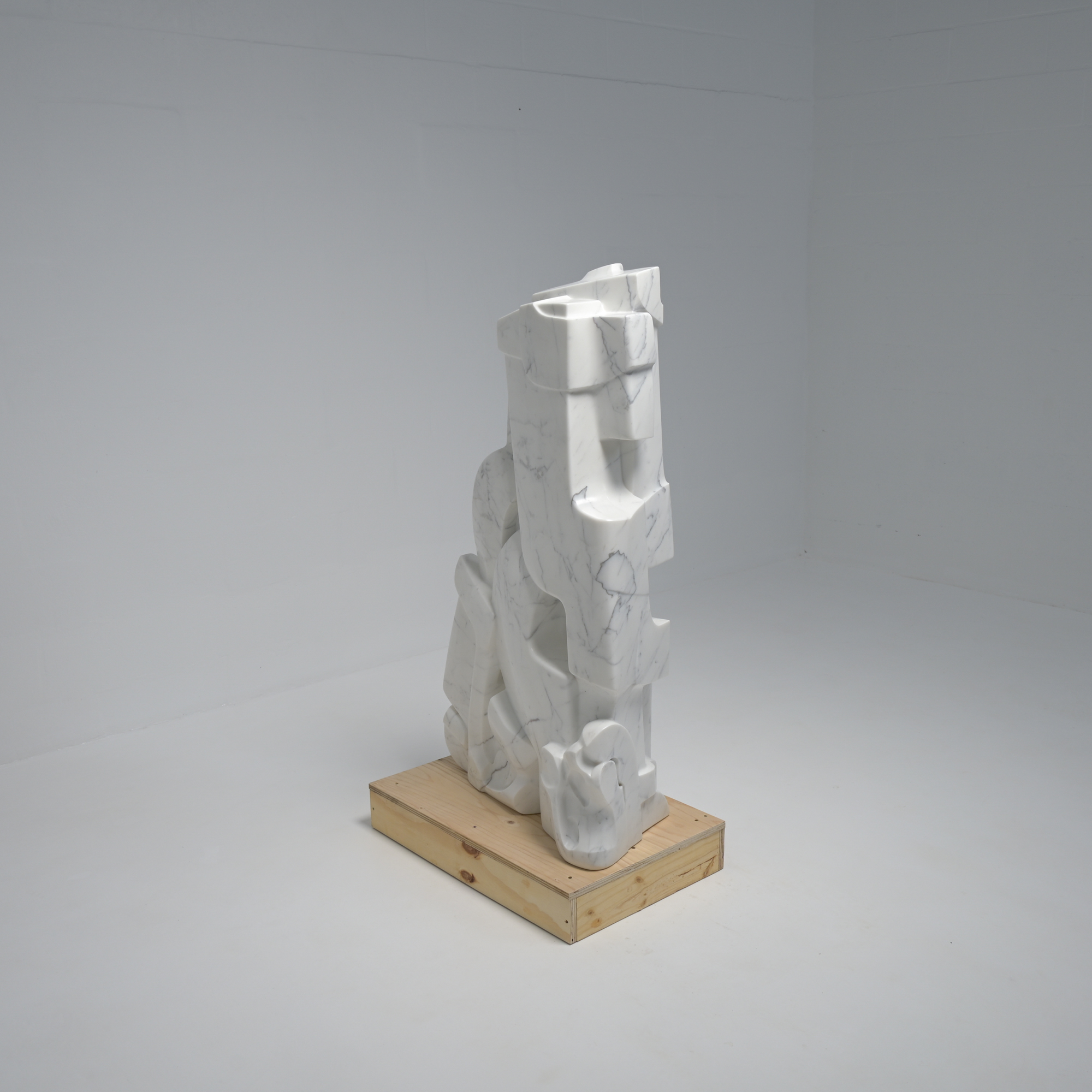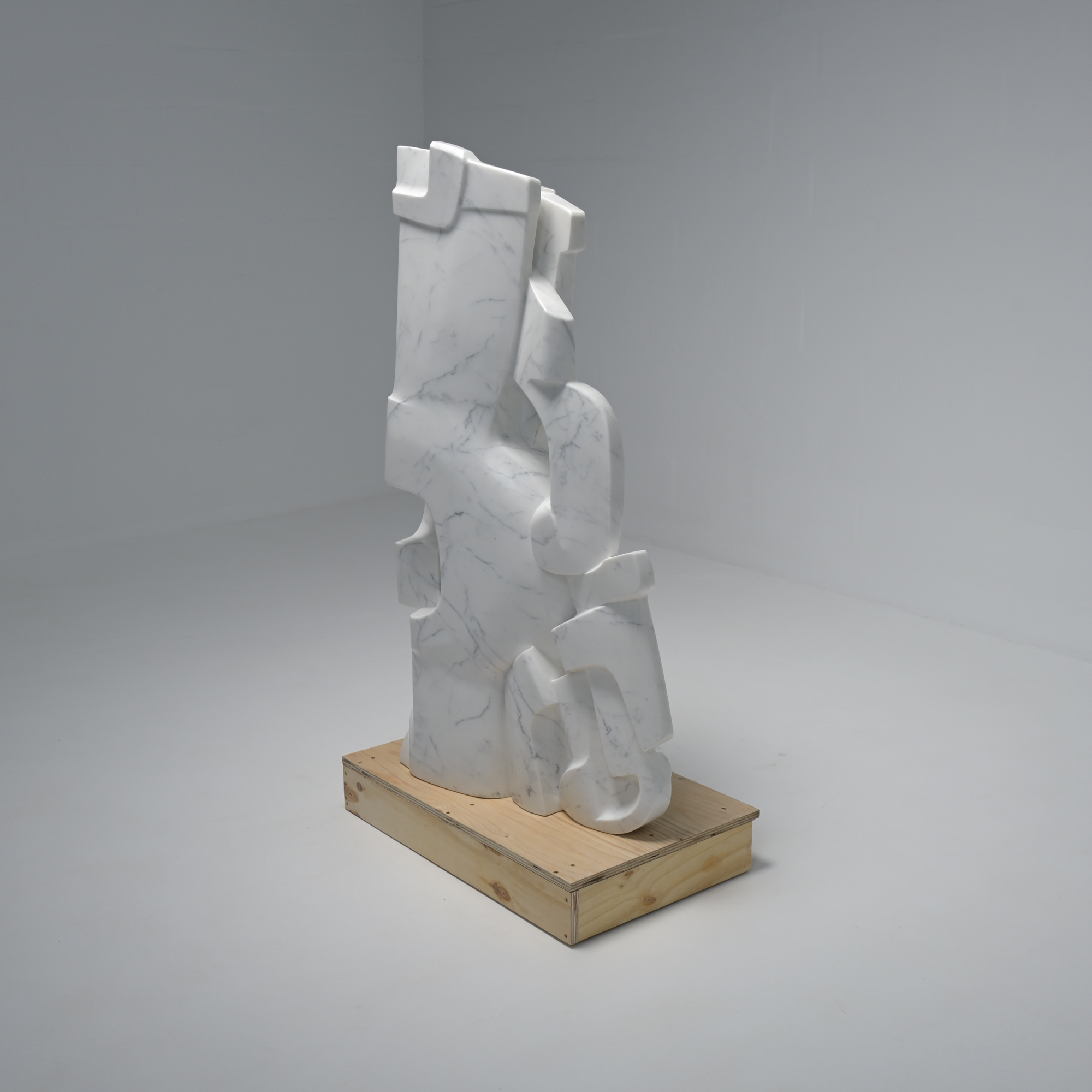 This abstract sculpture in Carrara marble was sculpted ‘en taille directe’ by the Belgian artist Jan Keustermans.