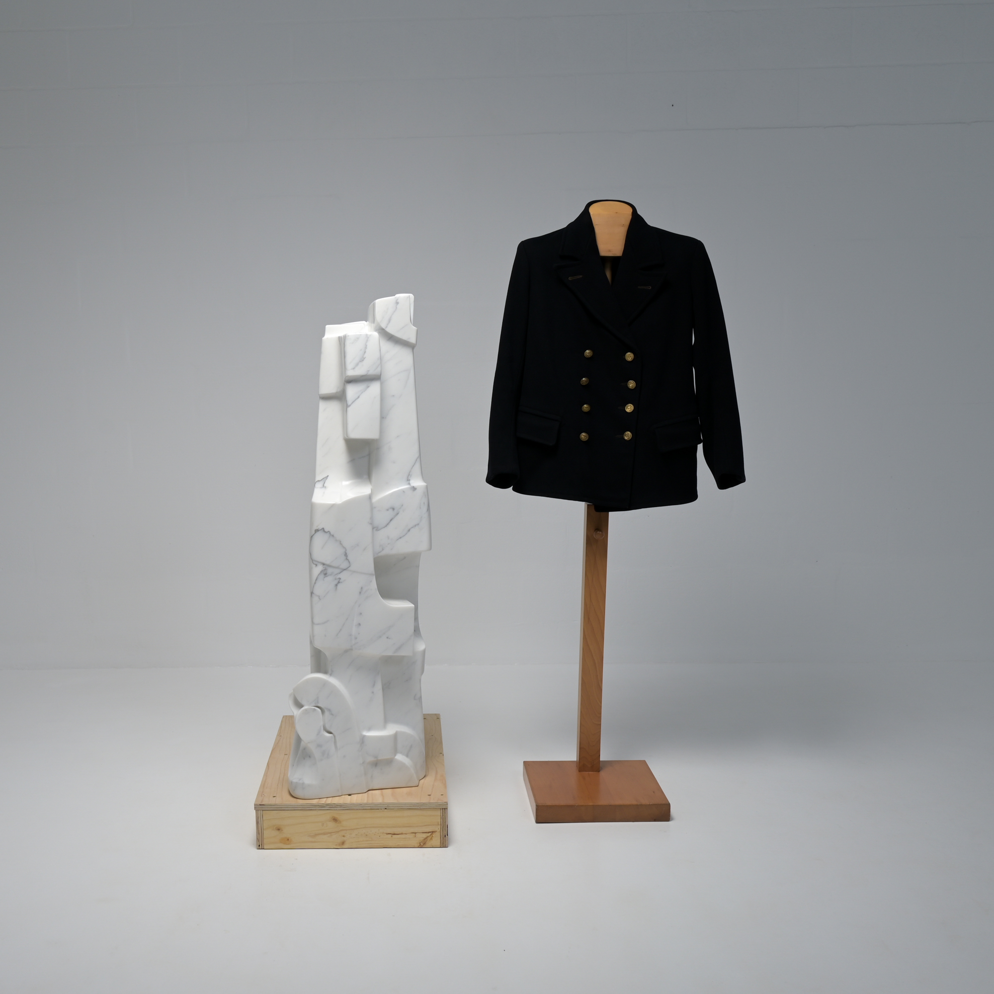 He works in bluestone, bronze, plaster, clay, marble, polyester and stone.