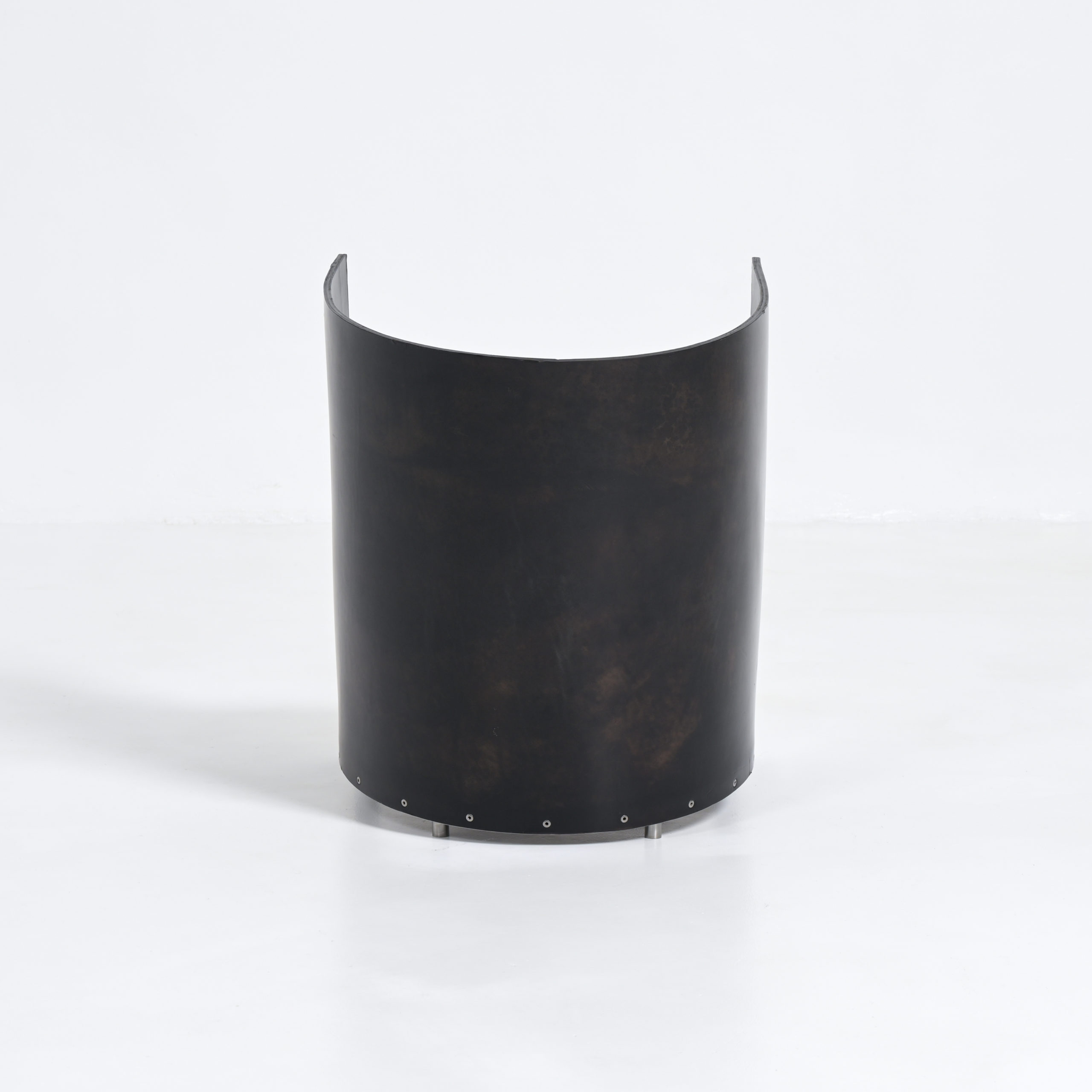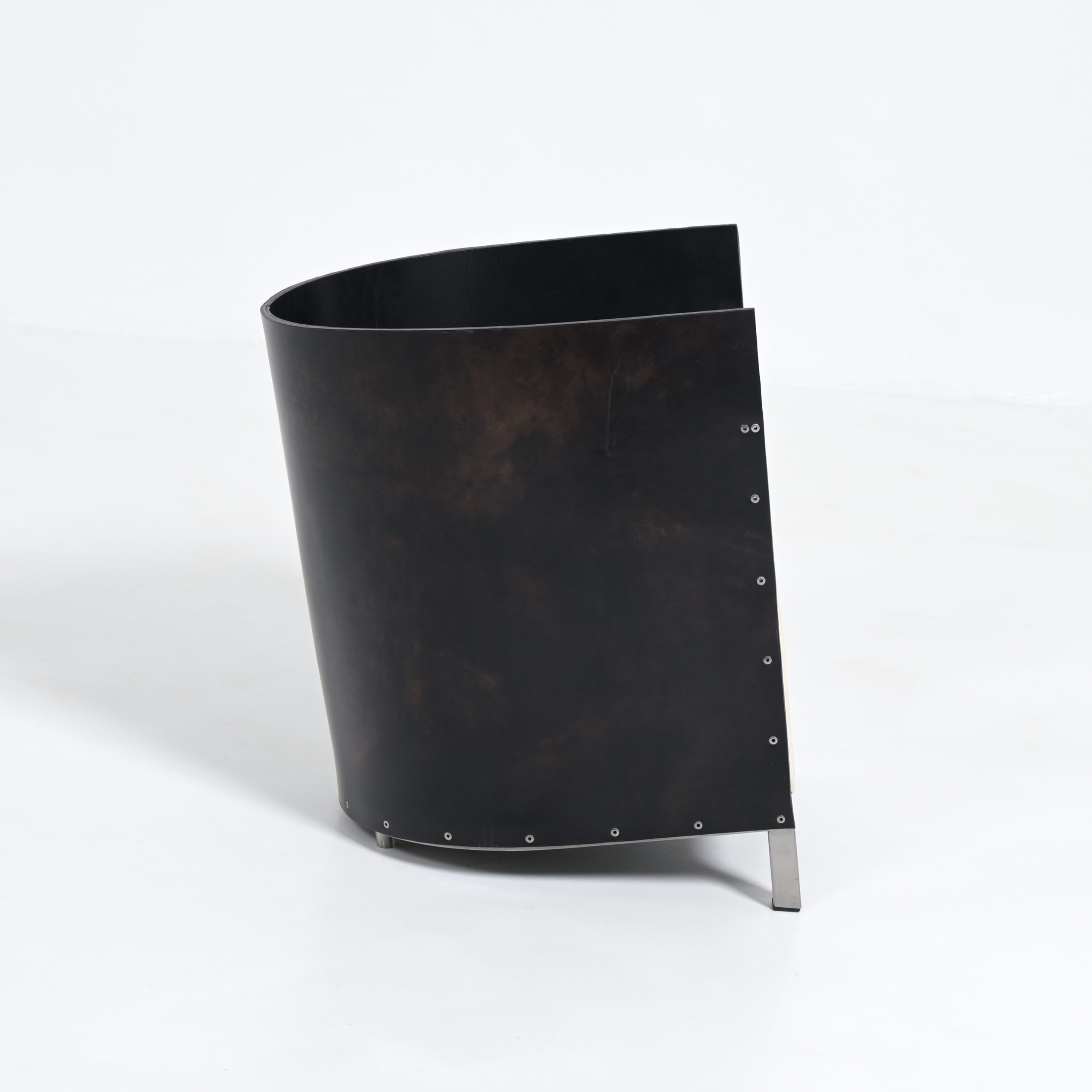 Initial Van Severen designed and produced this chair for his own use, because he could never find furniture to his liking. F88 is a very low easy chair, so low that you can place your glass of wine on the floor next to you. It also accentuates a woman’s legs. The curved leather back rest provides warmth and a sense of enclosure.